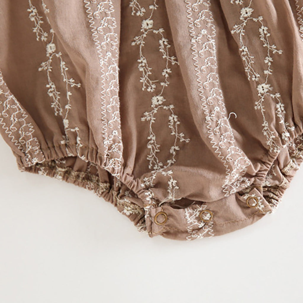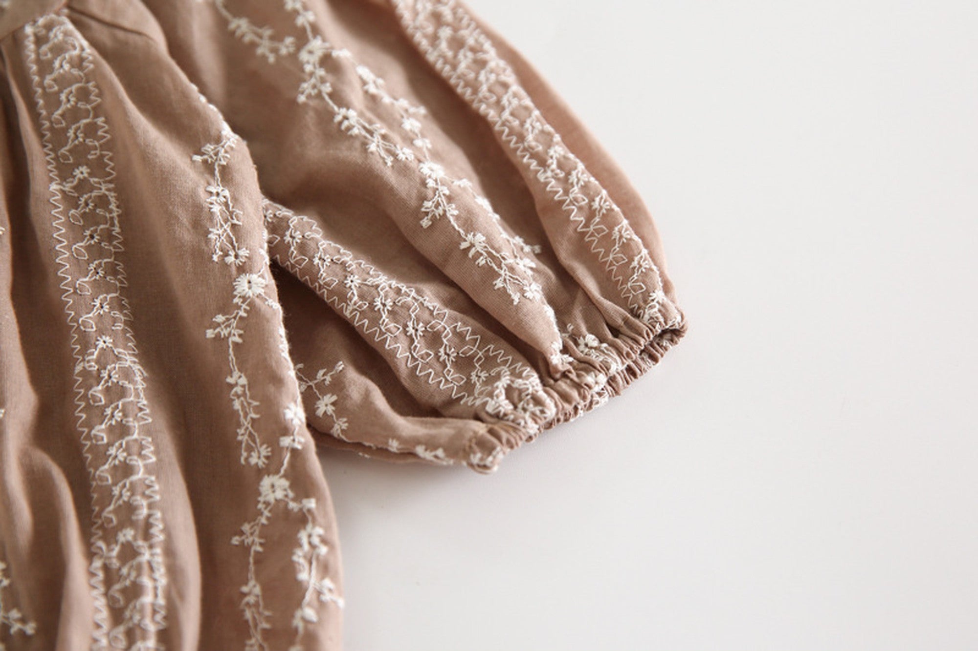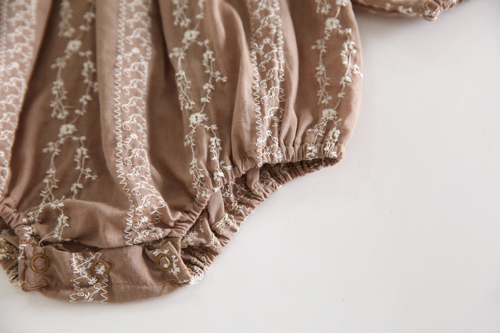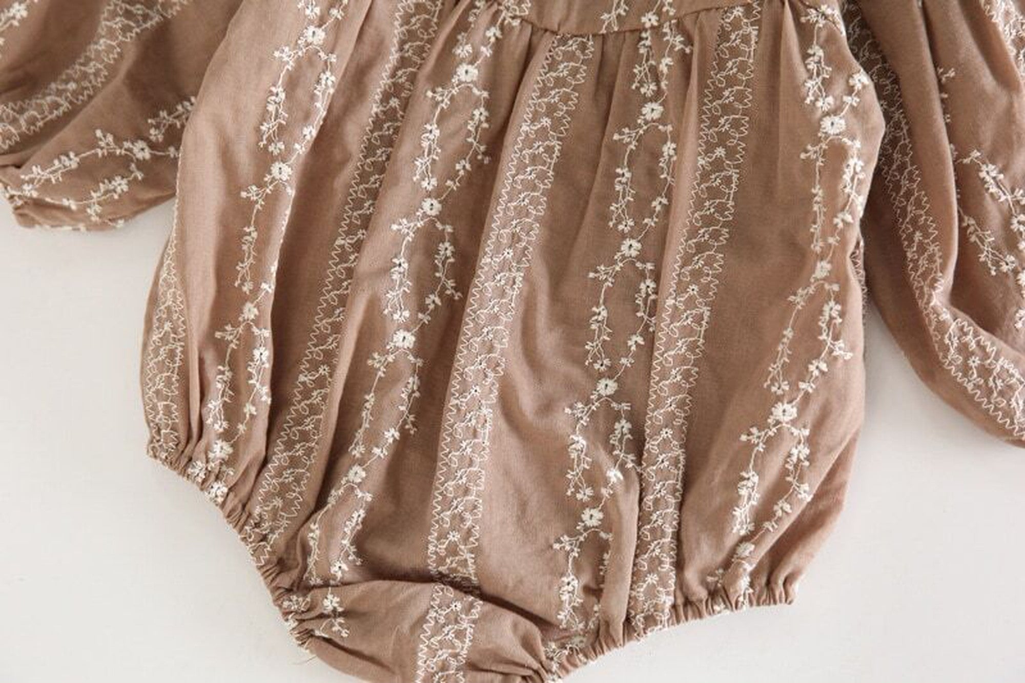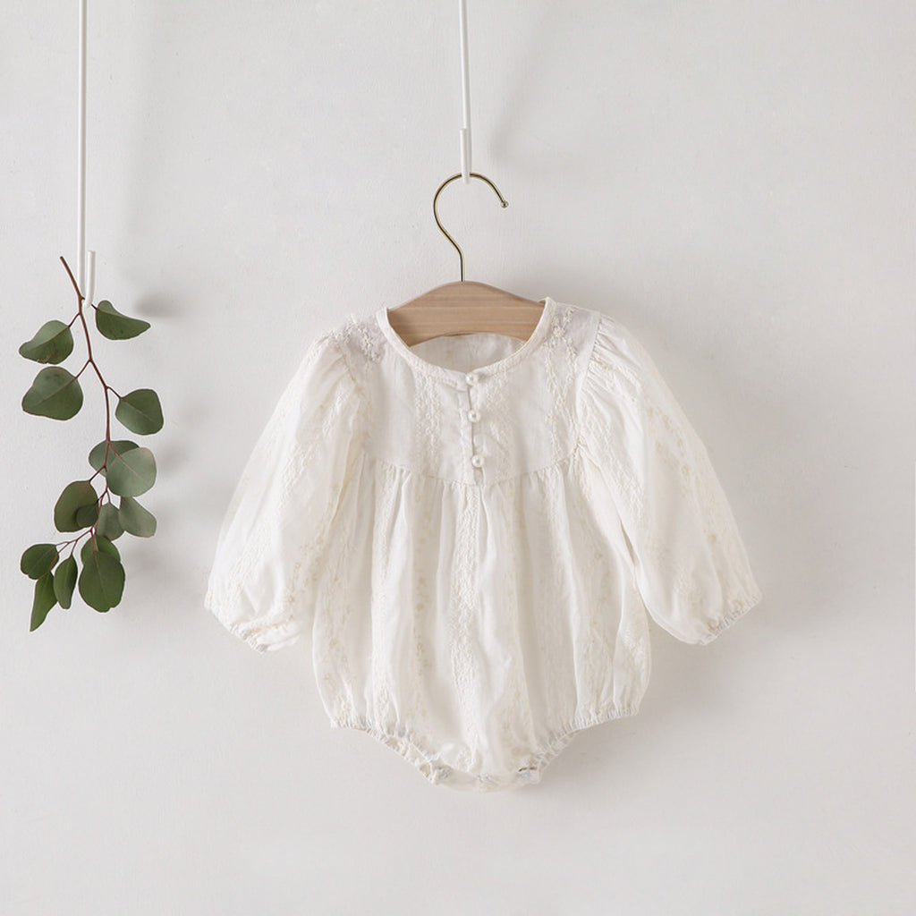 ベビー 刺繍 フラワー パール レース 長袖ロンパース【mh0000207】
