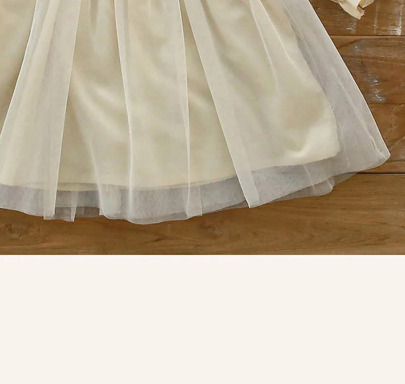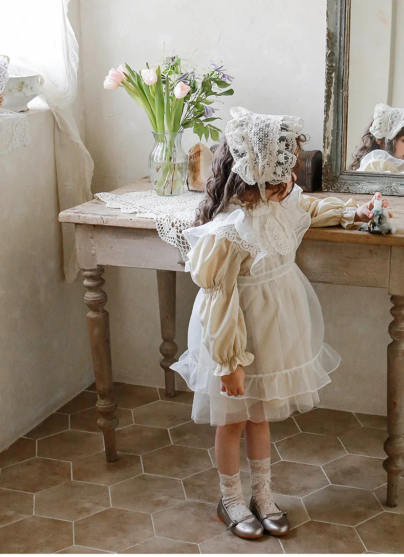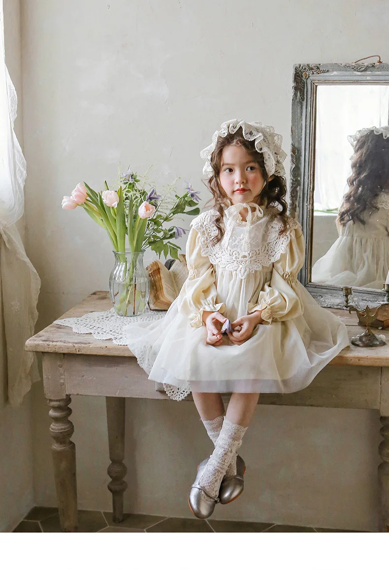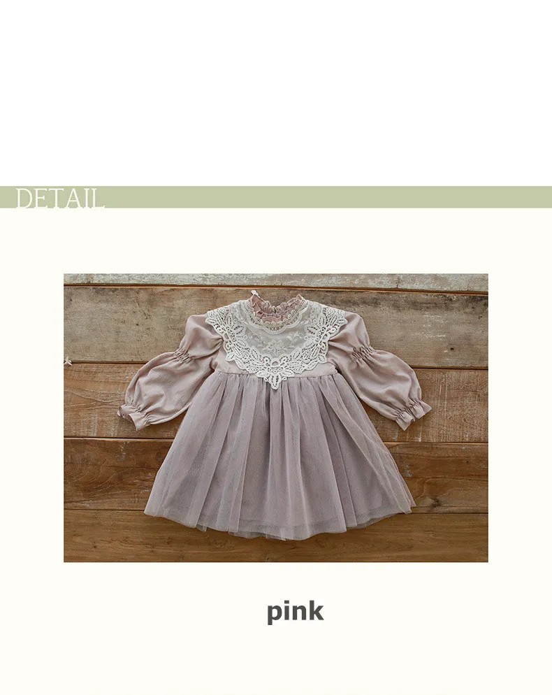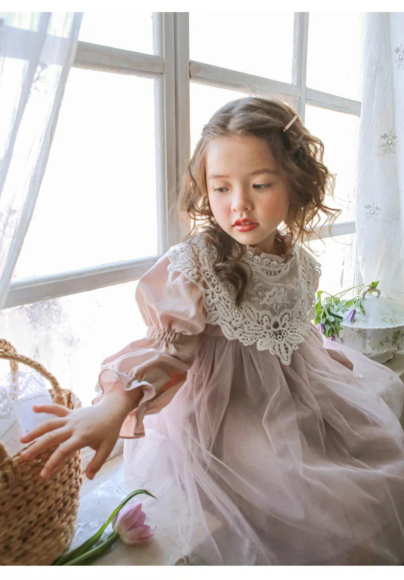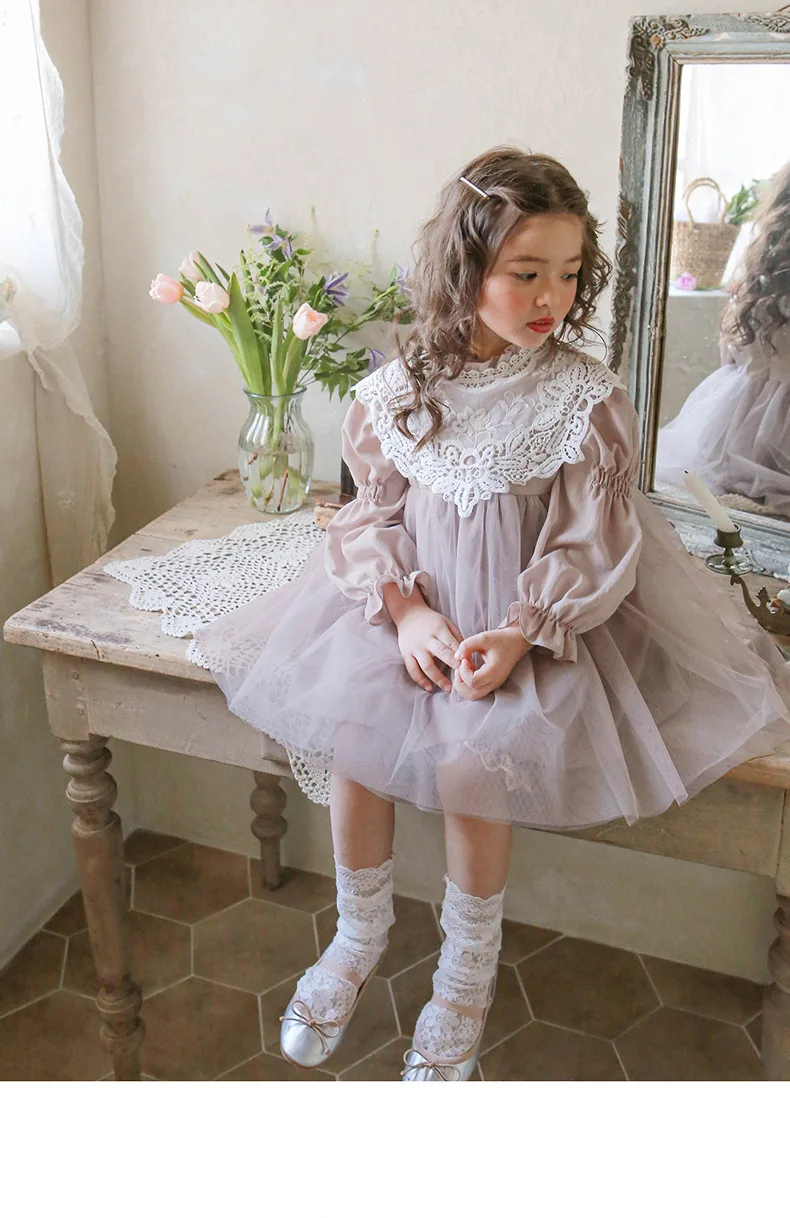 キッズ レース 刺繍 チュチュ チュール 長袖 プリンセス ドレス ワンピース【mh0001533】