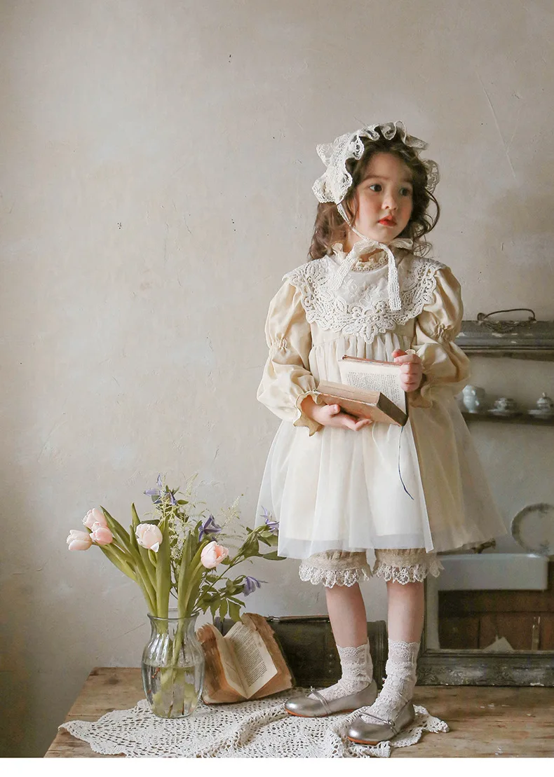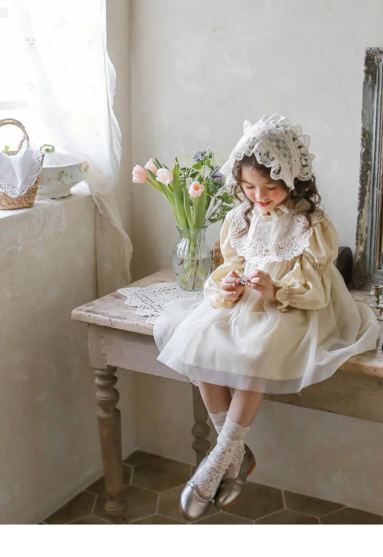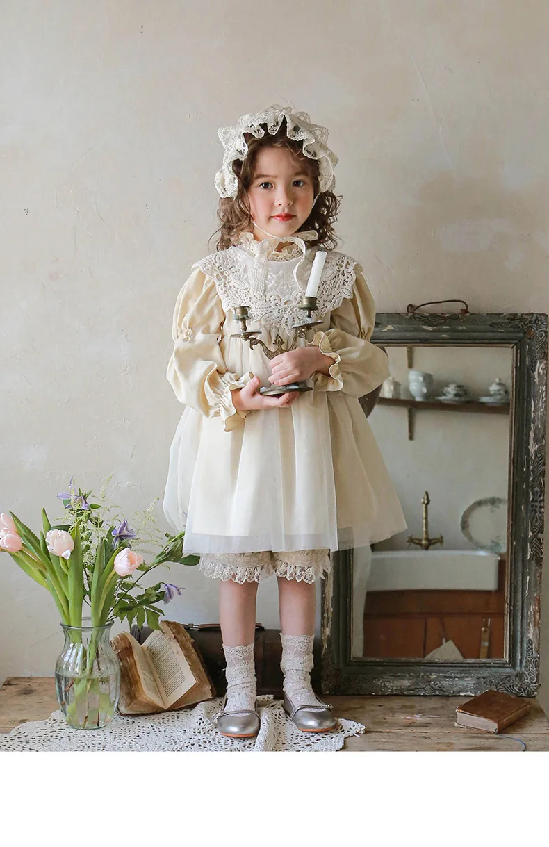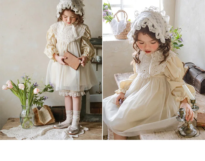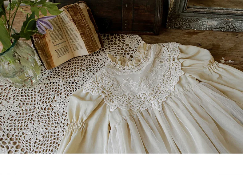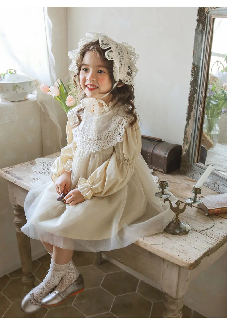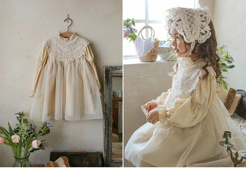 キッズ レース 刺繍 チュチュ チュール 長袖 プリンセス ドレス ワンピース【mh0001533】