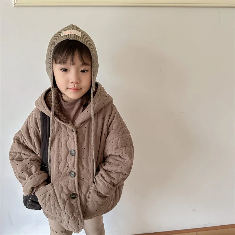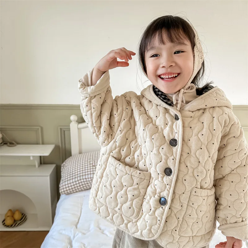 キッズ みずたま キルティング 裏フリース フーディ ジャケット コート アウター【mh0003029】