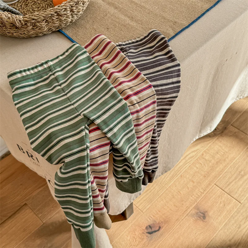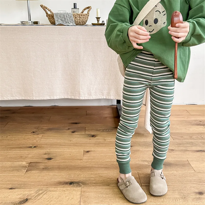 肌触りの良い素材と遊び心あふれるデザインが魅力の、キッズ向けボーダー柄レギンスパンツが登場しました。シンプルでありながらもおしゃれなボーダーデザインは、子供たちのカジュアルなコーディネートにぴったり。動きやすいので、元気いっぱいなお子様も快適に過ごせます。