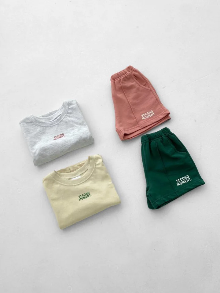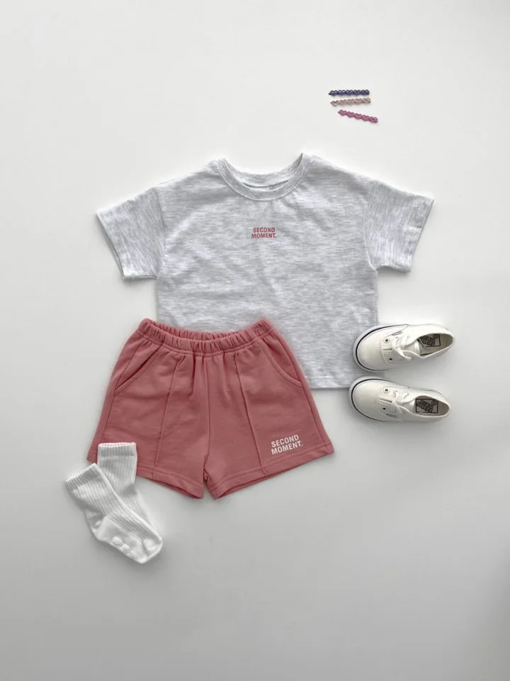 キッズセットアップ 2点セット 半袖Tシャツ+ショートパンツ ワンポイントロゴプリント 2カラー【mh0005477】