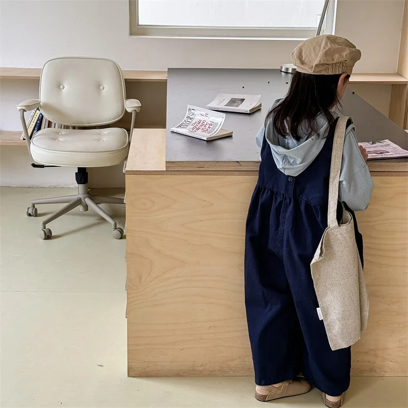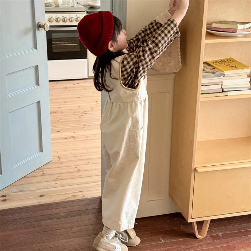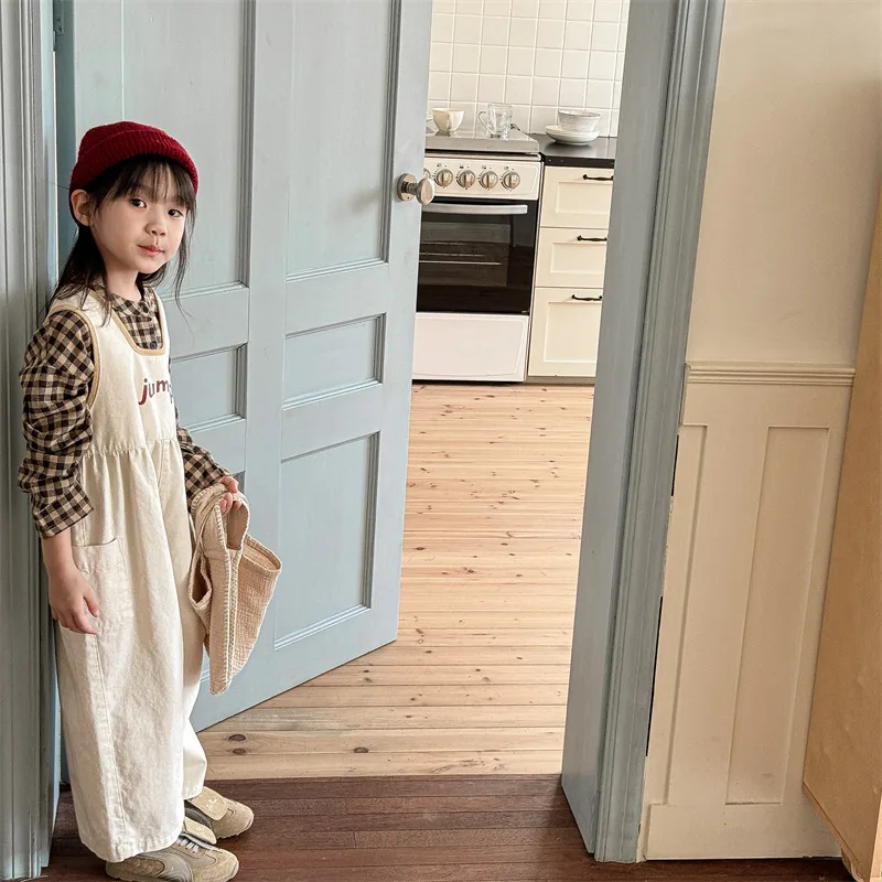 レターロゴプリントが特徴のサロペットパンツで、ルーズなオーバーオールデザインです。柔らかなコットン素材が心地よく、リラックスした着心地を提供します。ストラップ付きで動きやすく、カジュアルなスタイルにぴったりです。2色のカラー展開で、男の子にも女の子にも合わせやすい一枚です。