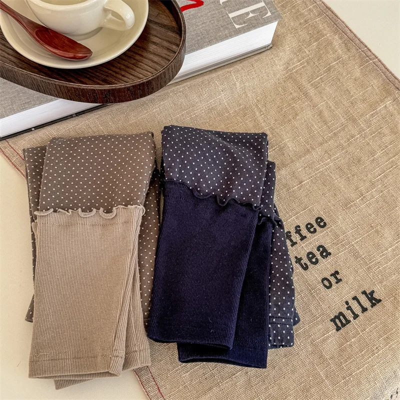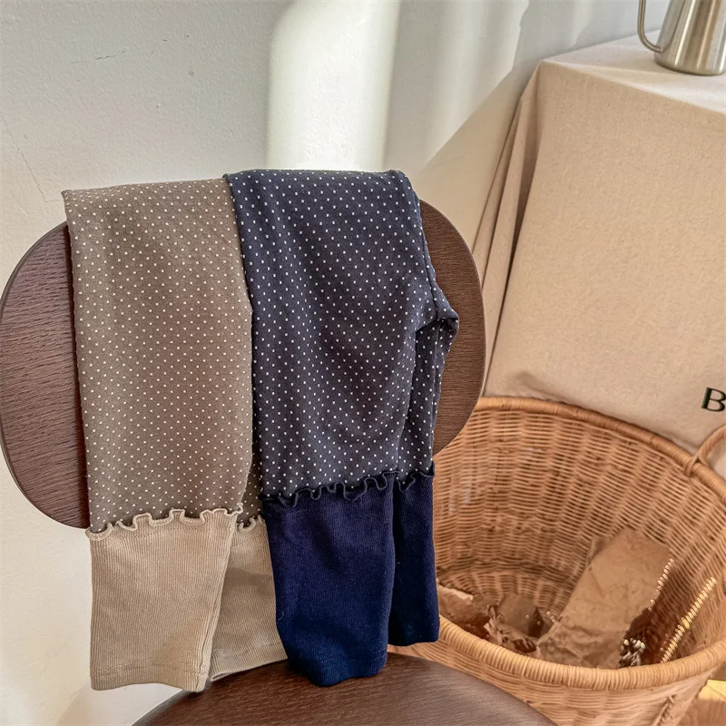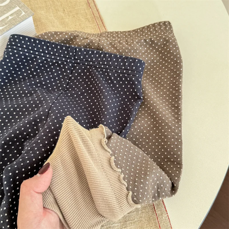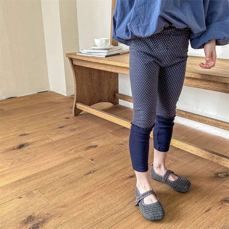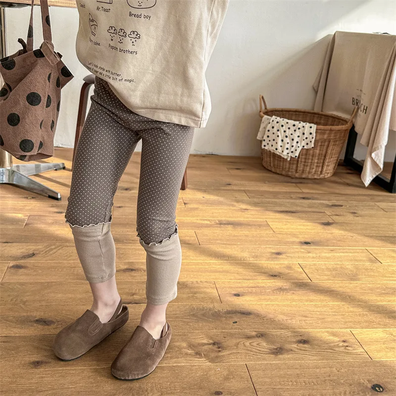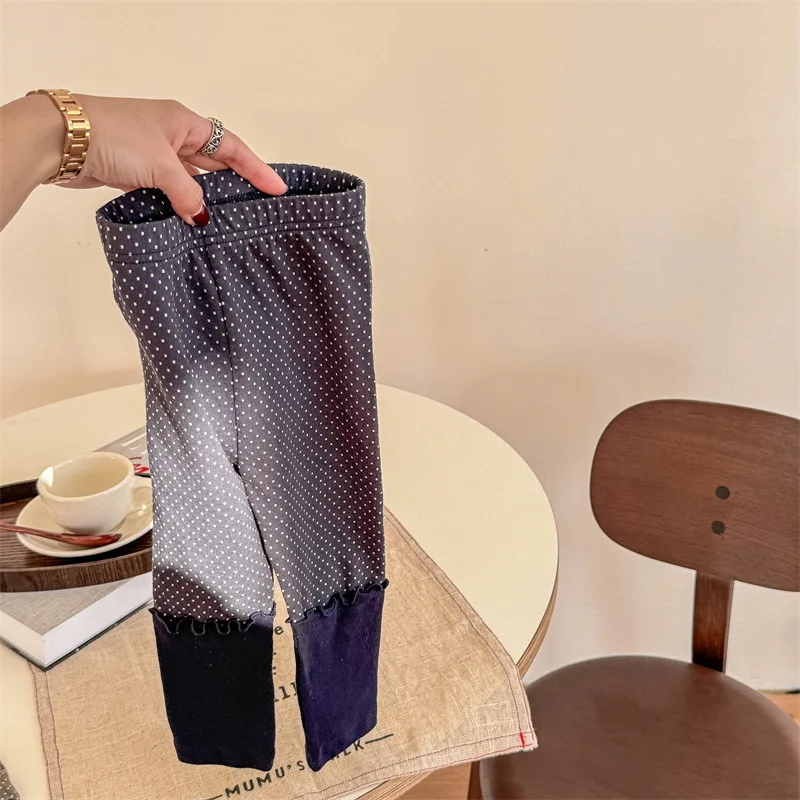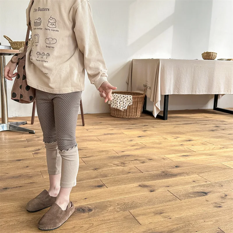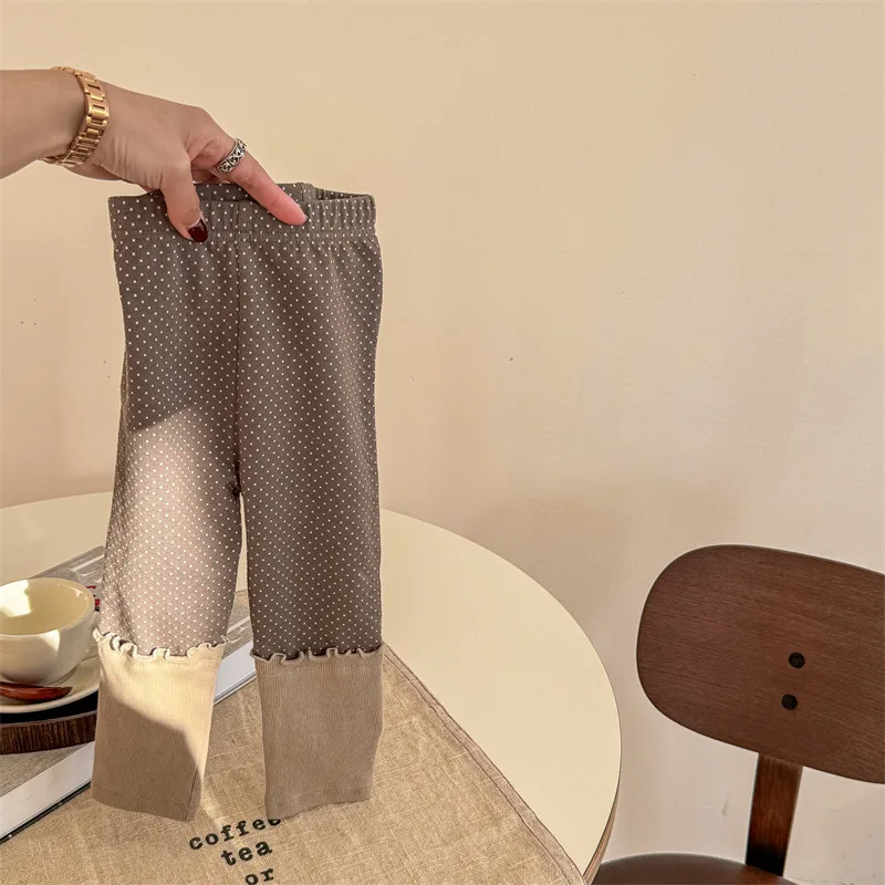 #キッズパンツ #ドットプリント #フリルレギンス #ロールアップデザイン #カジュアルファッション #子供服