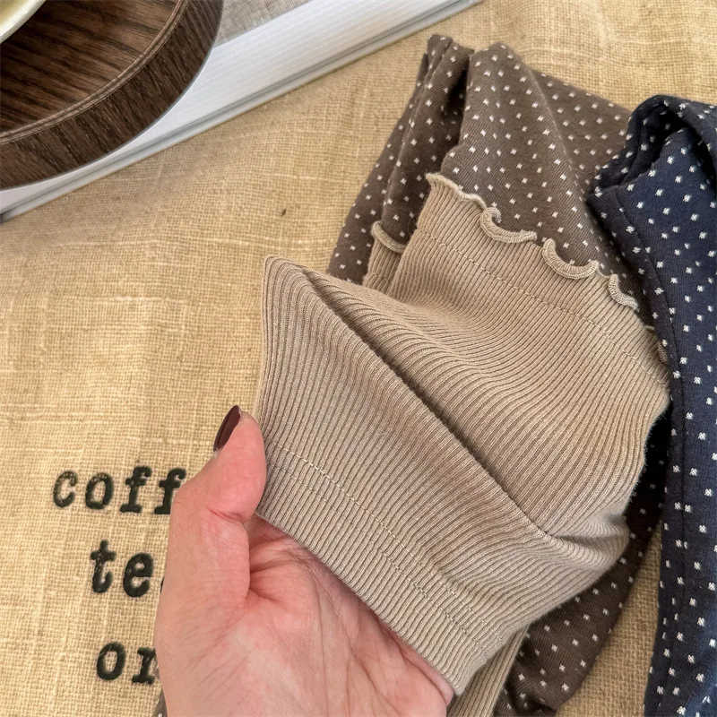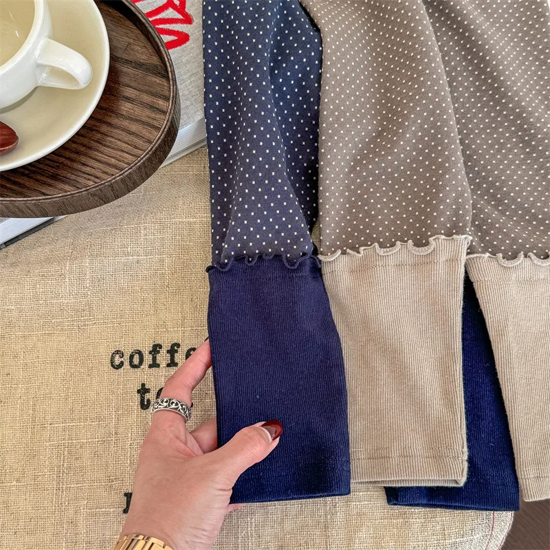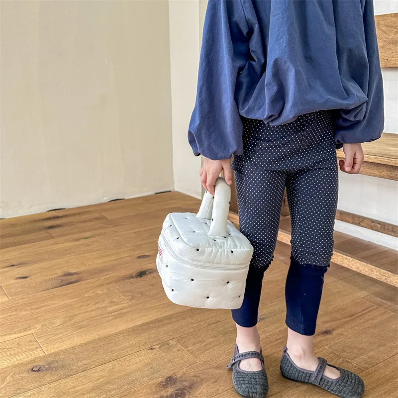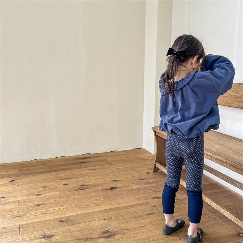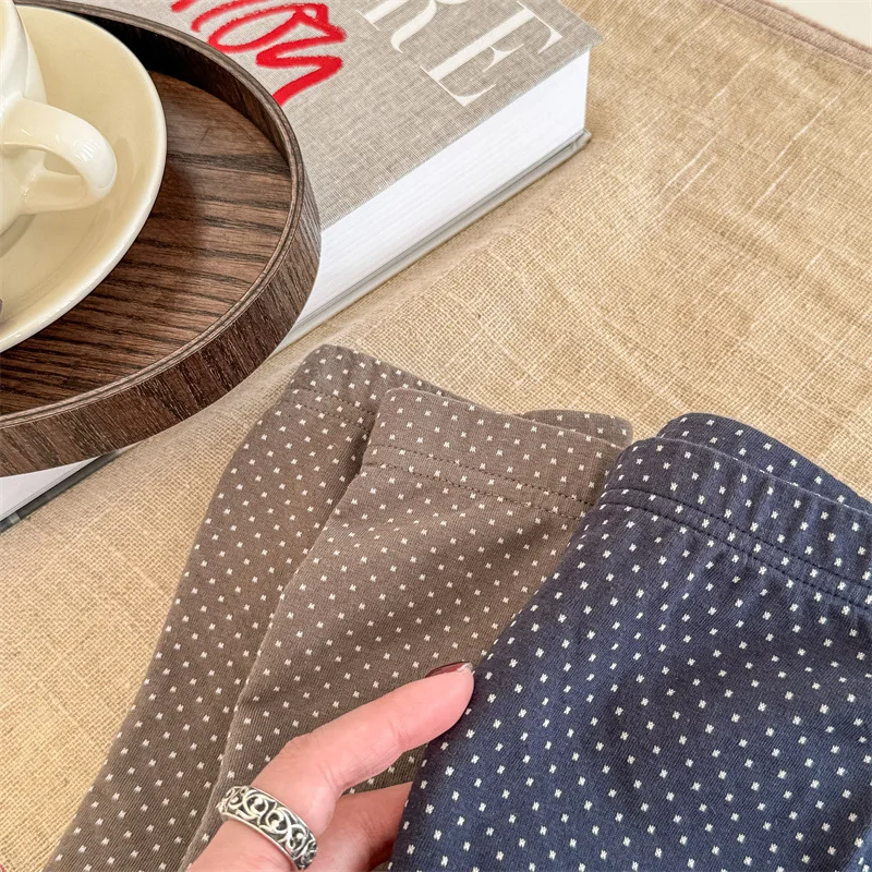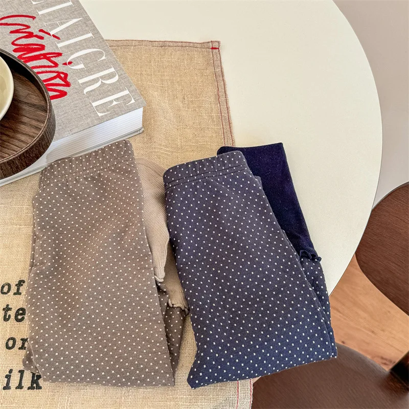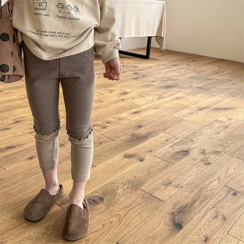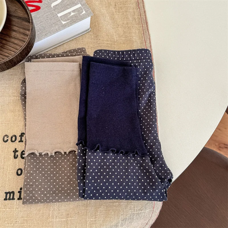 #キッズパンツ #ドットプリント #フリルレギンス #ロールアップデザイン #カジュアルファッション #子供服