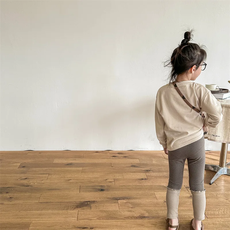 水玉ドットプリントとロールアップフリルが特徴のレギンスパンツは、キッズのカジュアルスタイルに遊び心を加えるアイテムです。ドット柄のスピリットが可愛らしく、ロールアップフリルがデザインにアクセントを与えます。柔らかなコットン素材が肌に優しく、着心地も抜群。リラックスしたシルエットで、デイリーのコーディネートからちょっとしたお出かけまで幅広く活躍します。2つのカラー展開からお好みのスタイルを選び、快適でおしゃれな日常を楽しんでください。