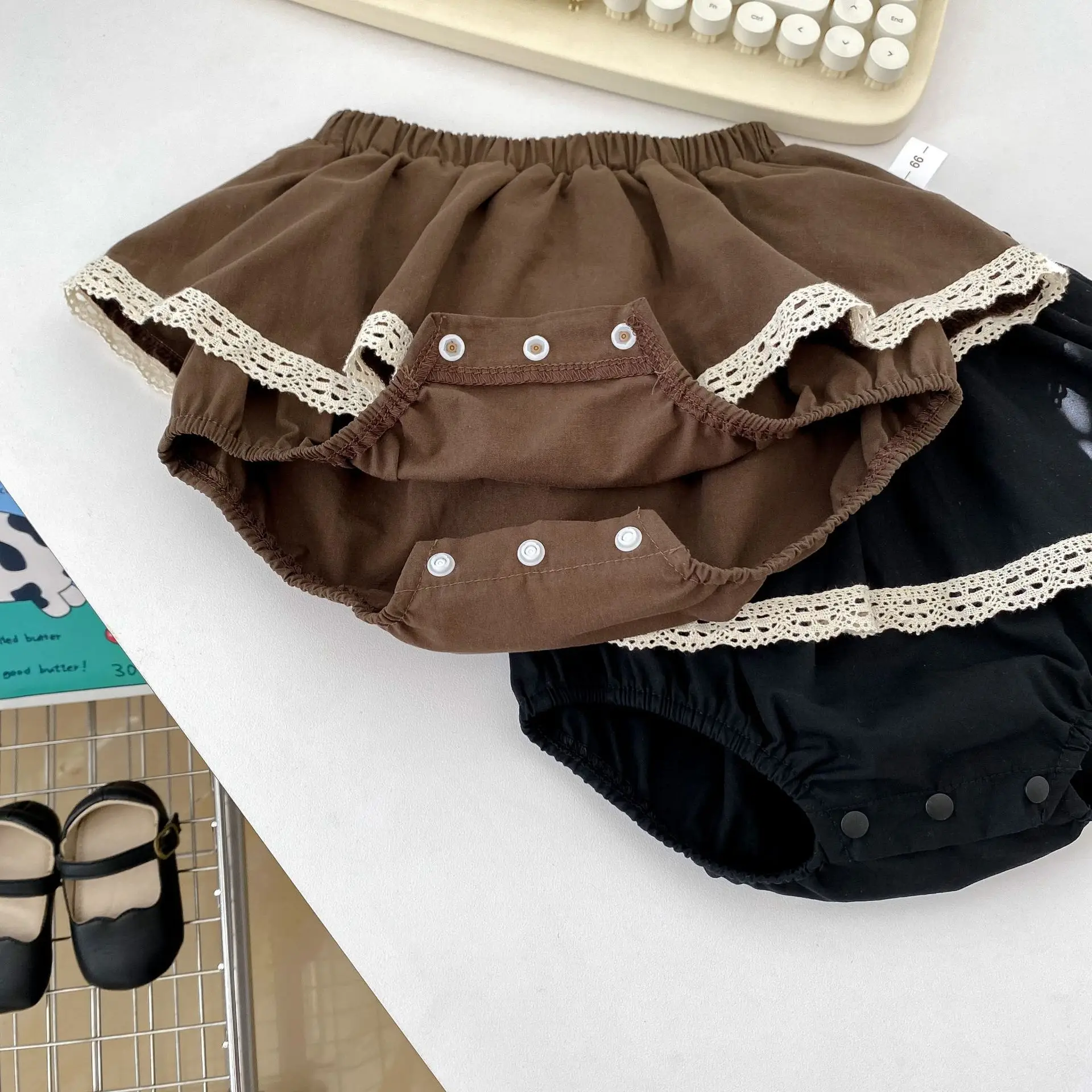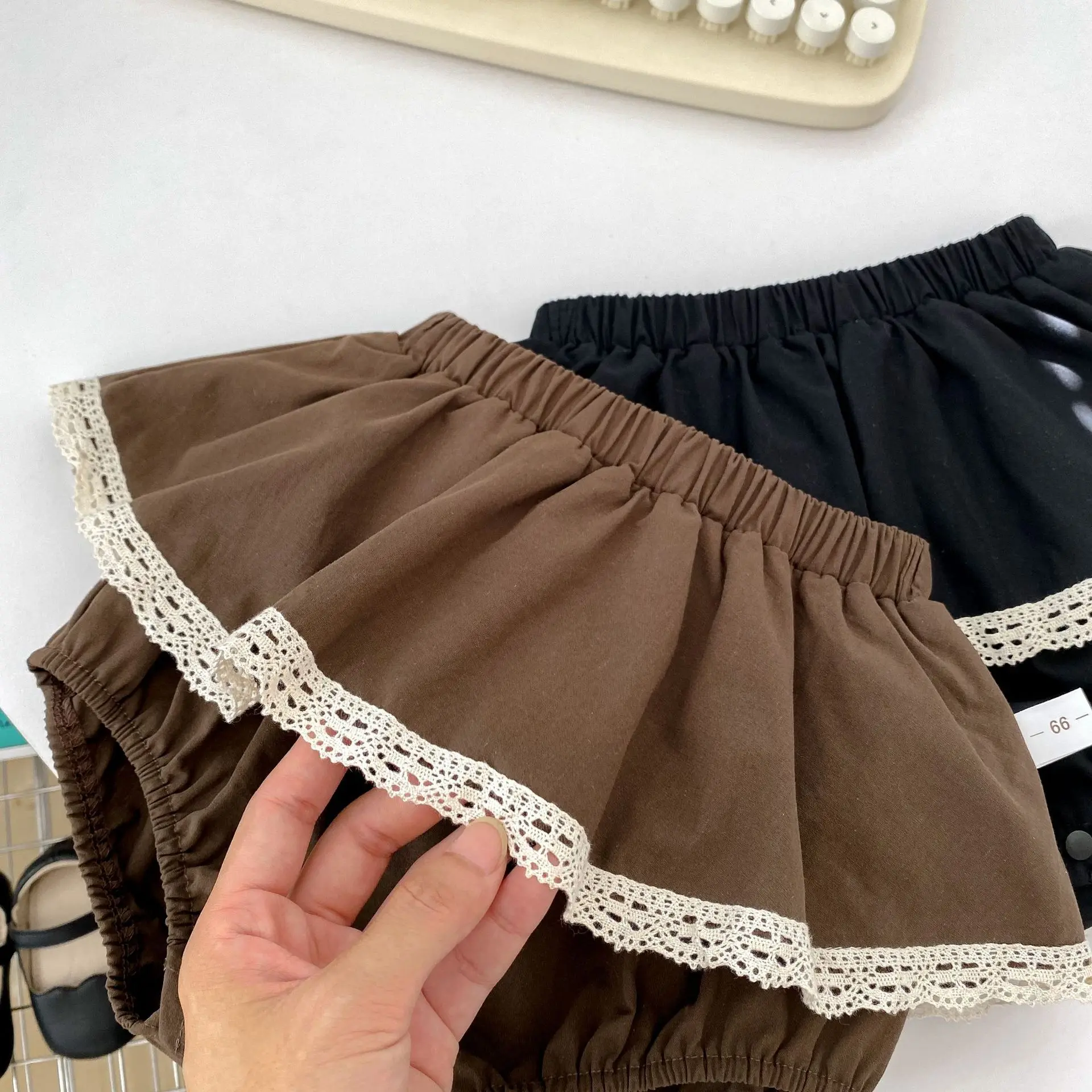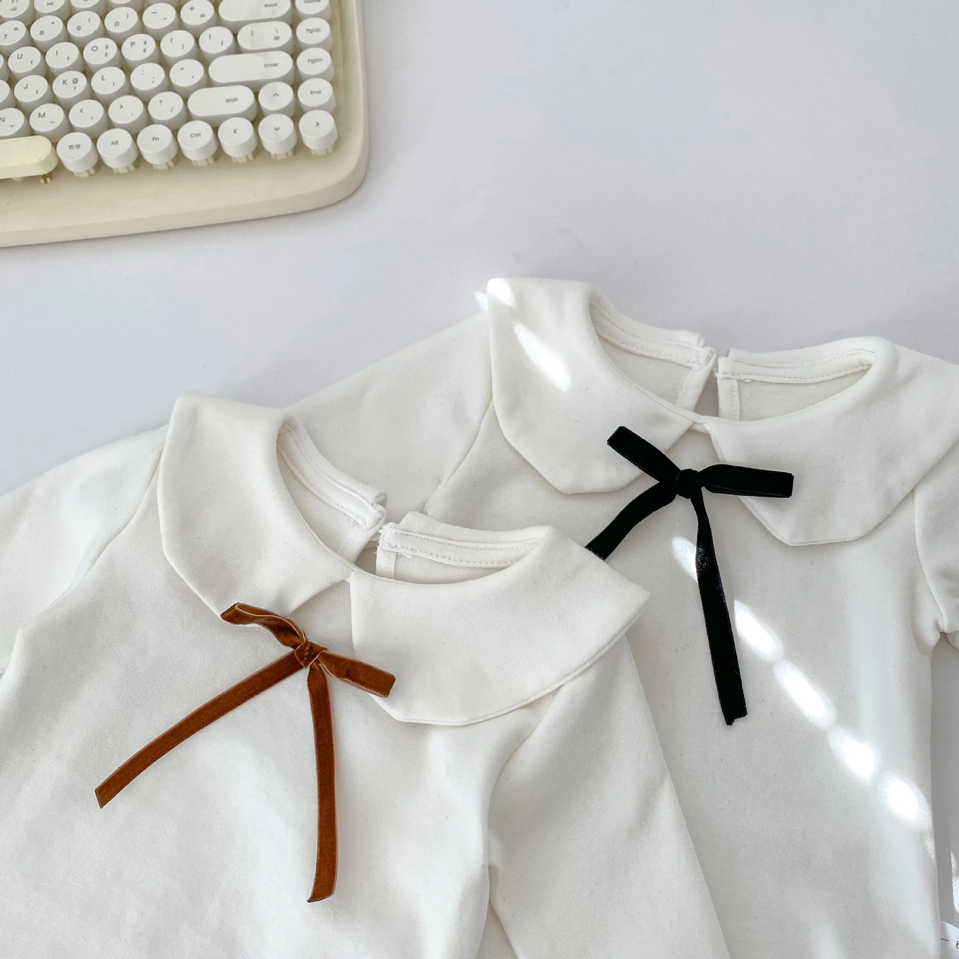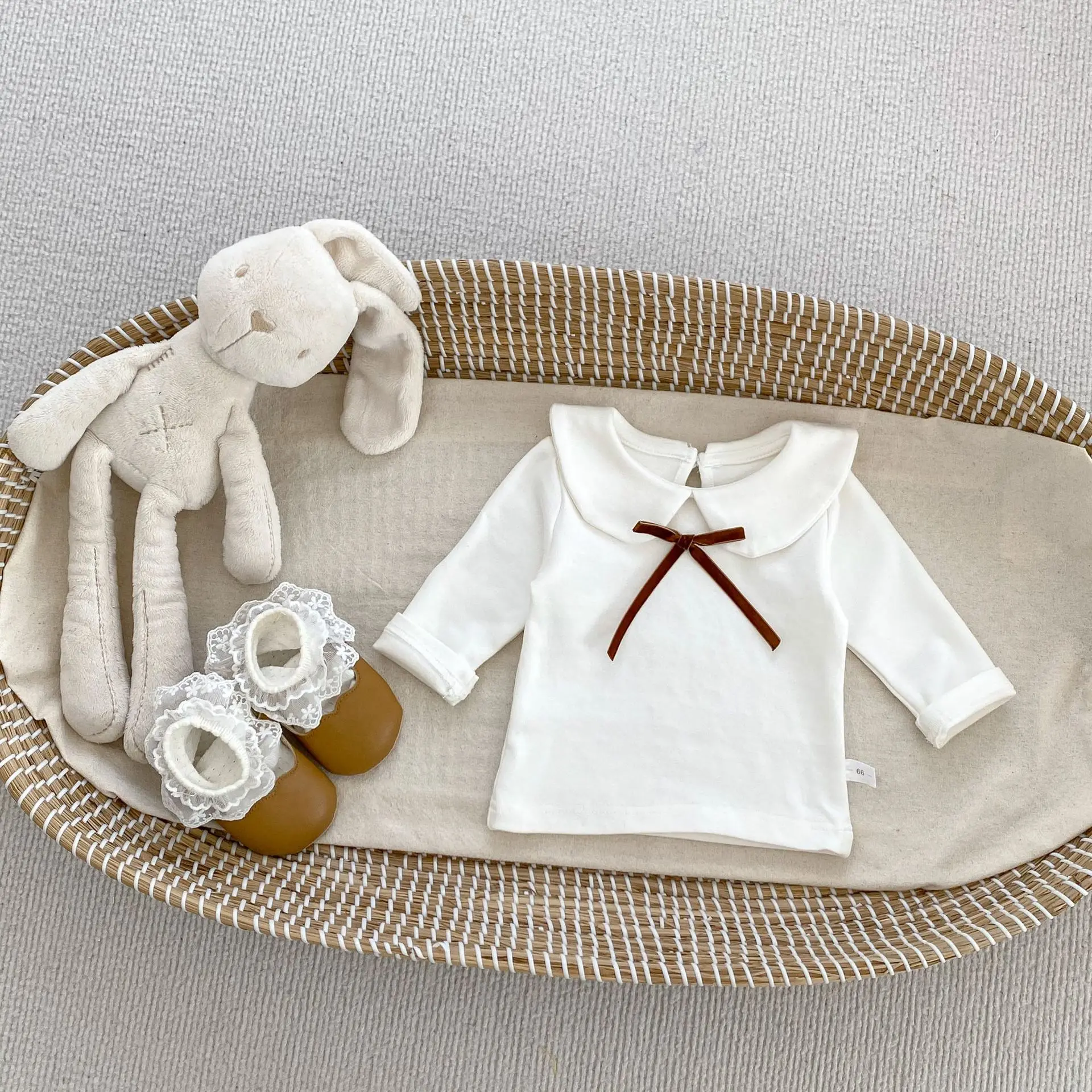 ベビートップス/ブルマ リボン丸襟長袖Tシャツブラウス/フリルレースブルマパンツ 2カラー【mh0007186】