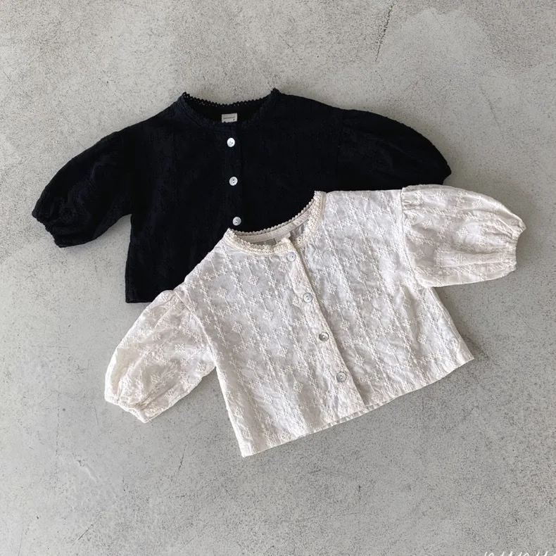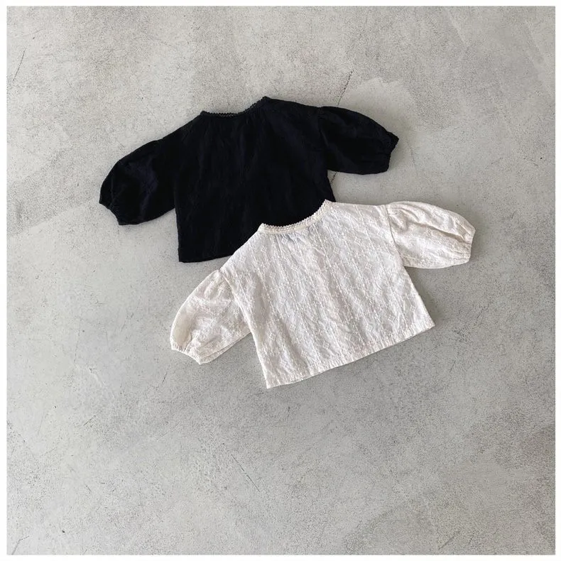 #ベビートップス #レース刺繍 #ノーカラーブラウス #サスペンダーブルマ #ベビー服 #おしゃれベビー #赤ちゃんファッション