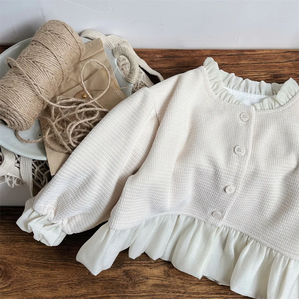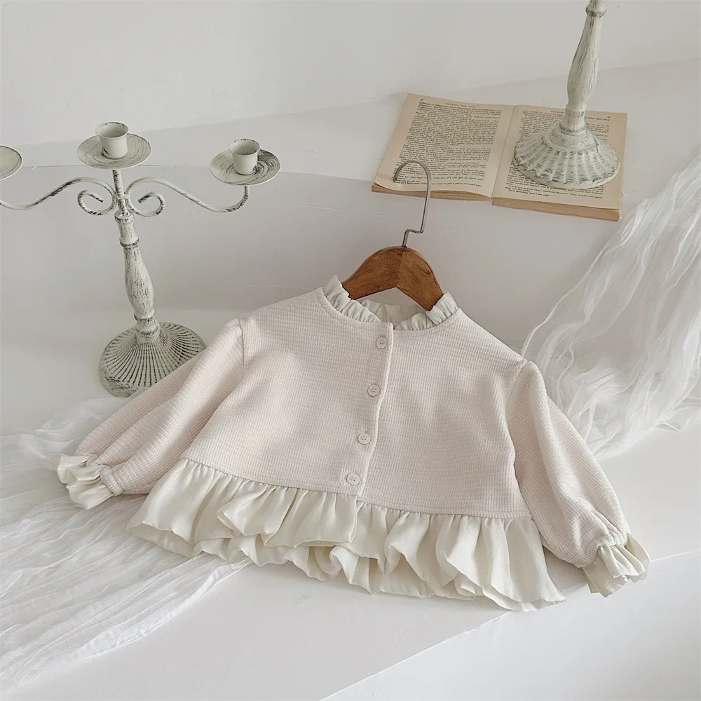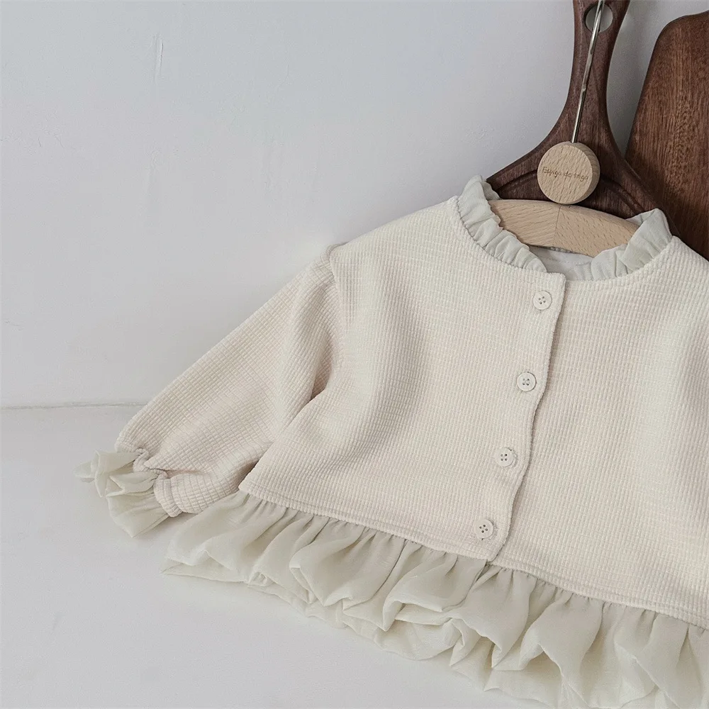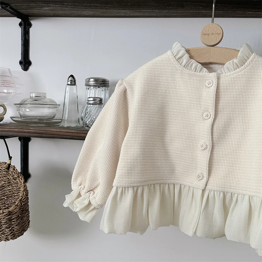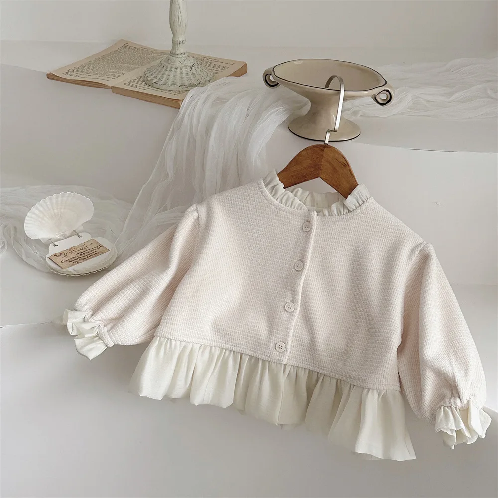 #ベビーカーディガン #チュチュデザイン #ガーリースタイル #コットンジャケット #おしゃれベビー #長袖 #レースディテール