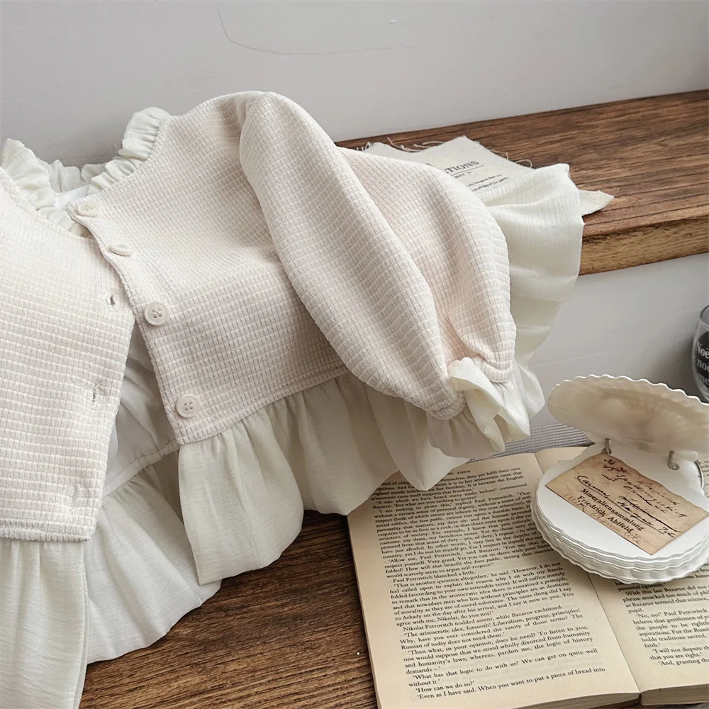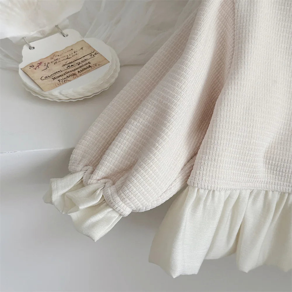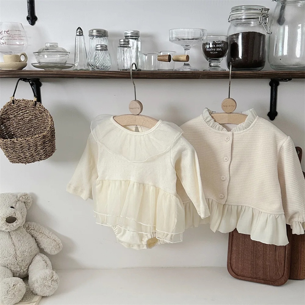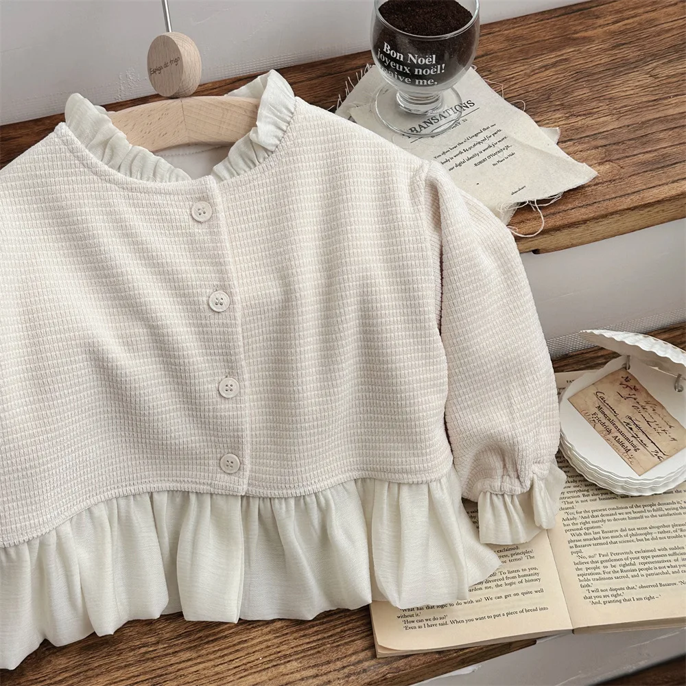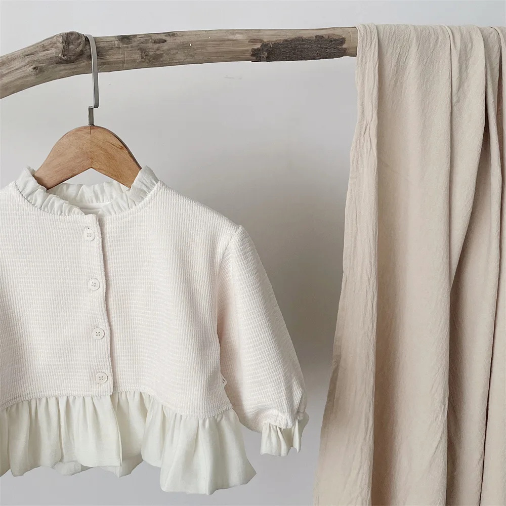 #ベビーカーディガン #チュチュデザイン #ガーリースタイル #コットンジャケット #おしゃれベビー #長袖 #レースディテール