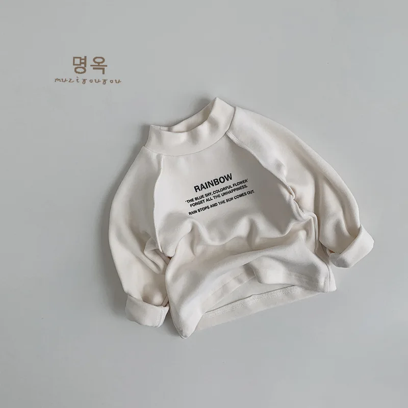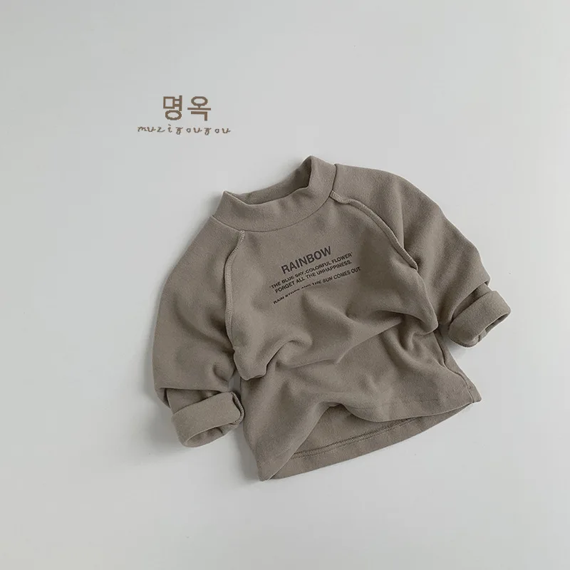 キッズトップス レターロゴプリントフリース長袖スウェットシャツ【mh0007763】
