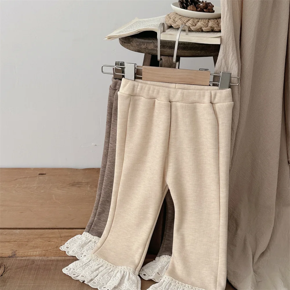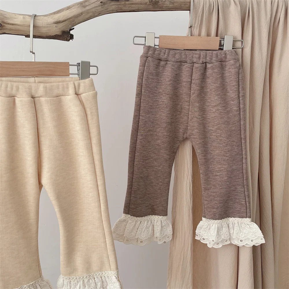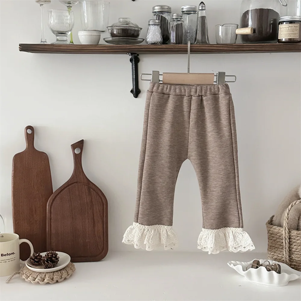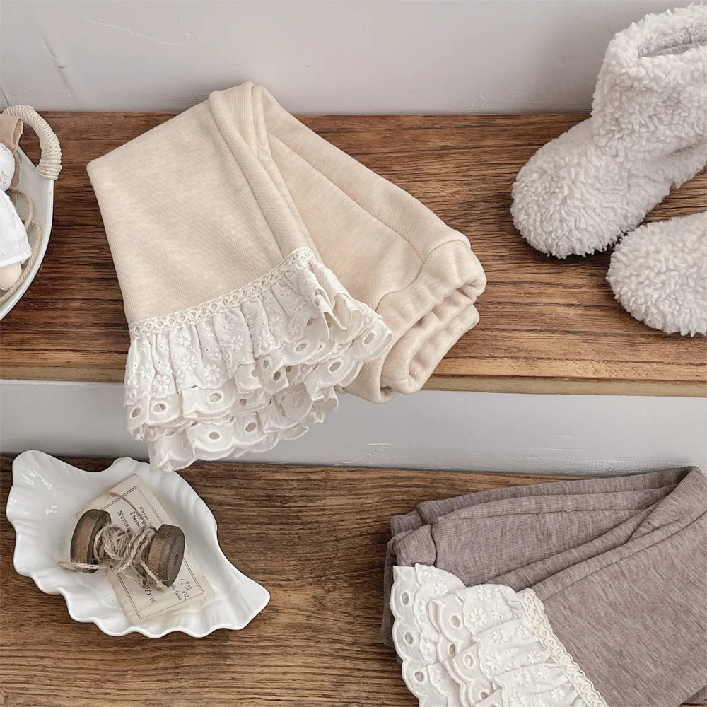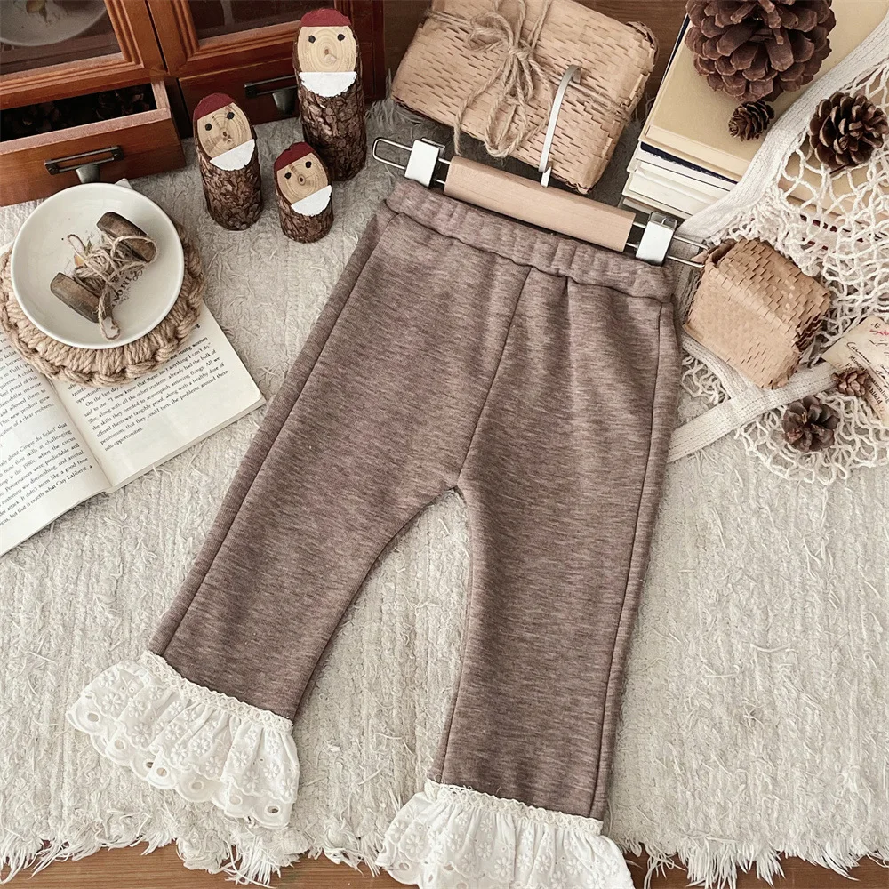 ベビーパンツ 裾レース裏フリース厚手ガーリーレギンスパンツ【mh0008092】