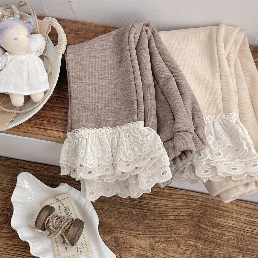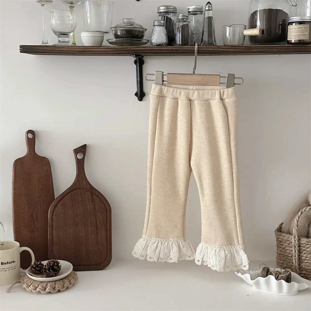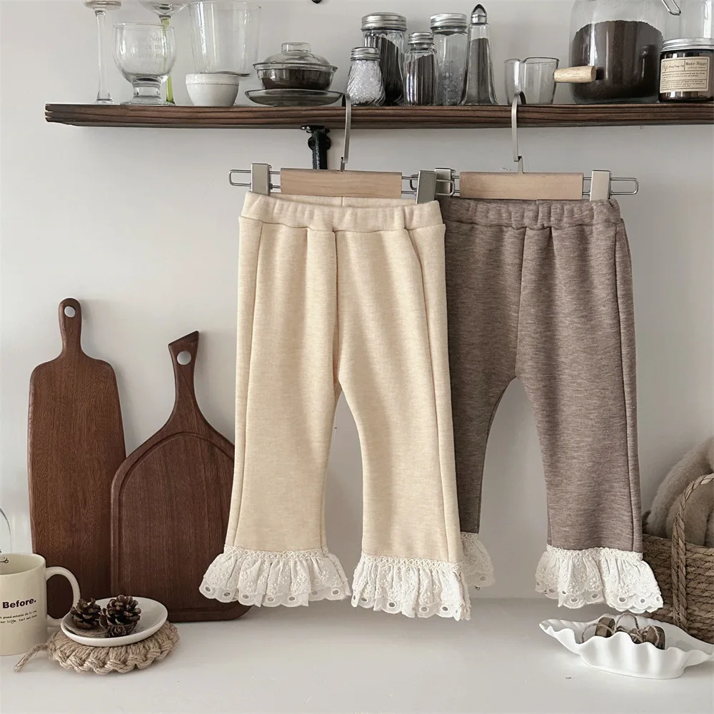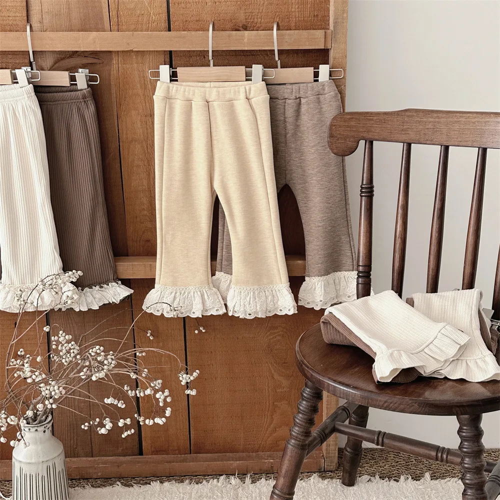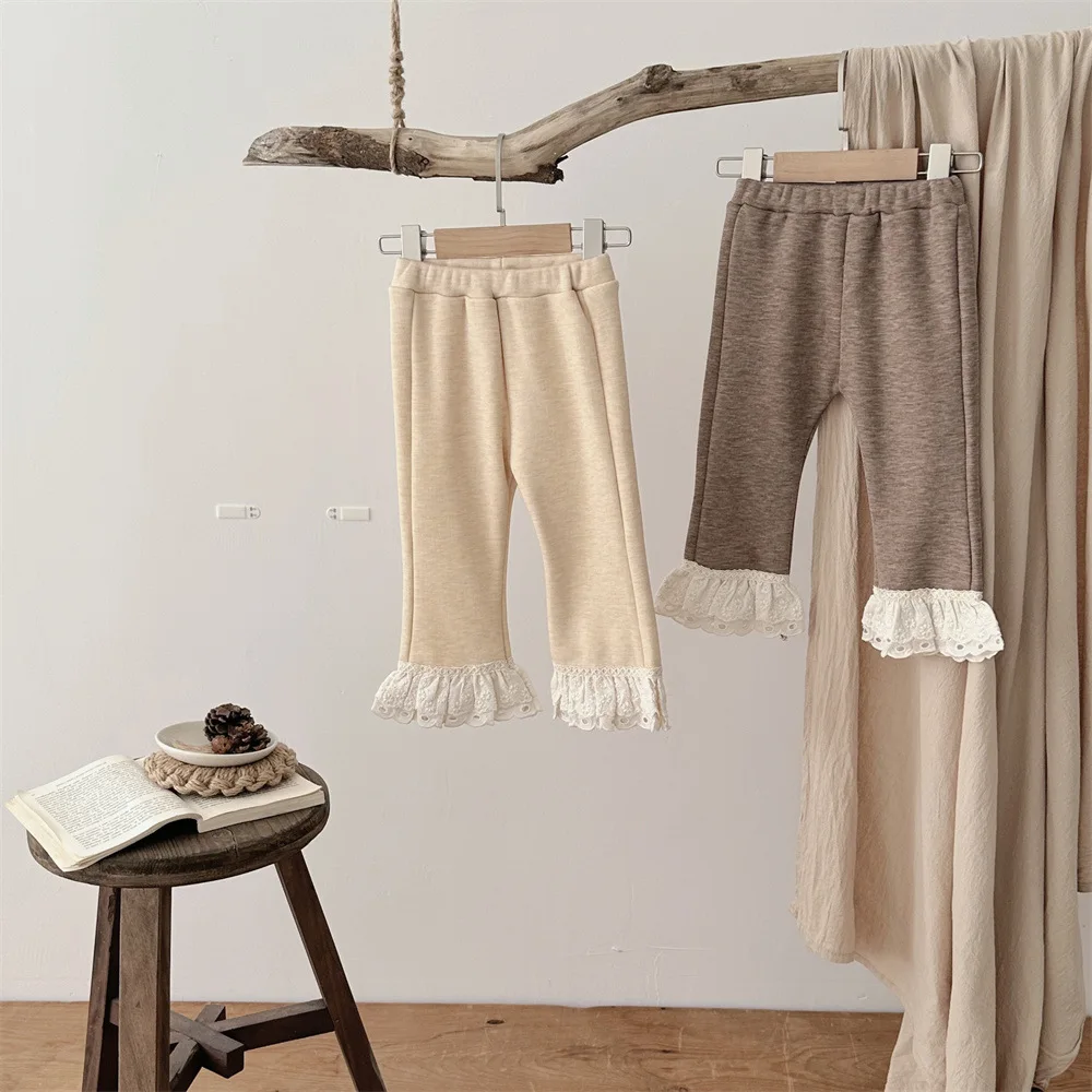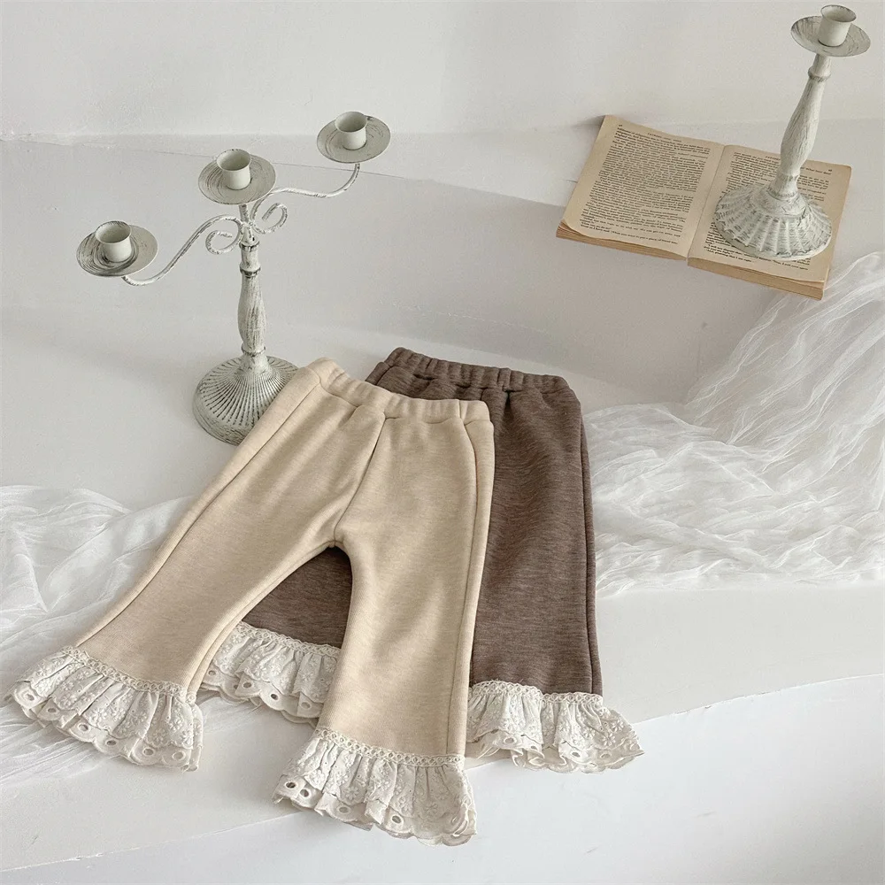 ベビーパンツ 裾レース裏フリース厚手ガーリーレギンスパンツ【mh0008092】