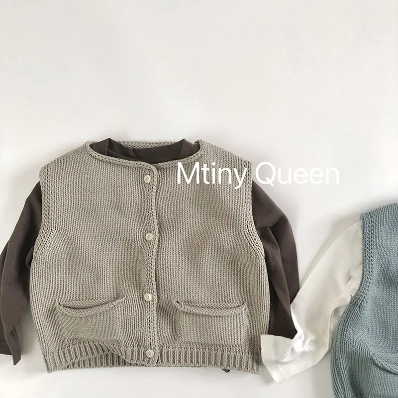 #キッズファッション #ニットベスト #シンプルデザイン #前開きベスト #重ね着アイテム #子供服 #カジュアルウェア