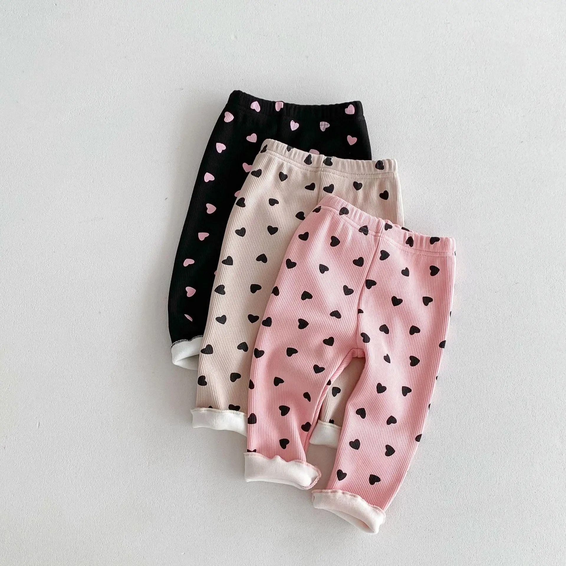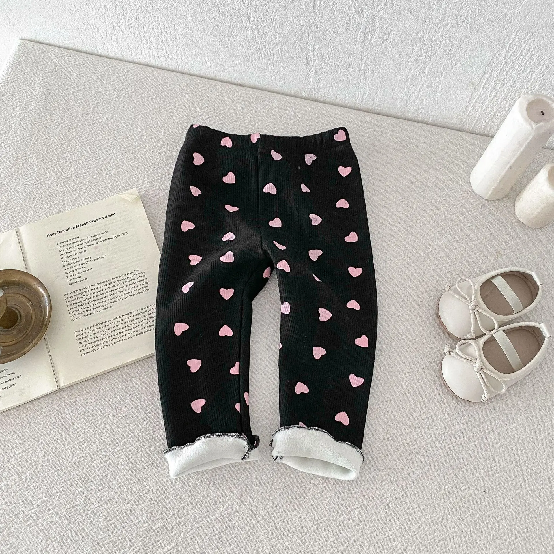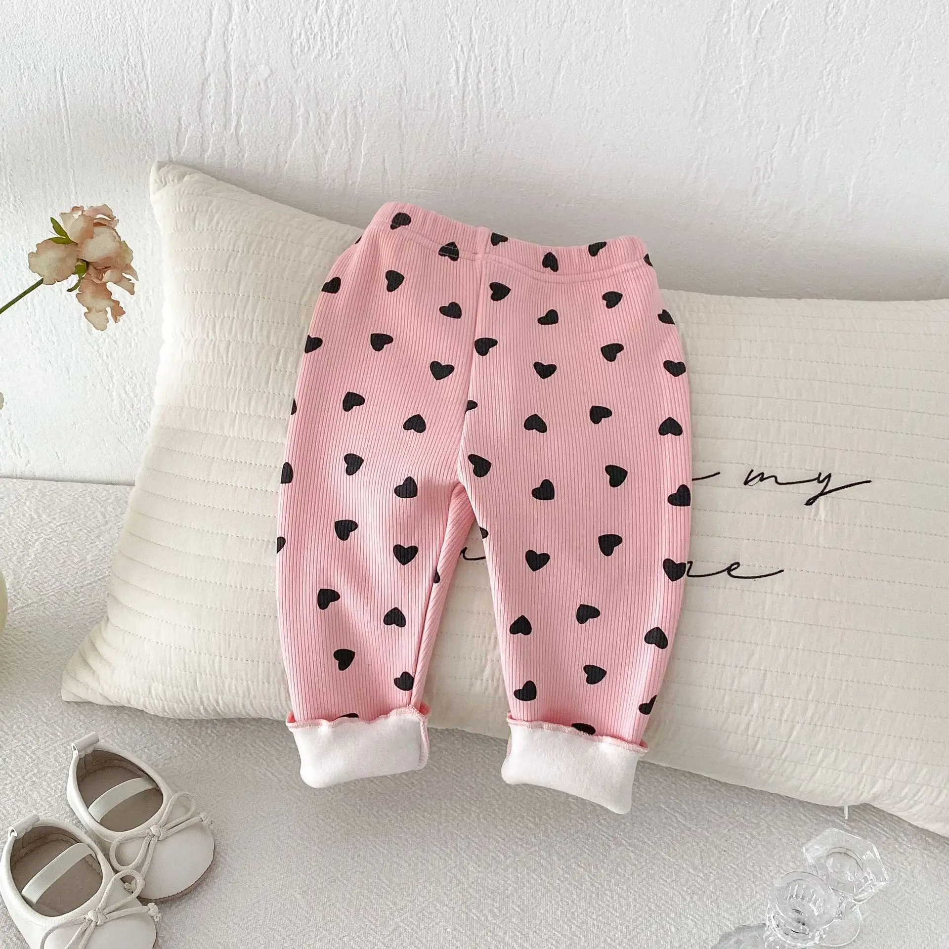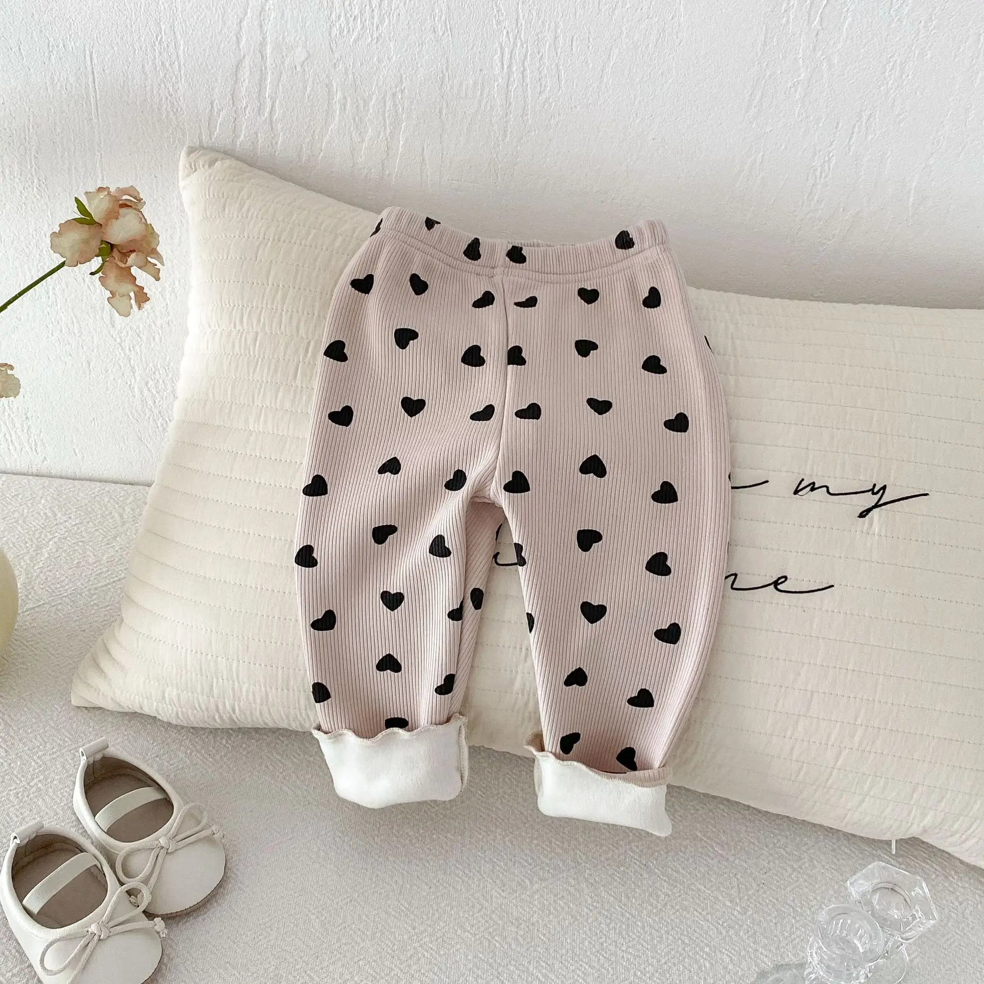 #キッズファッション #ハートプリント #裏フリースレギンス #冬用パンツ #暖かいコットン素材 #赤ちゃん服 #ガーリースタイル
