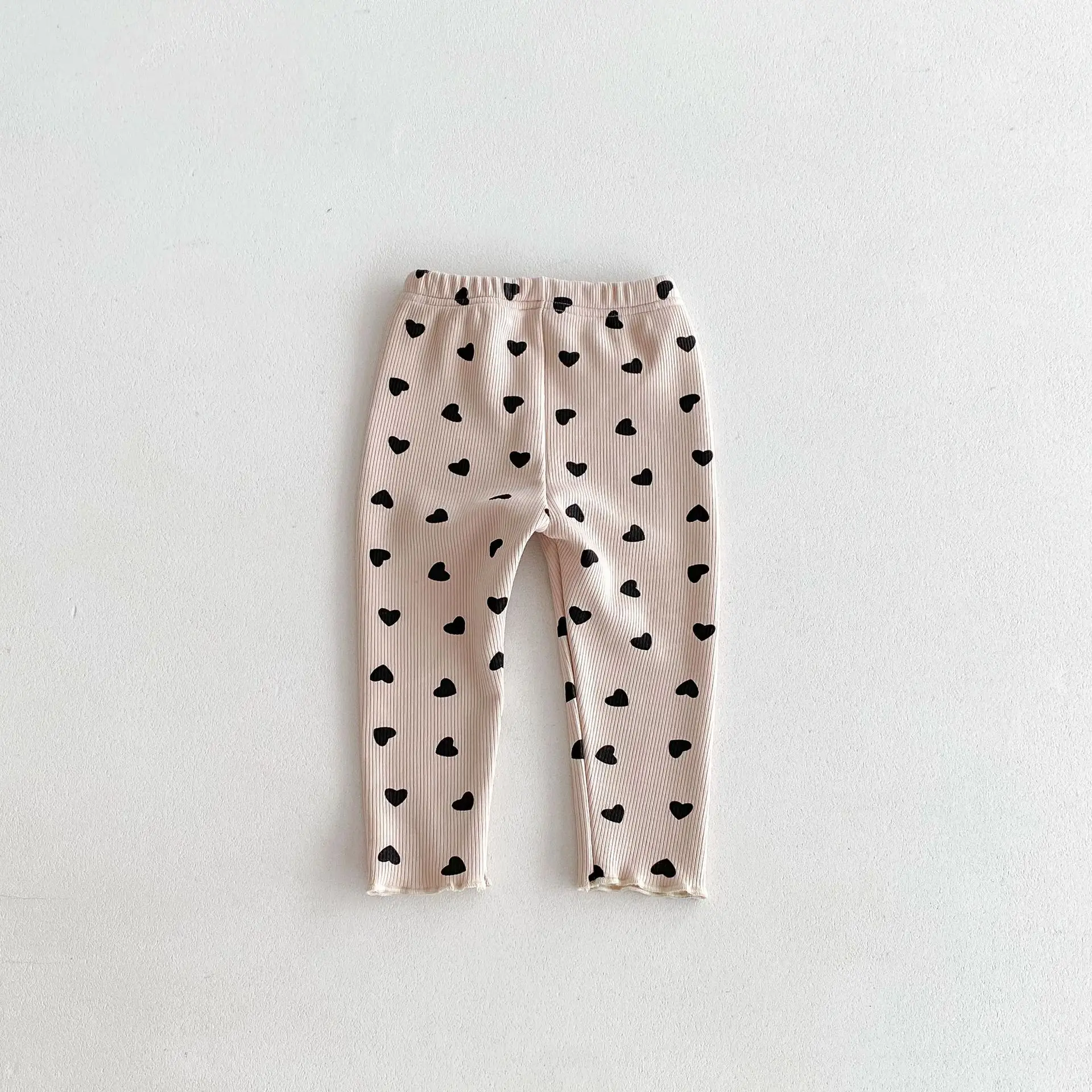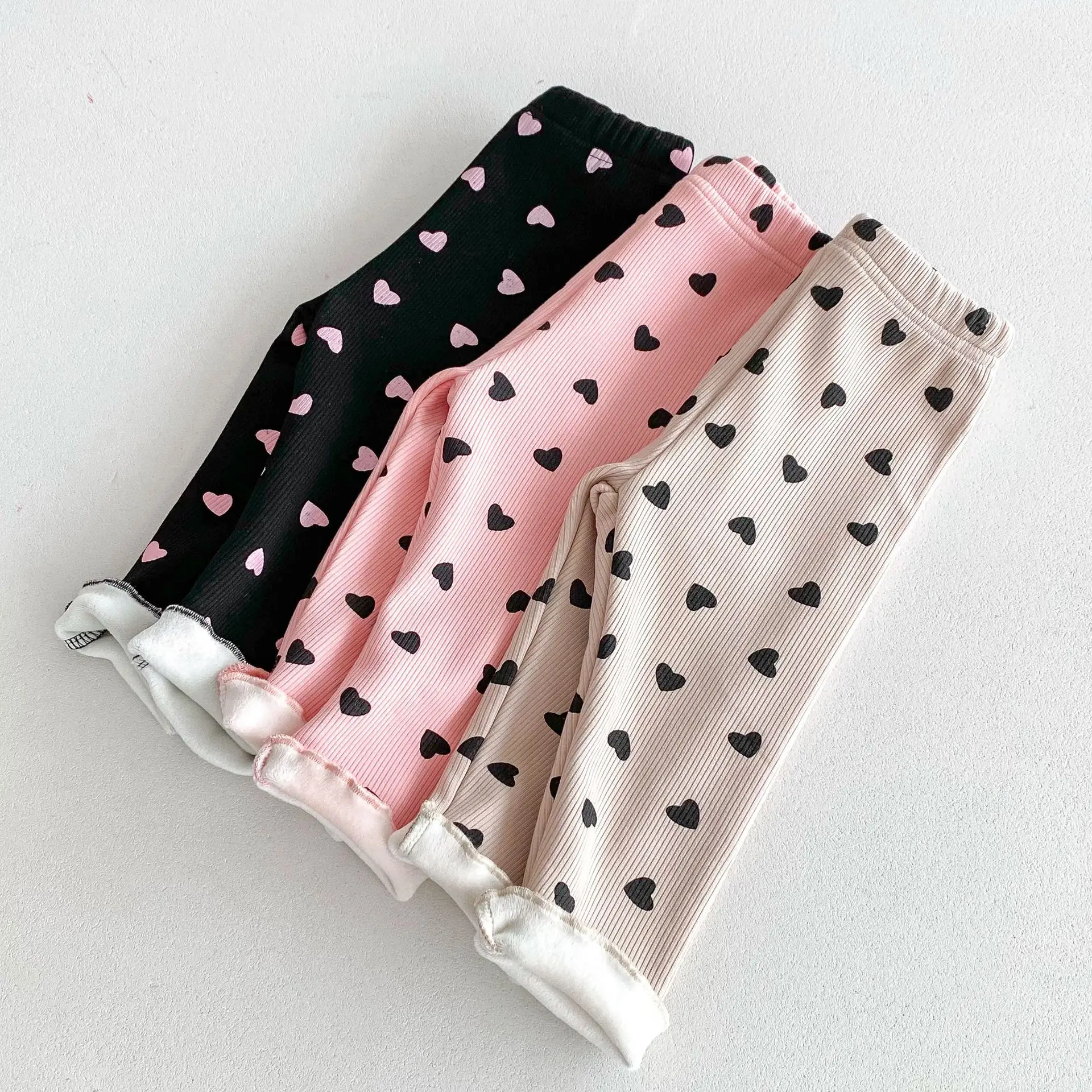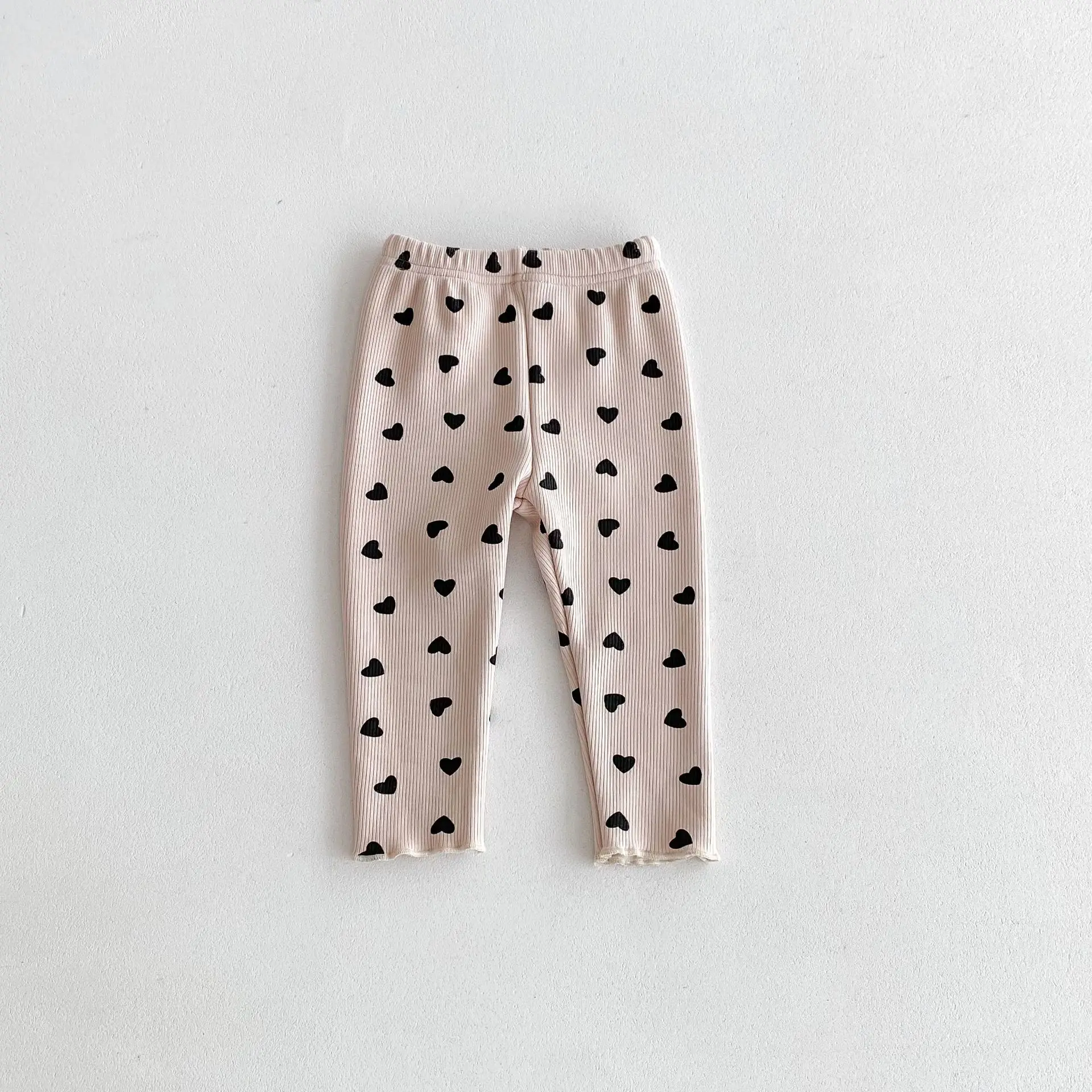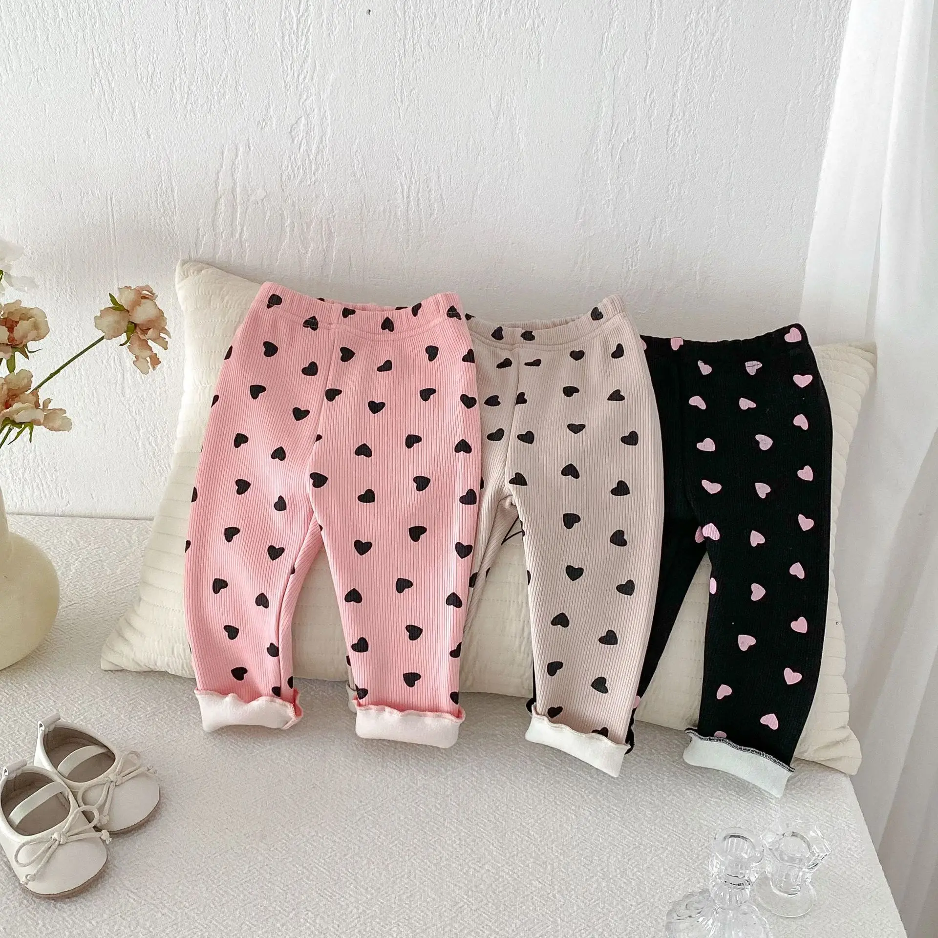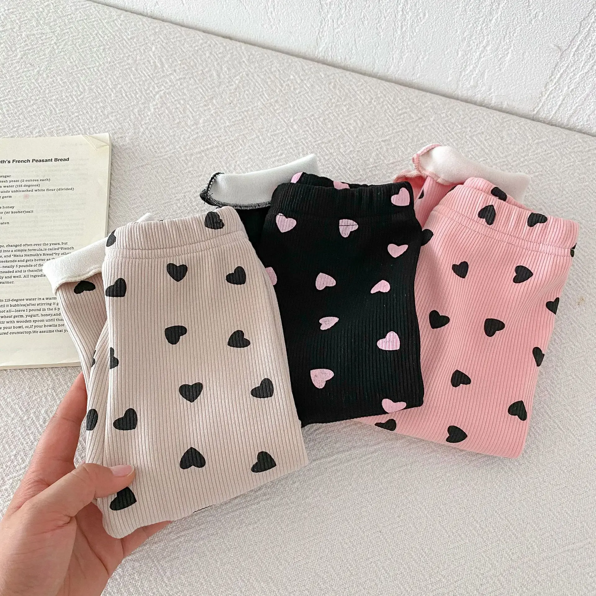 #キッズファッション #ハートプリント #裏フリースレギンス #冬用パンツ #暖かいコットン素材 #赤ちゃん服 #ガーリースタイル