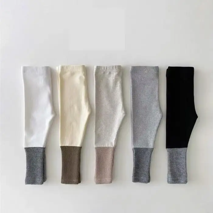 ベビーキッズパンツ 裏ボアフリース切り替えパッチワークシンプルレギンスパンツ【mh0008490】