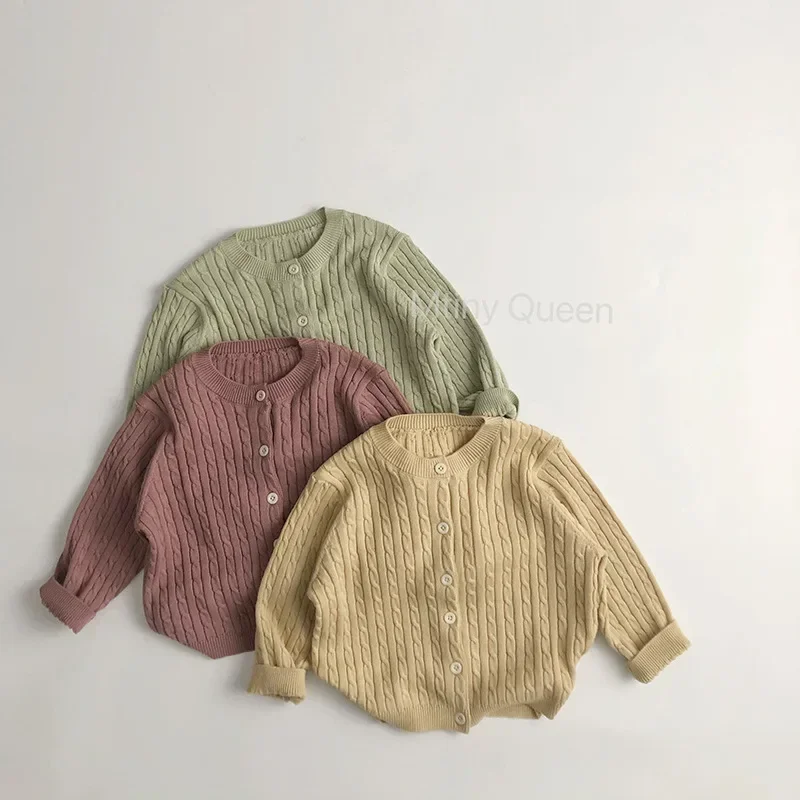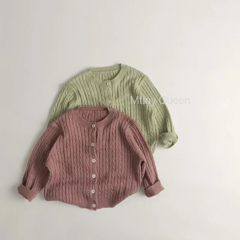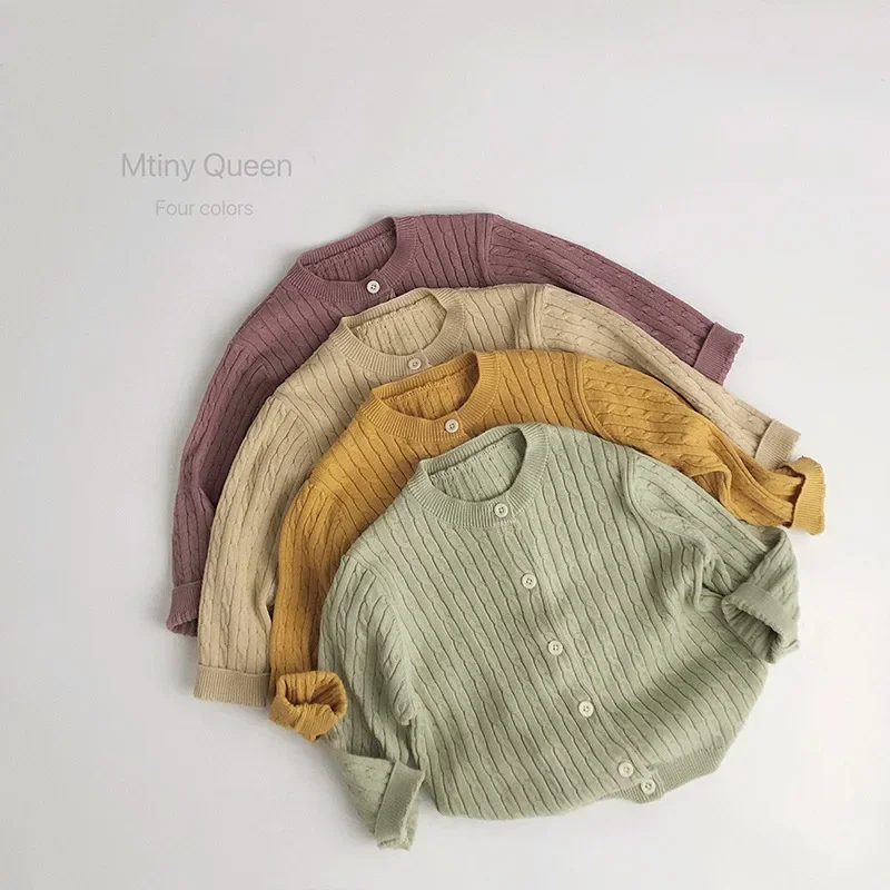 キッズカーディガン リブニットシンプル丸襟カーディガンジャケット【mh0008952】