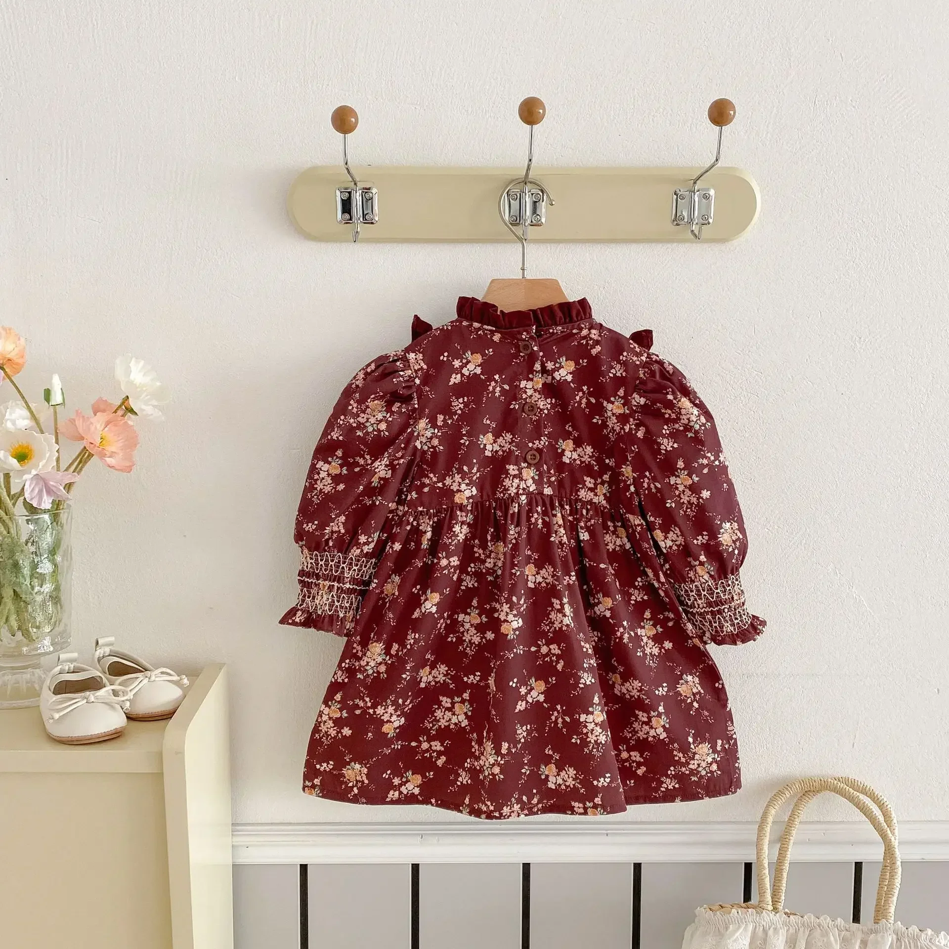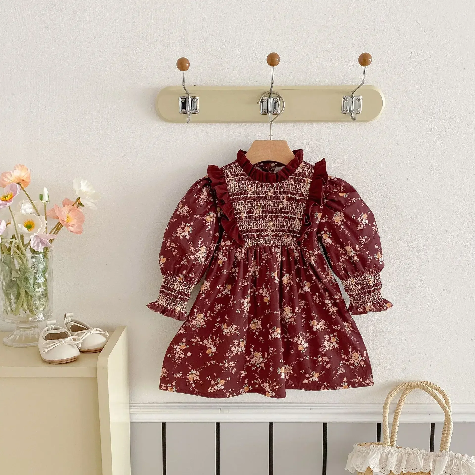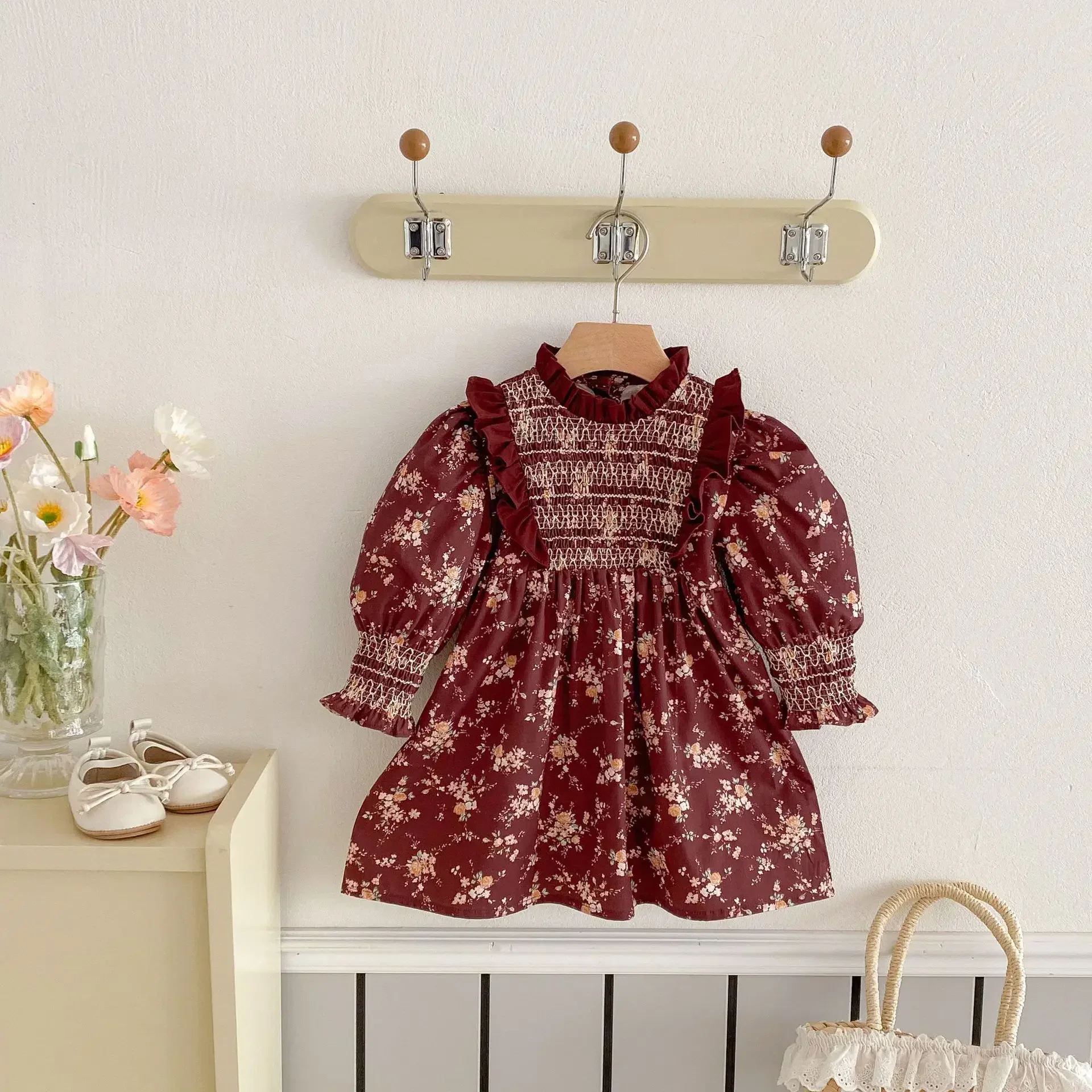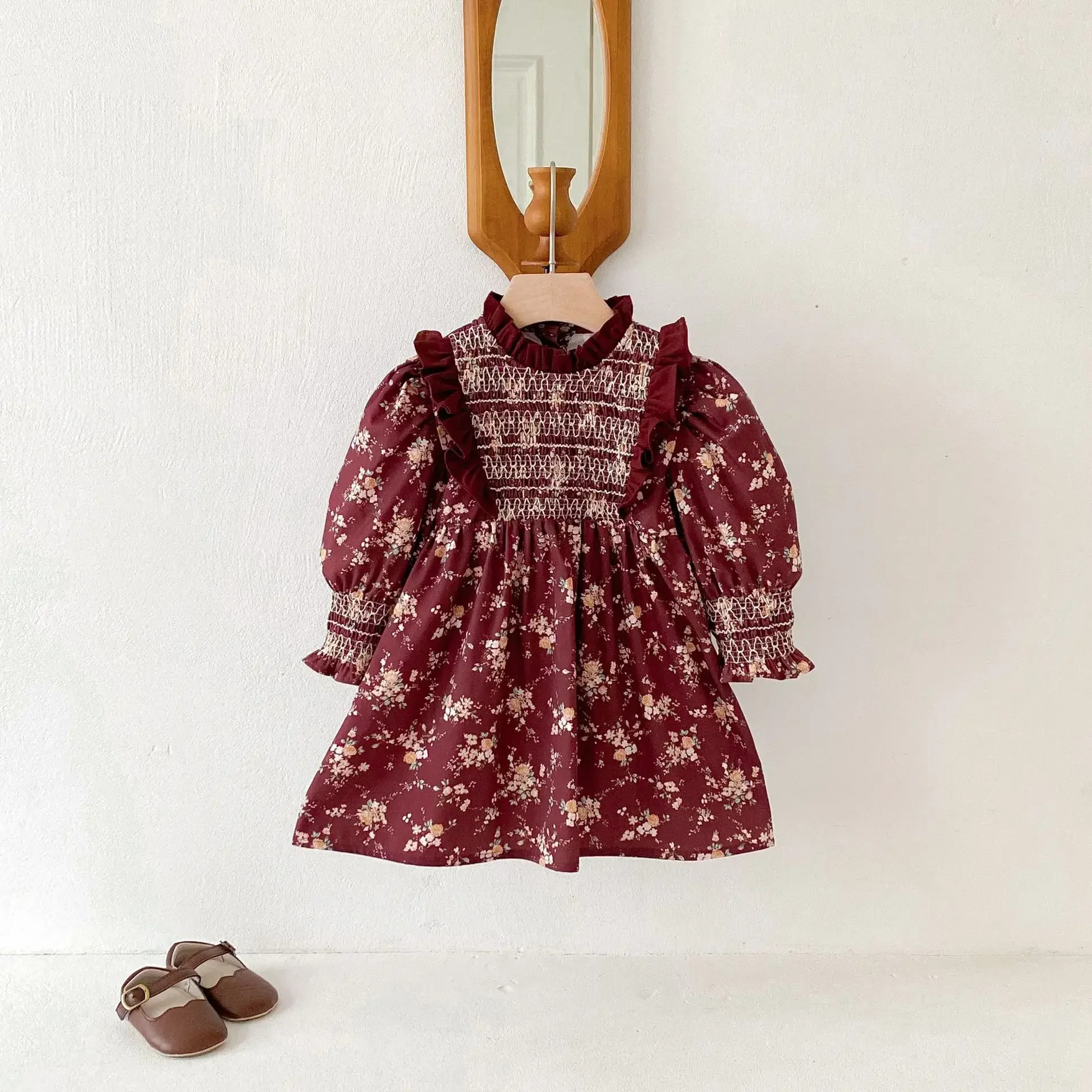 フラワープリントのフリルシャーリング長袖ボヘミアンワンピースです。ヴィンテージ感漂うデザインは、可愛らしさとおしゃれさを兼ね備え、特別な日のお出かけにもぴったりです。柔らかなコットン素材を使用しており、快適な着心地を提供します。パフスリーブとプリーツが施されたスタイルは、女の子らしいエレガントさを引き立てます。お子様の個性を引き出すこのワンピースは、普段使いはもちろん、特別なイベントやパーティーシーンでも大活躍するアイテムです。