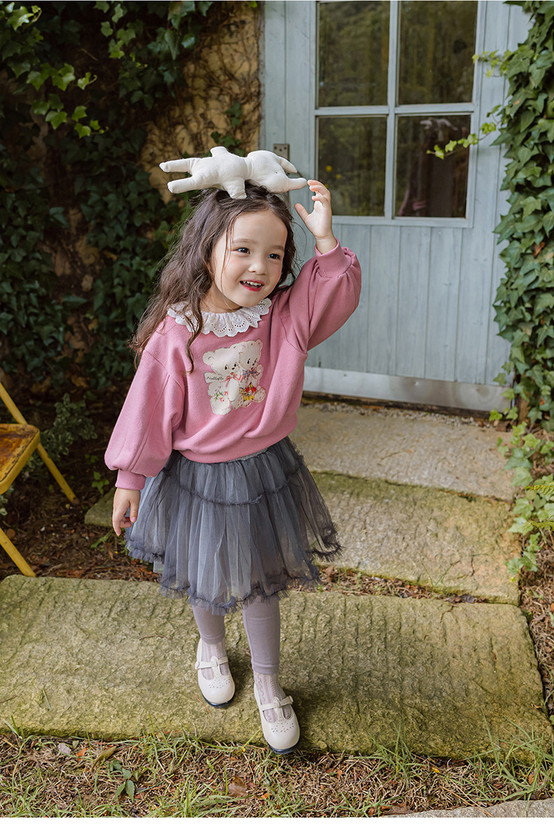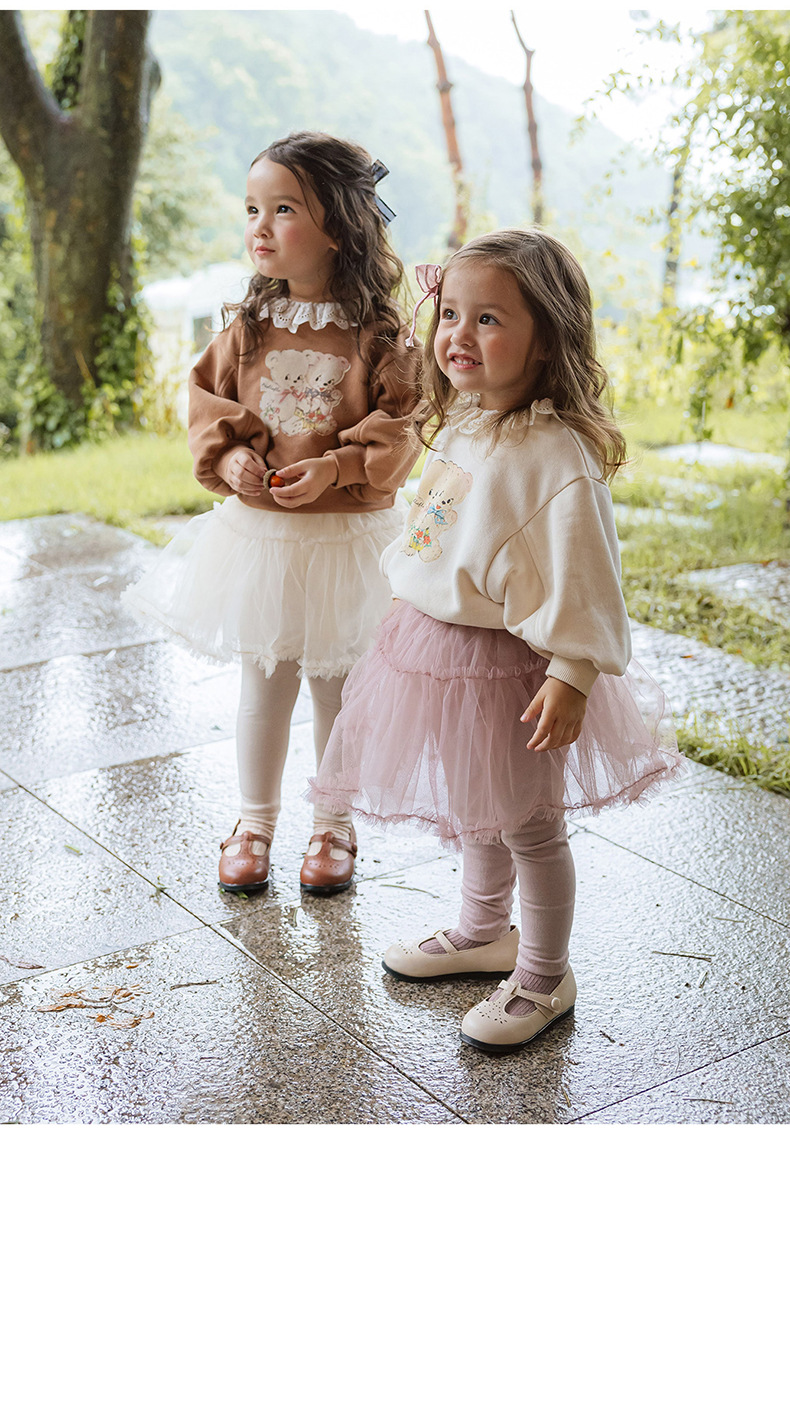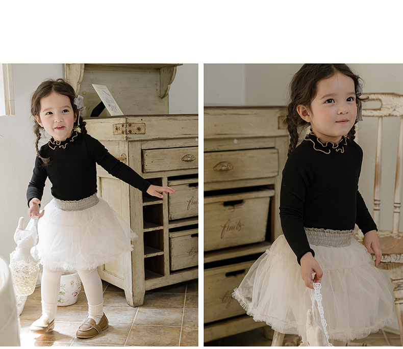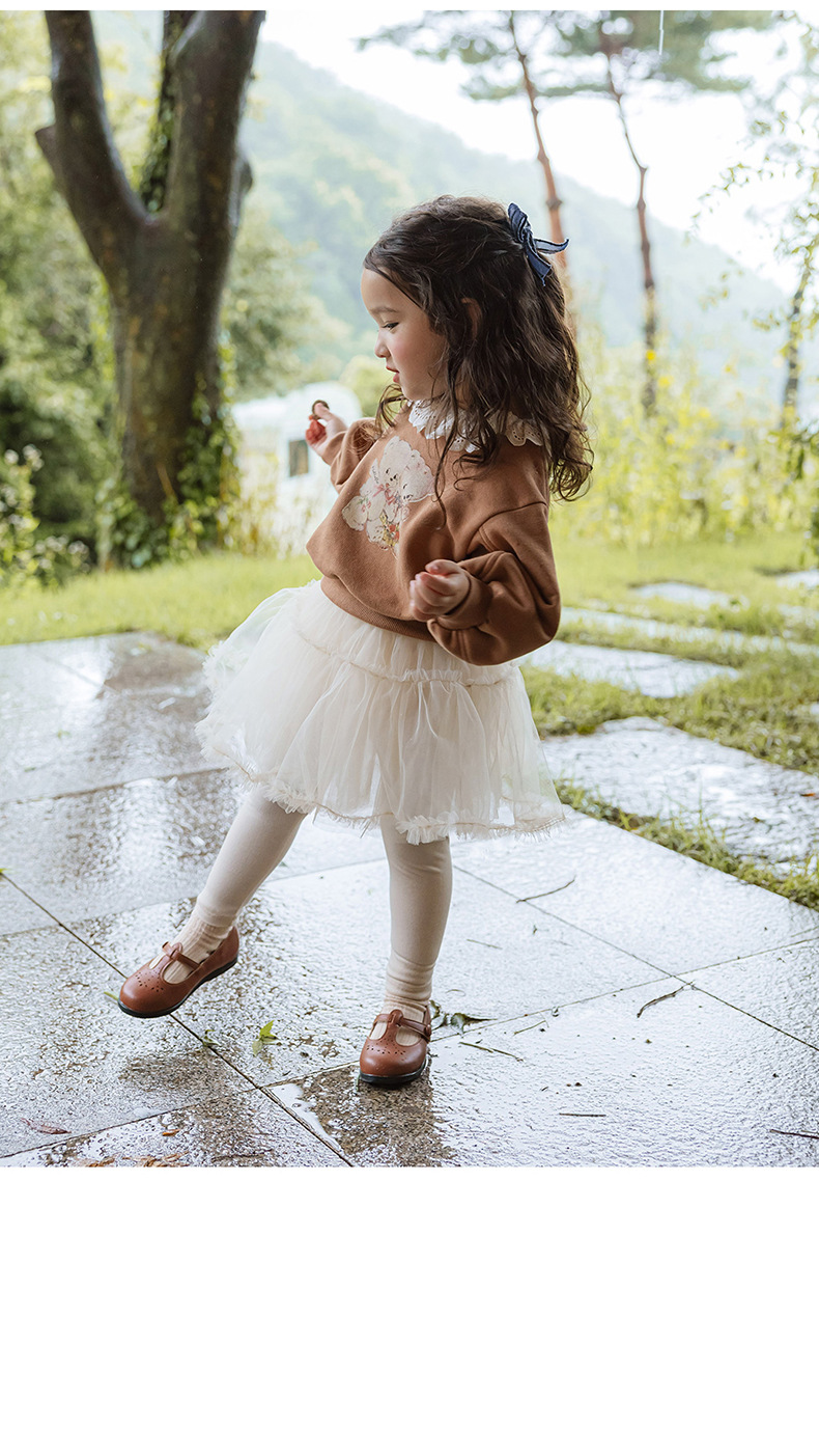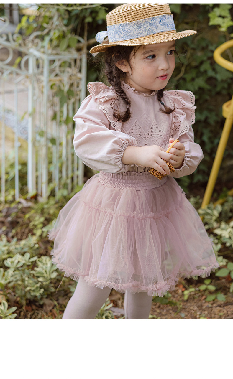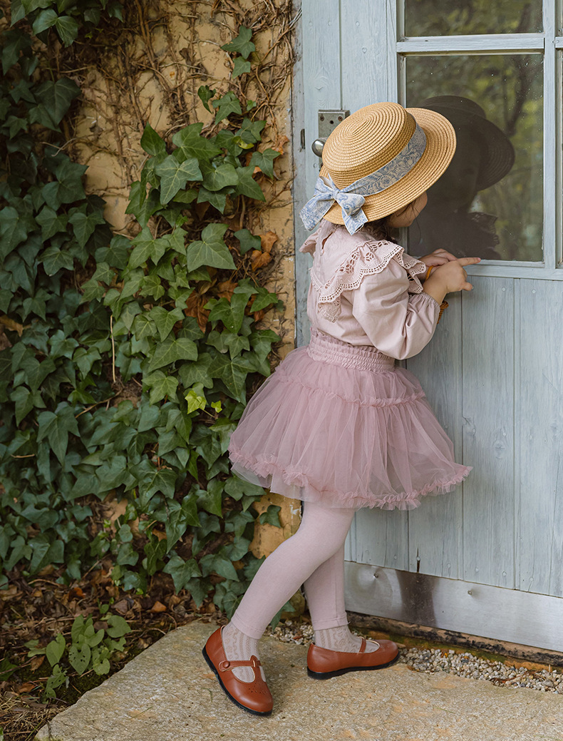 華やかなチュチュチュールスカートと動きやすいレギンスが一体になったスカートパンツが登場しました。ふんわりと広がる軽やかなチュールがバレリーナのような可憐な印象を演出し、内側のレギンスがアクティブな動きにも対応。ウエストはゴム仕様で、快適なフィット感とスムーズな着脱を実現しています。カジュアルにもガーリーにも合わせやすく、デイリーコーデからお出かけまで幅広く活躍する一枚です。