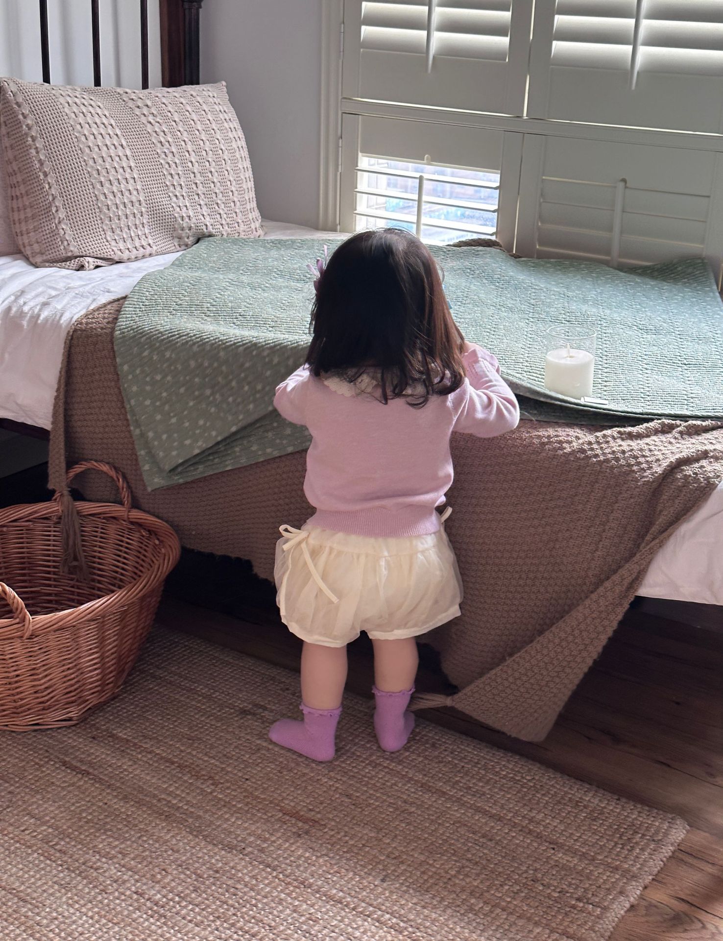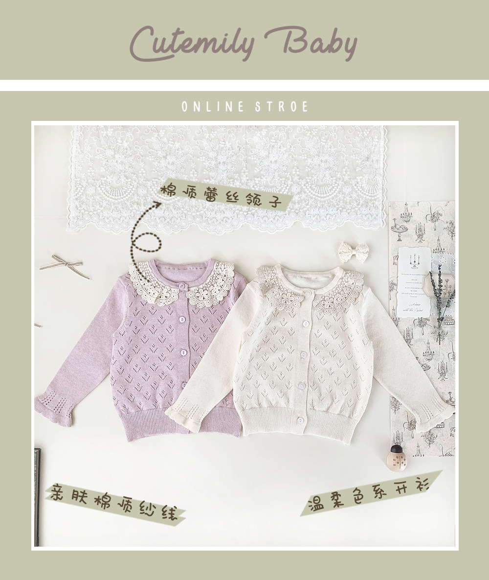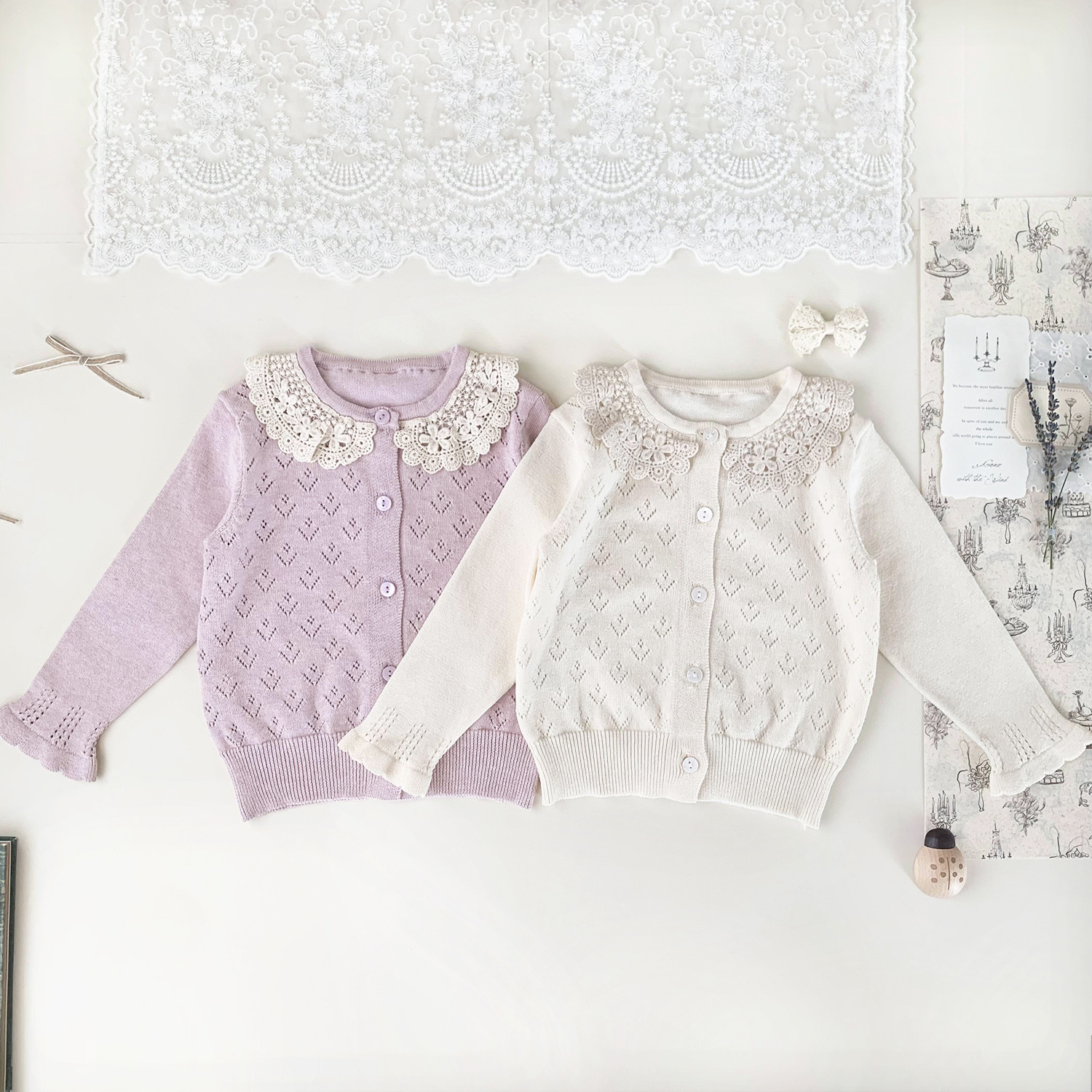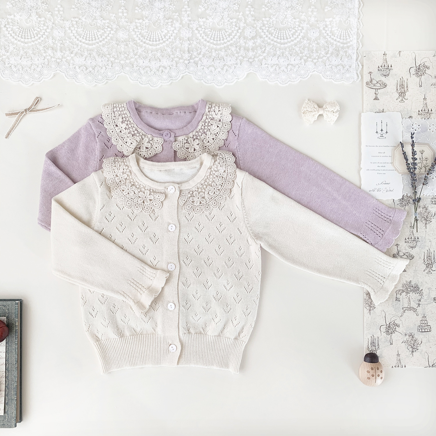 ベビーキッズカーディガン/パンツ レースニット長袖カーディガンジャケット/リボンショートバルーンパンツ【mh0009123】