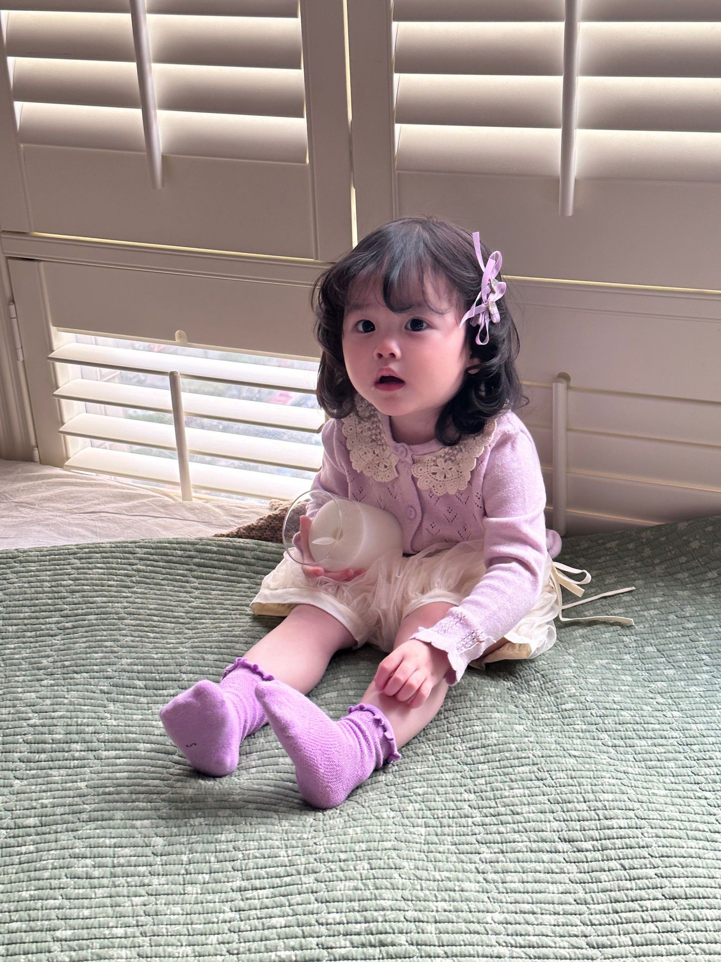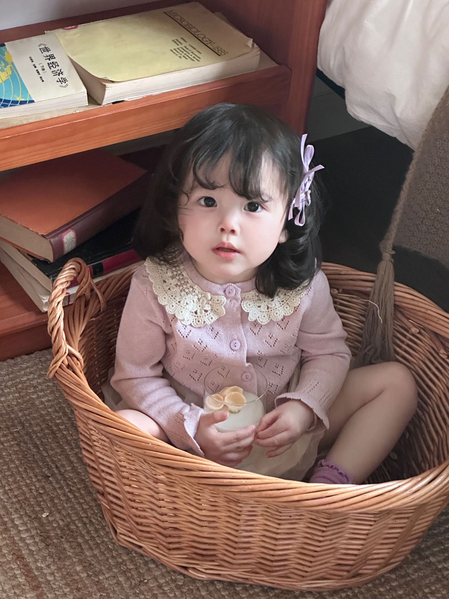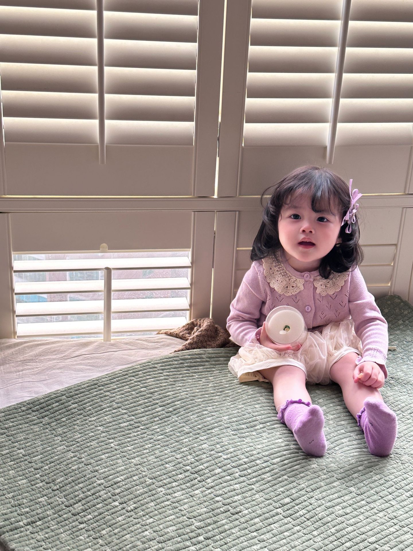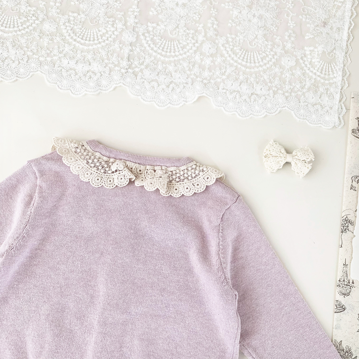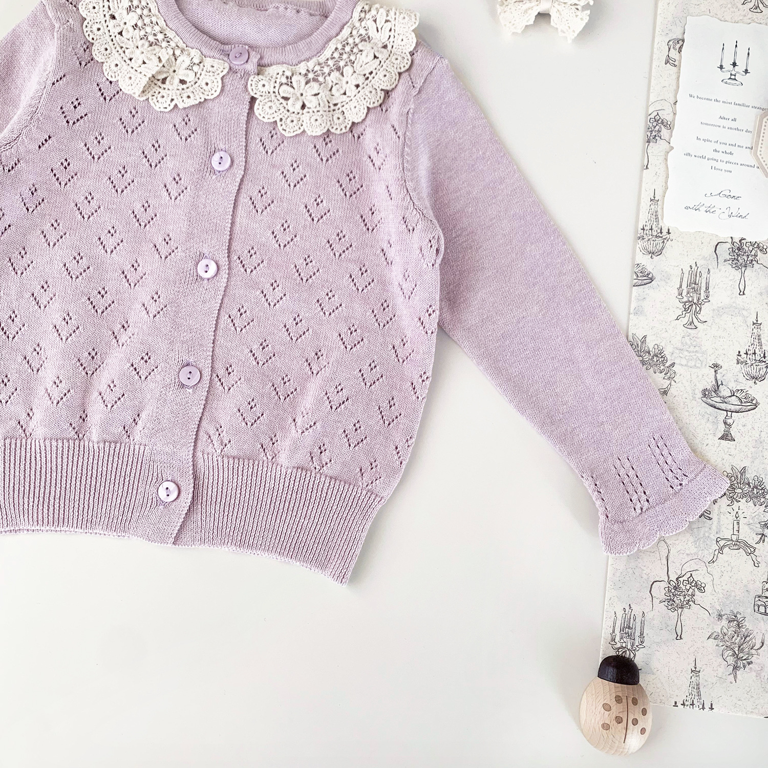 #ベビーキッズカーディガン #レースニット #長袖ジャケット #バルーンパンツ #リボンデザイン #おしゃれ子供服