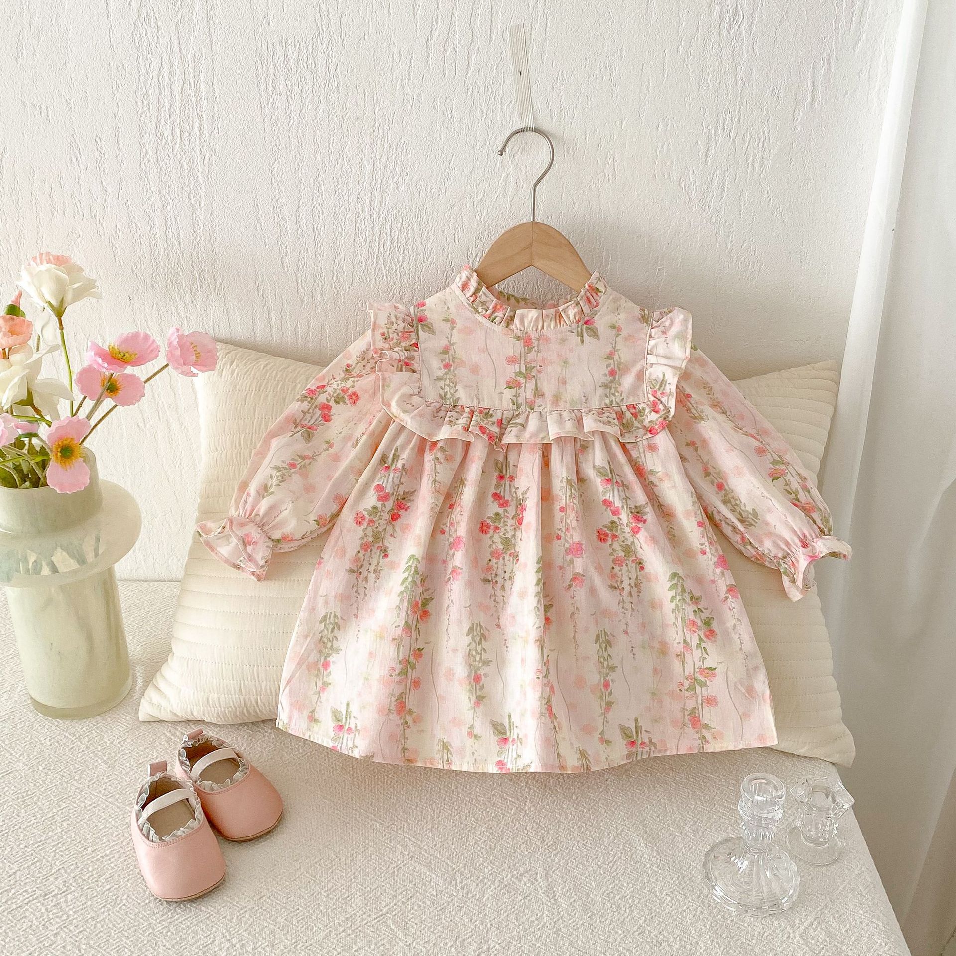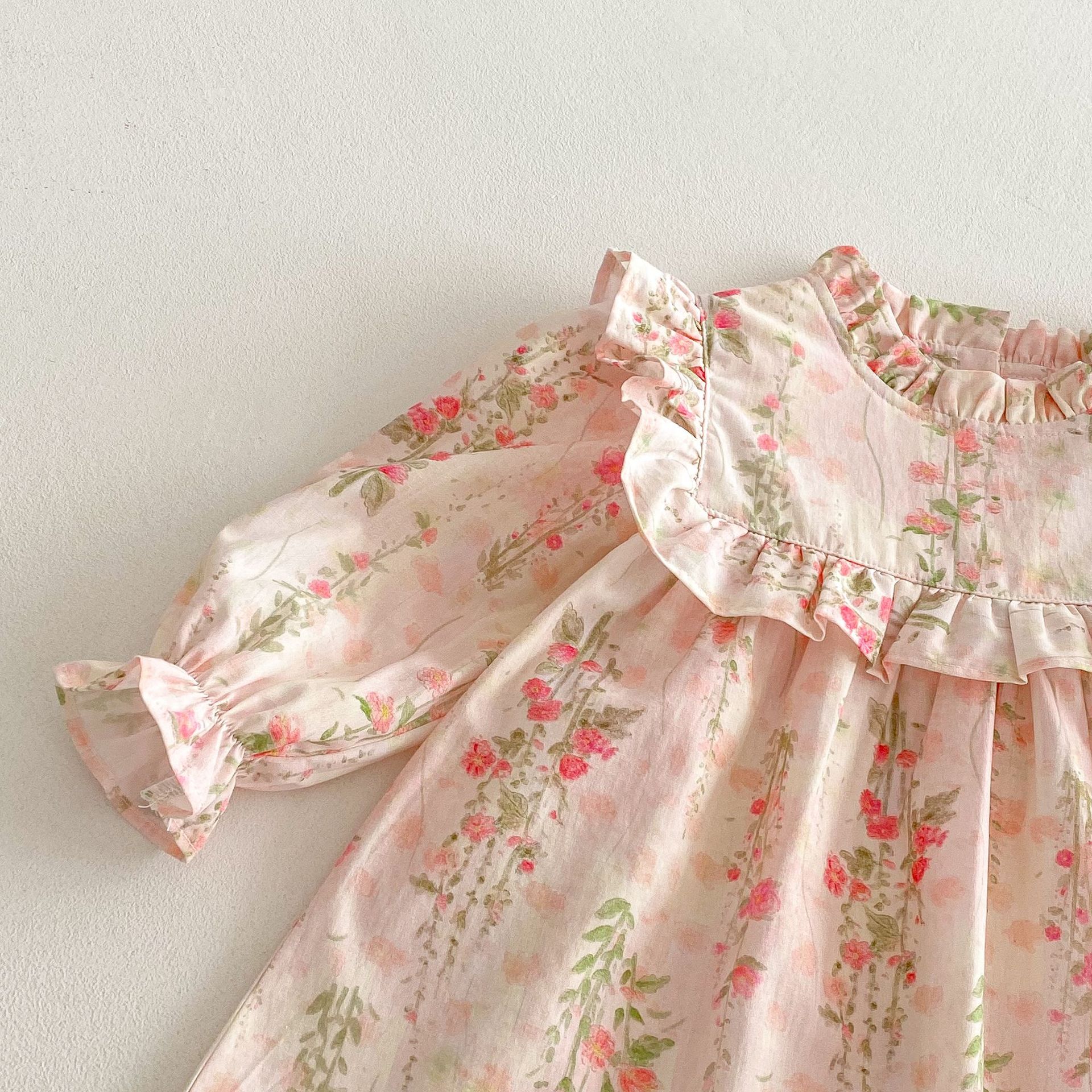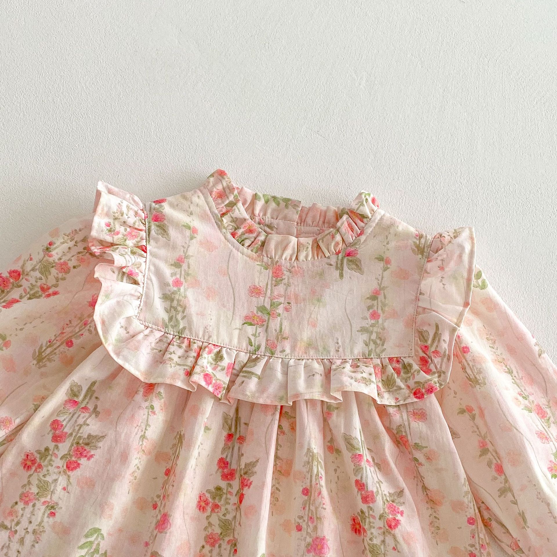 #キッズワンピース #花柄ワンピース #長袖ドレス #レースデザイン #プリンセスワンピース #子供服