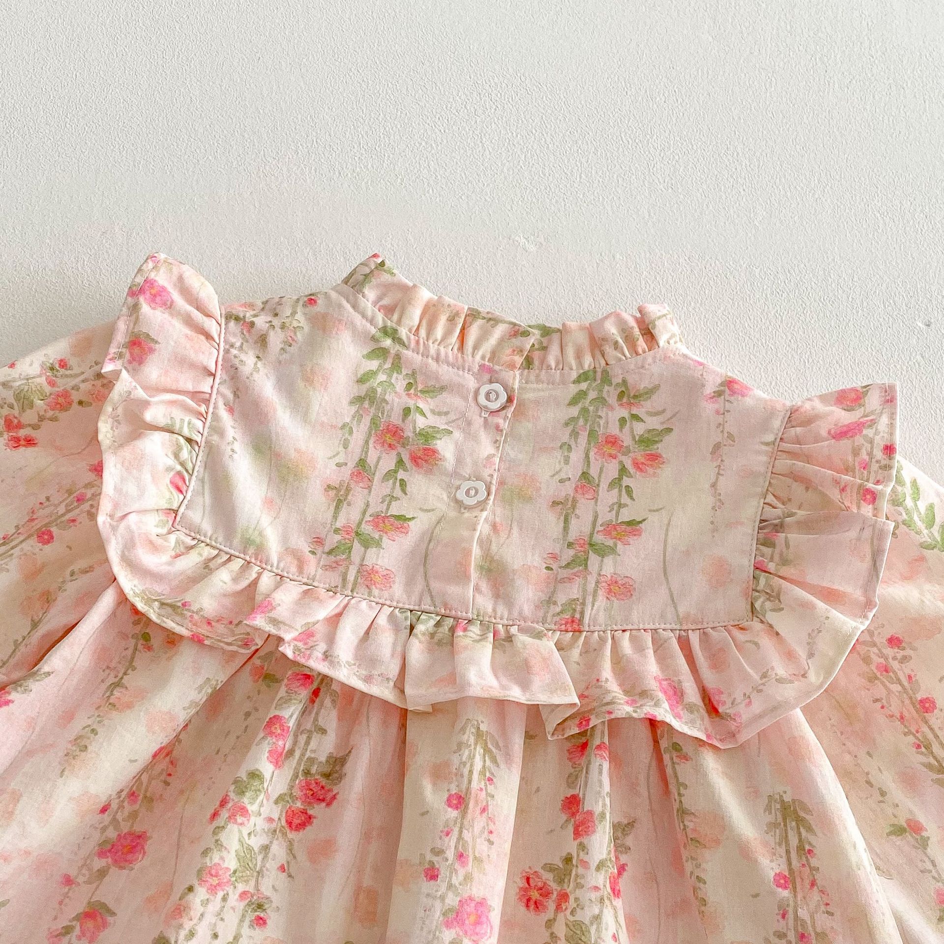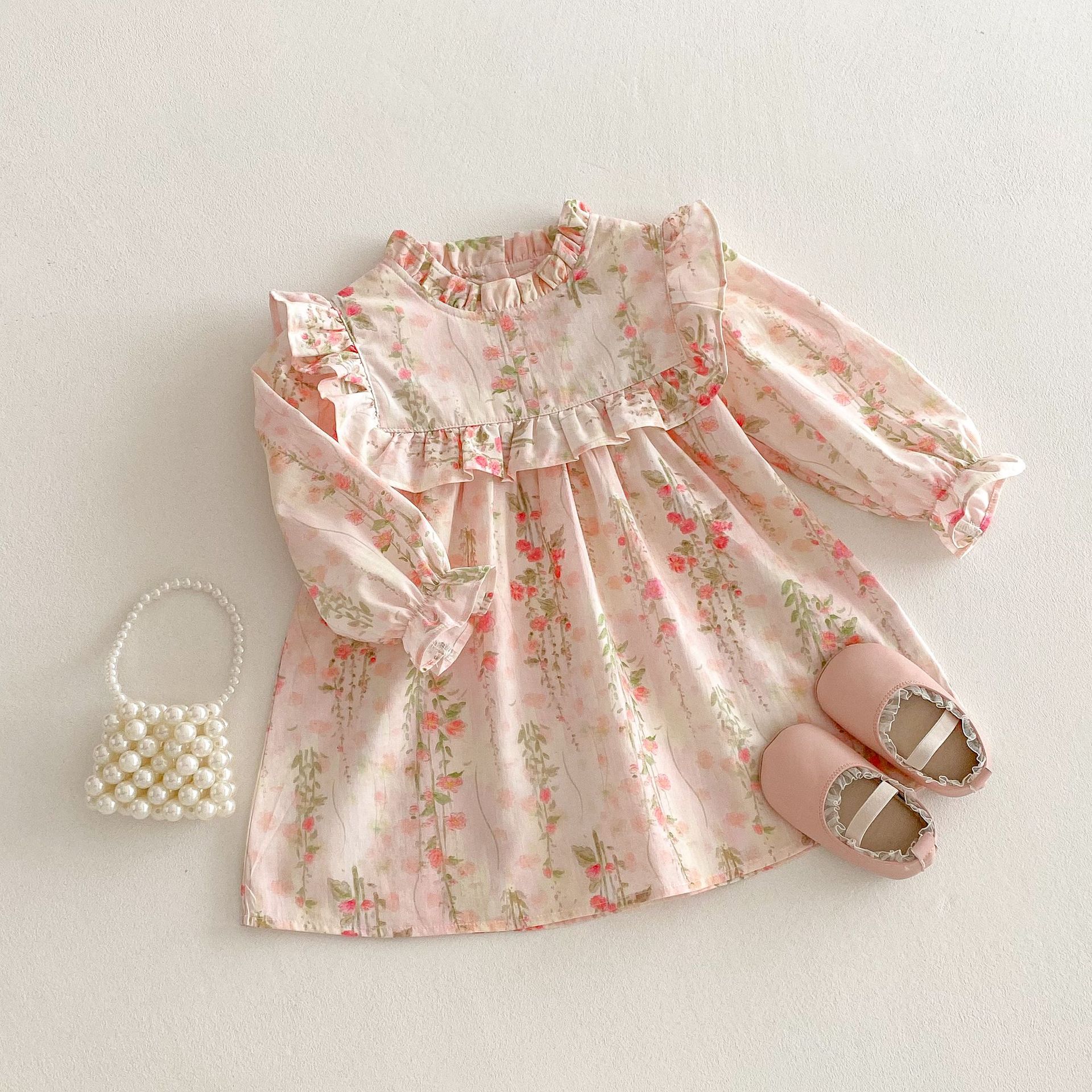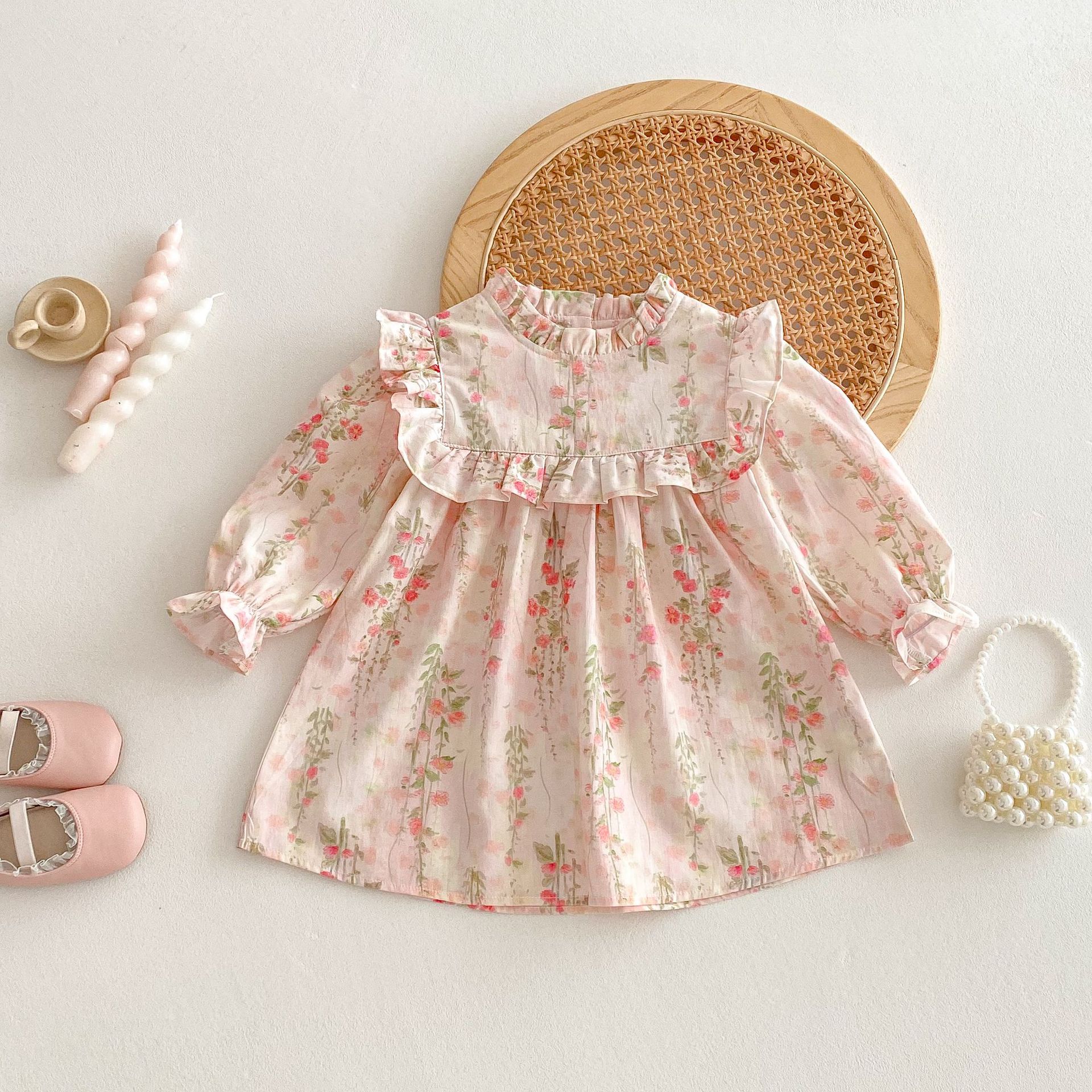 #キッズワンピース #花柄ワンピース #長袖ドレス #レースデザイン #プリンセスワンピース #子供服