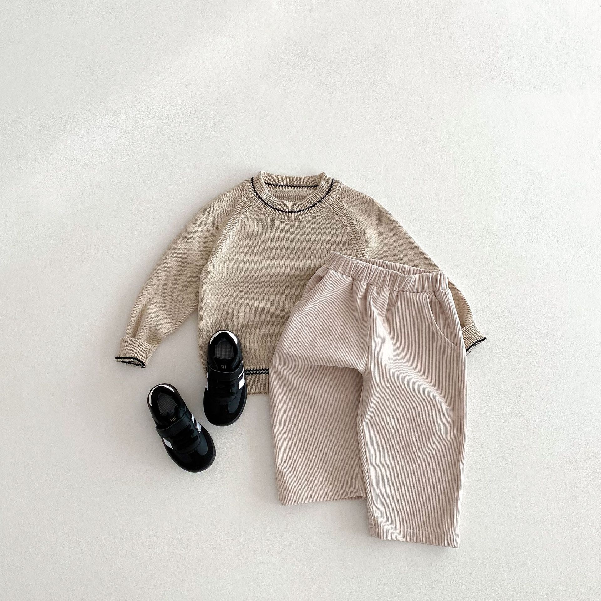 キッズセットアップ ステッチニットセータートップス/チロリアンコーデュロイオーバーオール【mh0009248】