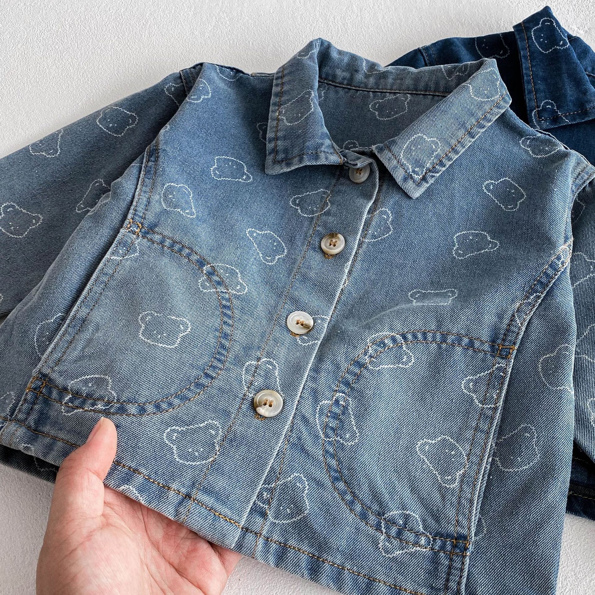 ファッショナブルなデニムジャケットで、かわいらしいカートゥーンベアのデザインがポイントです。男女兼用のスタイルで、どちらのお子さまにも似合うアイテムとなっています。柔らかなデニム生地を使用しており、軽やかな着心地で動きやすさも抜群です。カジュアルなコーディネートにぴったりで、Tシャツやシャツとの相性も良く、さまざまなスタイルに合わせやすい一着です。フロントには使いやすいポケットがあり、デイリーユースにも最適です。子供たちの個性を引き立てるおしゃれなジャケットです。
