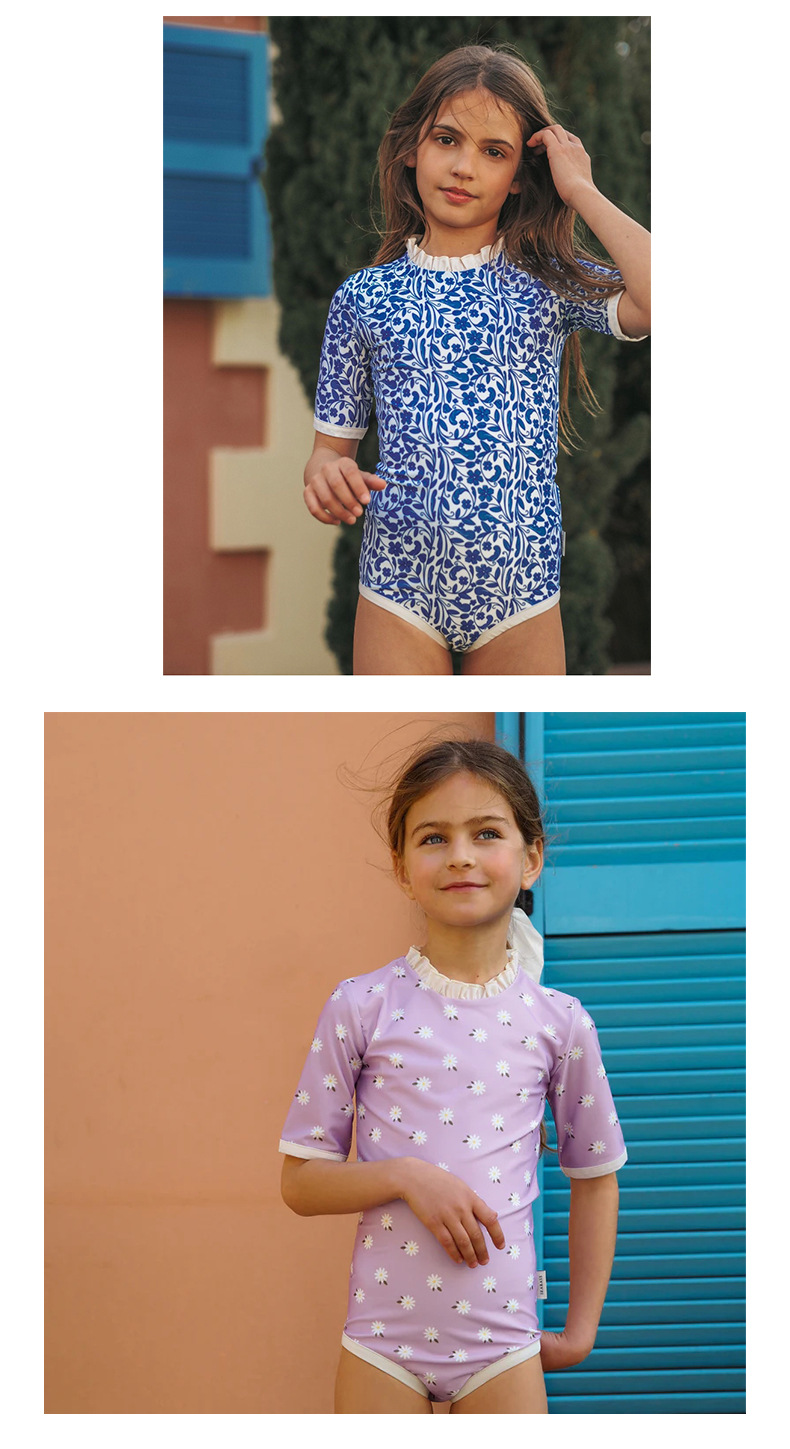 ガールズ水着 半袖ワンピーススイムウェア ラッシュガード【mh0009332】