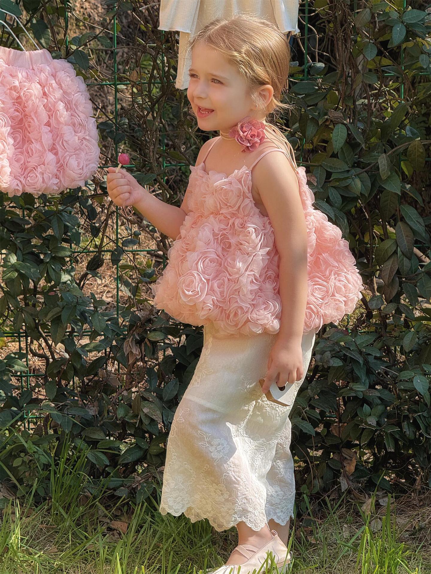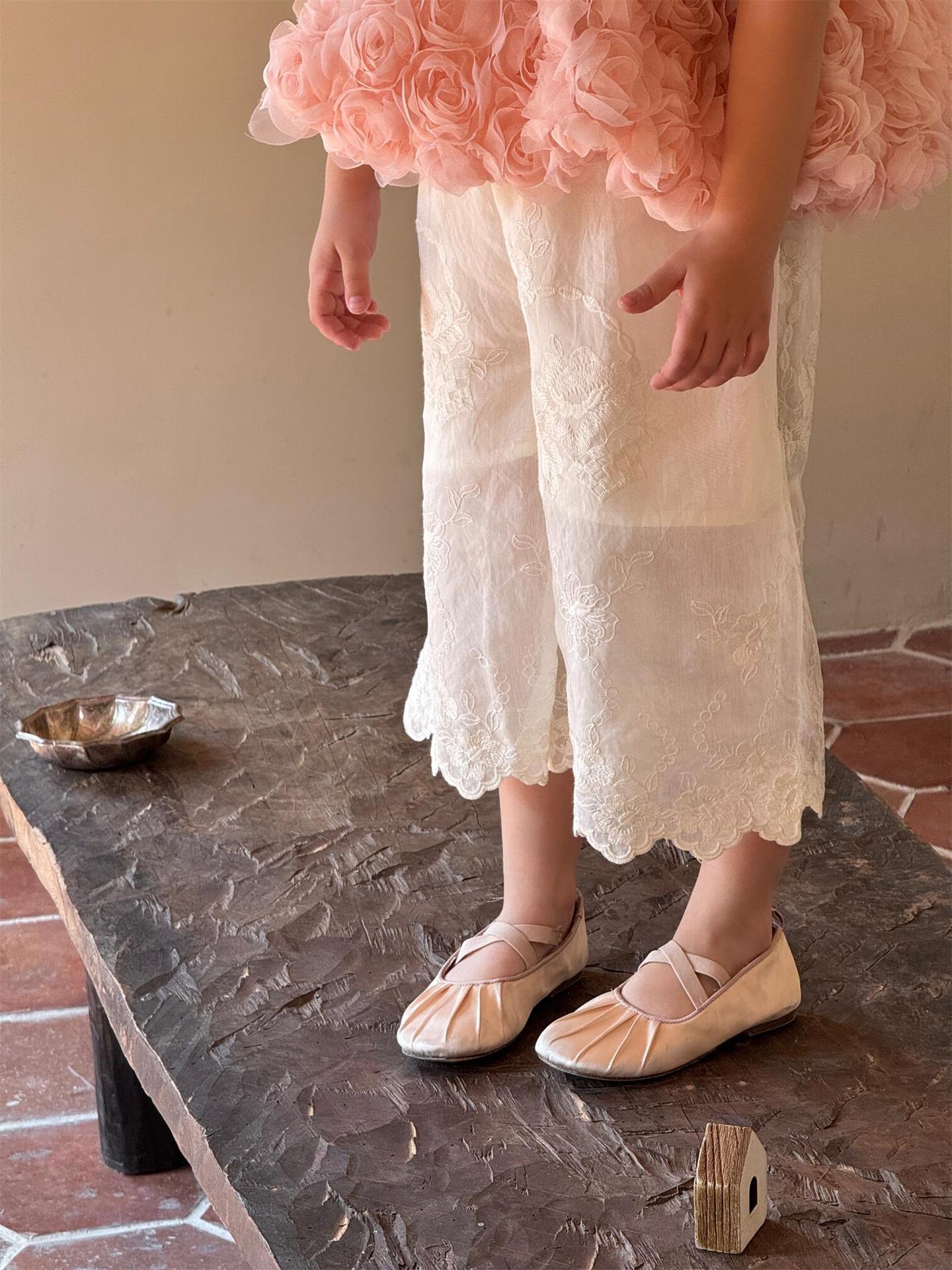 #キッズファッション #クロップドパンツ #刺繍レース #ワイドパンツ #夏服 #女の子