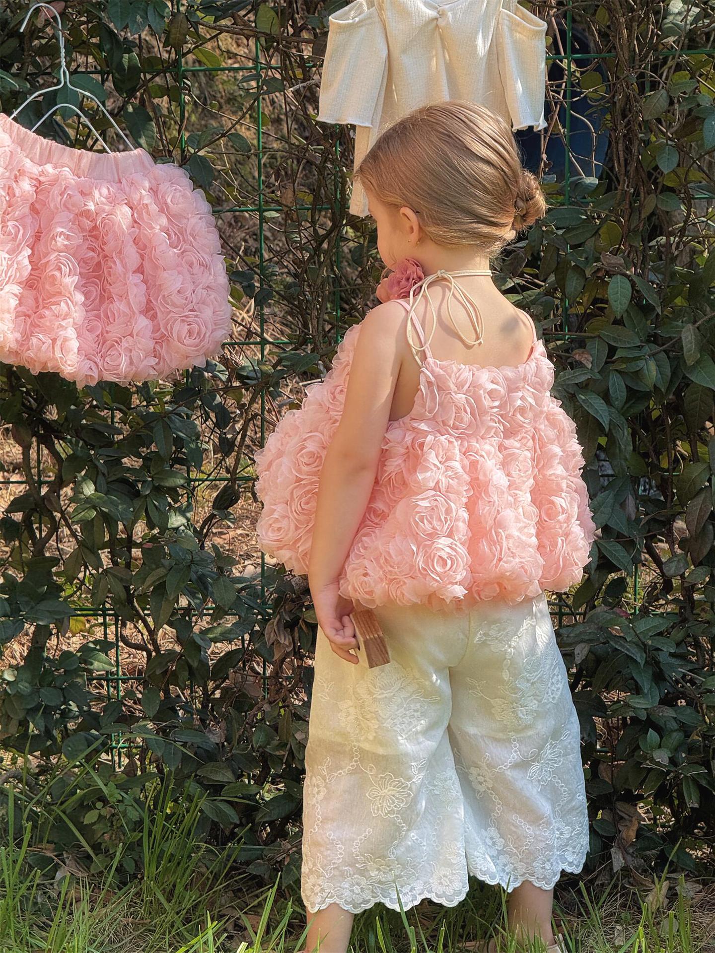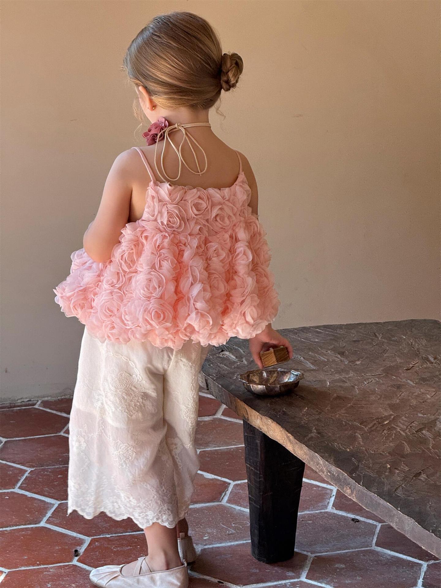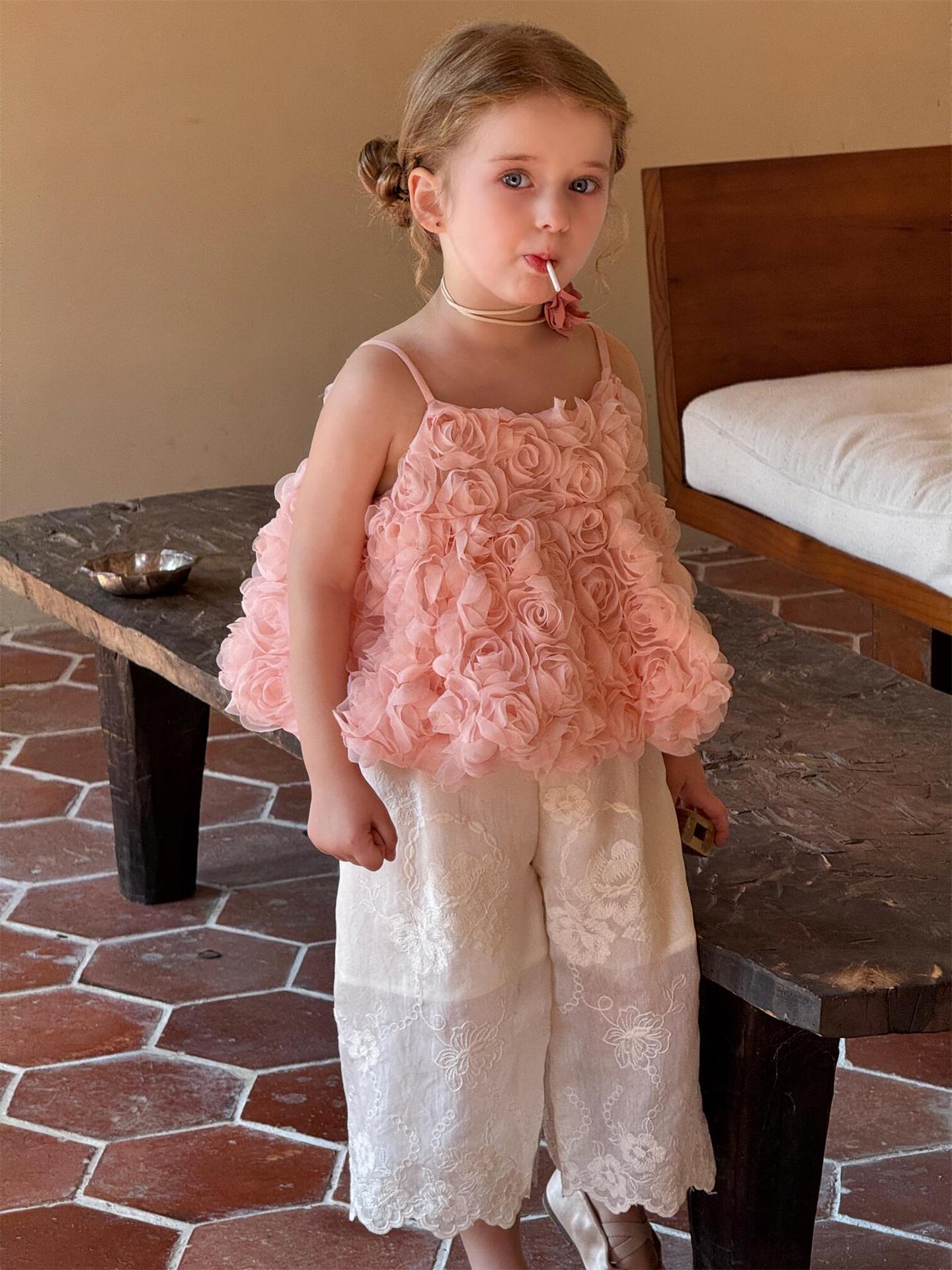 刺繍レースクロップドパンツは、夏の女の子のおしゃれにぴったりのアイテムです。
