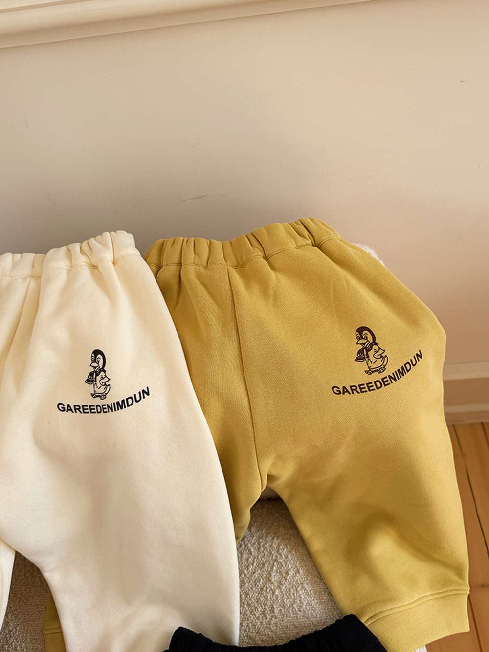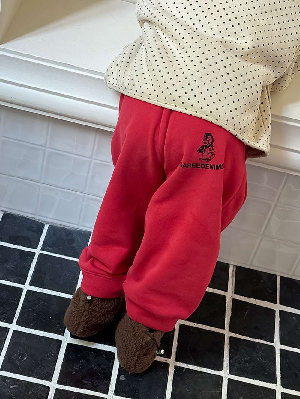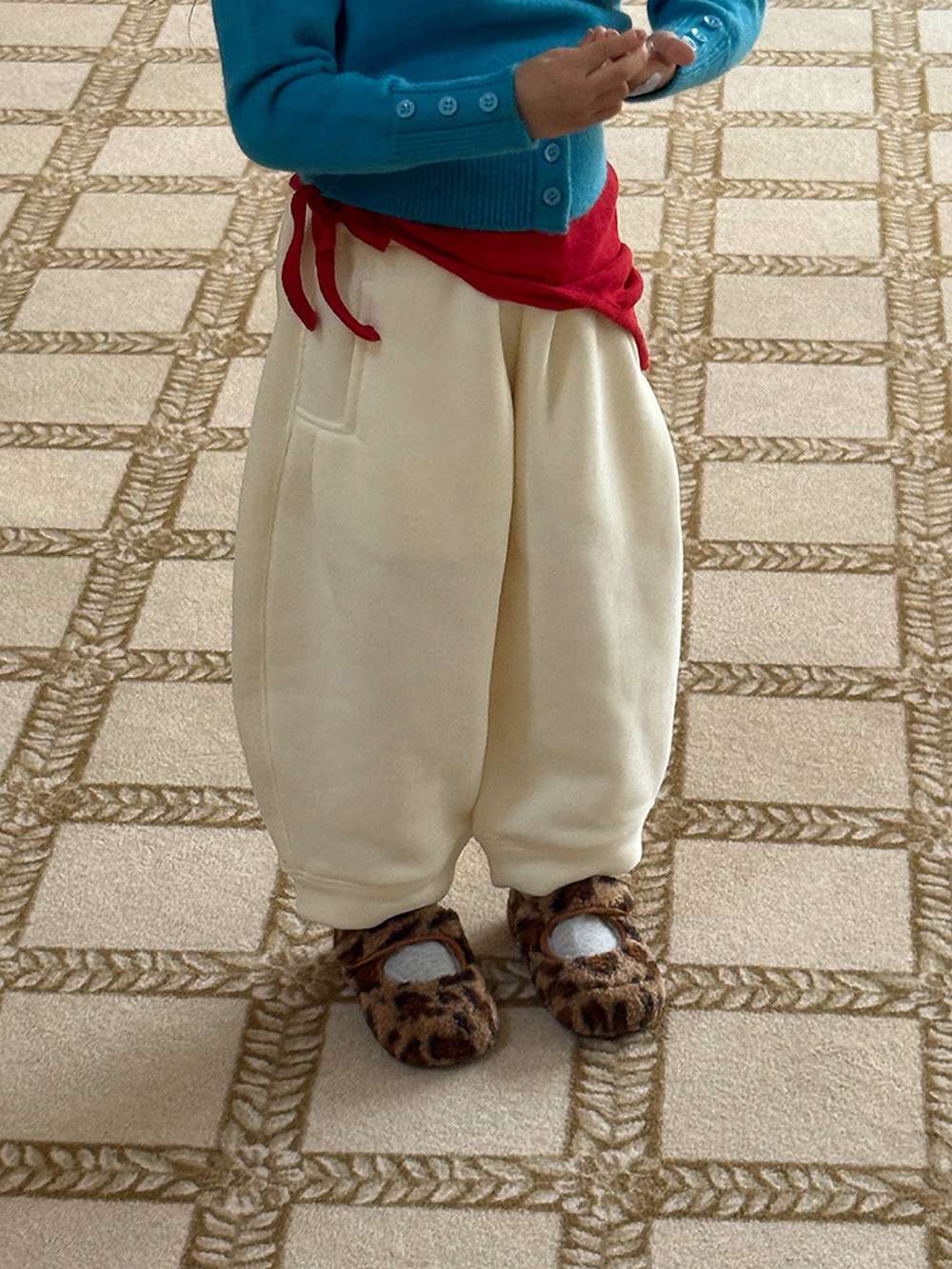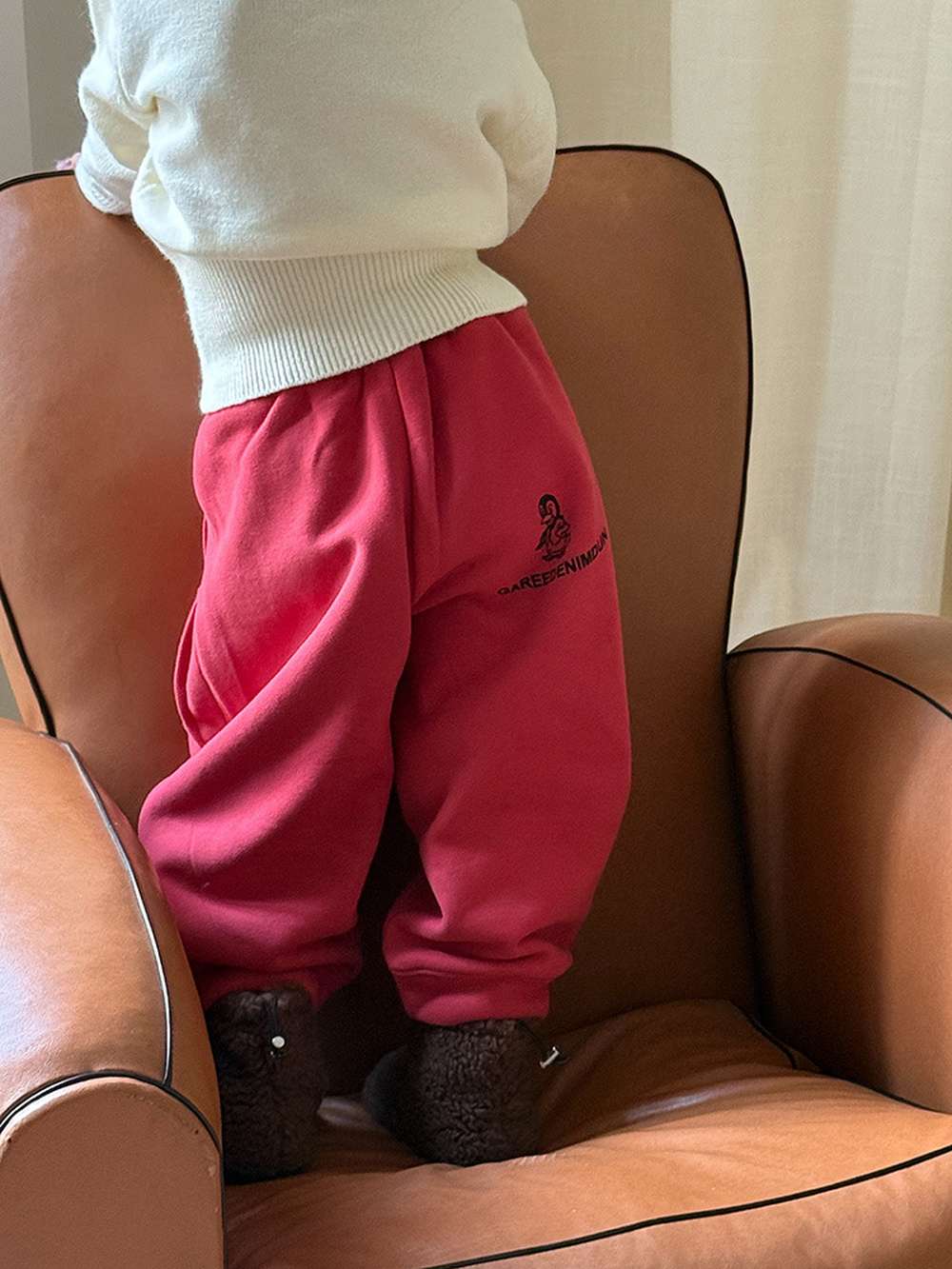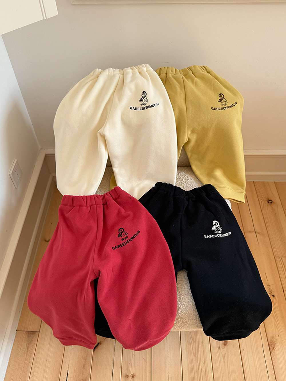 ゆったりとしたバルーンシルエットが魅力的なスウェットパンツは、デイリーに活躍する子ども服のボトムスです。肌触りの良い裏起毛素材を使用しているため、肌寒い日も暖かく快適に過ごせます。プリントされたカートゥーン柄が遊び心を添え、カジュアルながらもおしゃれなキッズスタイルを完成させるゆるワイドパンツです。