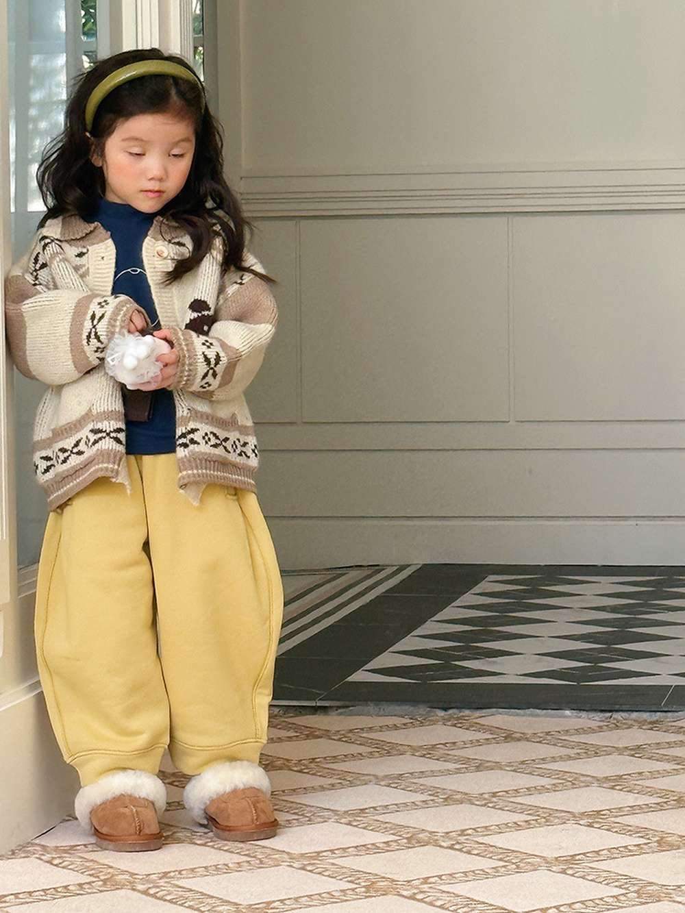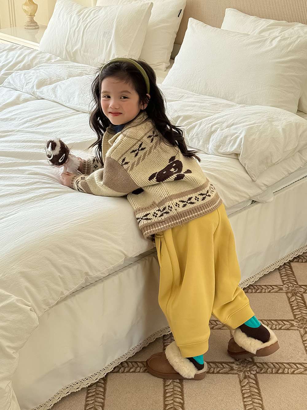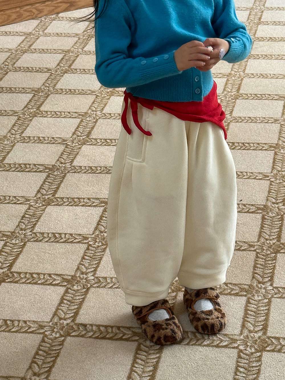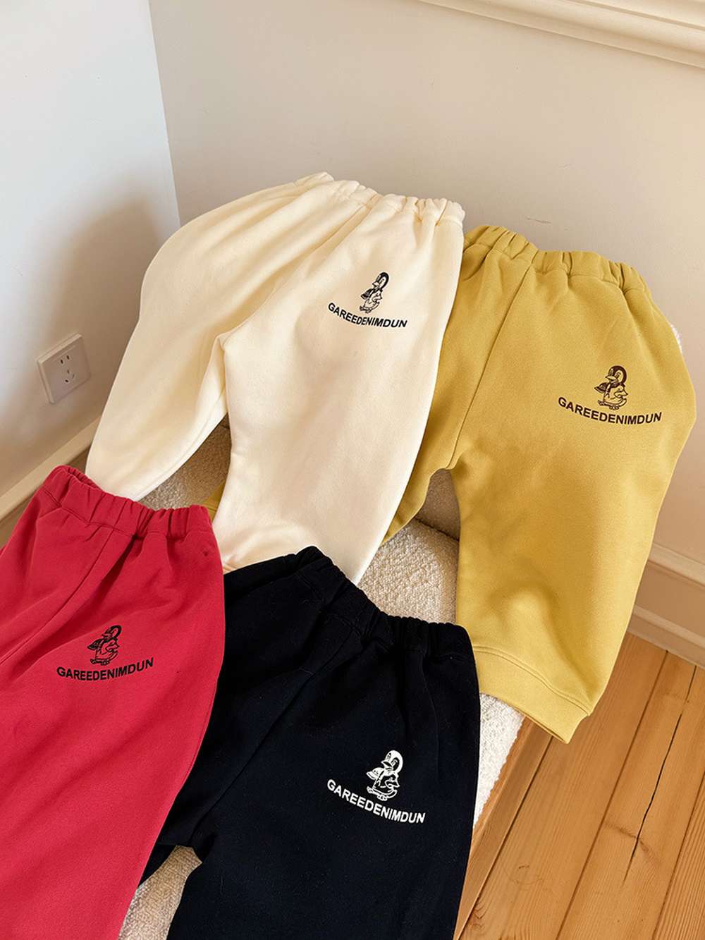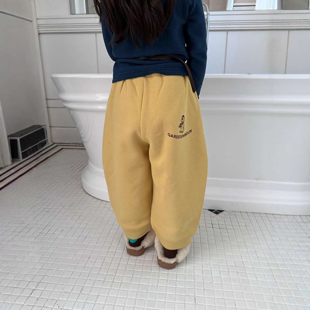 ゆったりとしたバルーンシルエットが魅力的なスウェットパンツは、デイリーに活躍する子ども服のボトムスです。肌触りの良い裏起毛素材を使用しているため、肌寒い日も暖かく快適に過ごせます。プリントされたカートゥーン柄が遊び心を添え、カジュアルながらもおしゃれなキッズスタイルを完成させるゆるワイドパンツです。