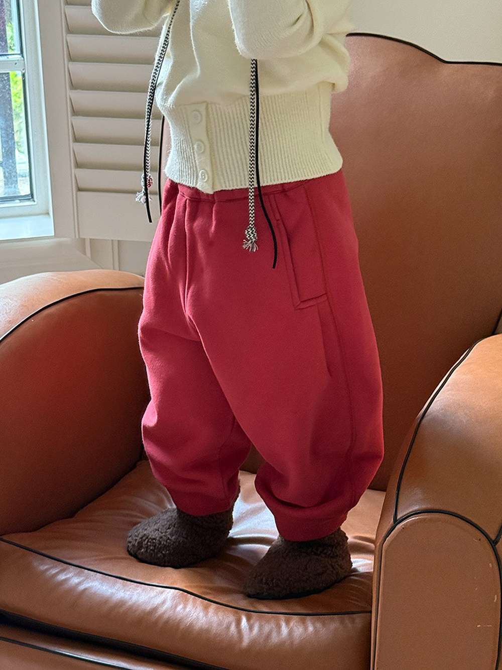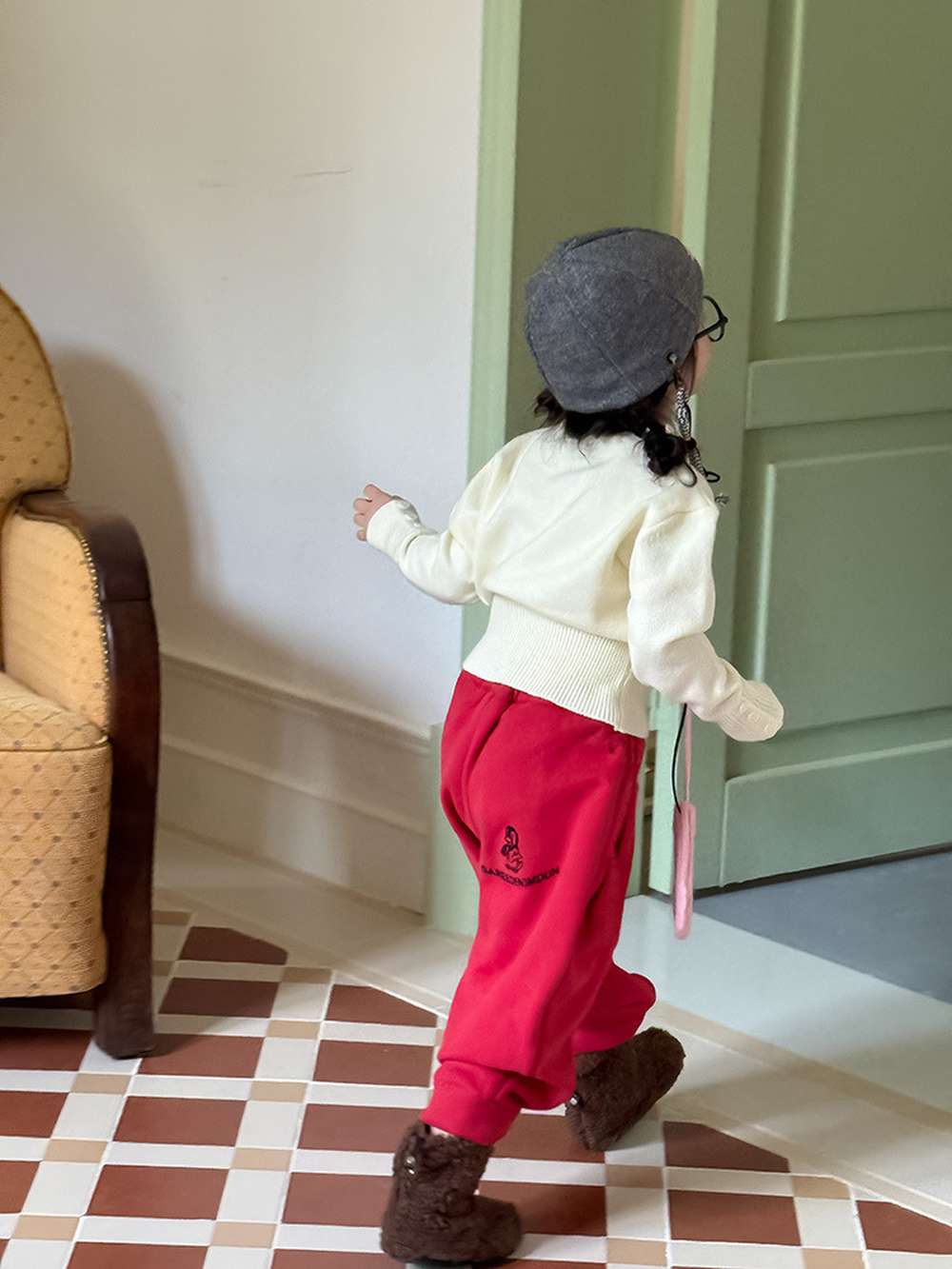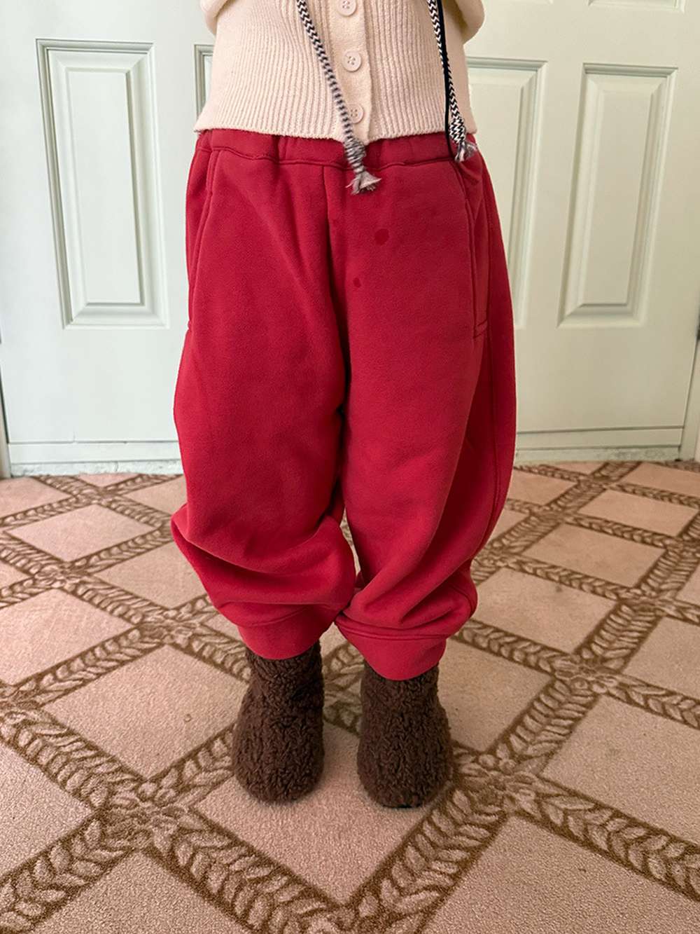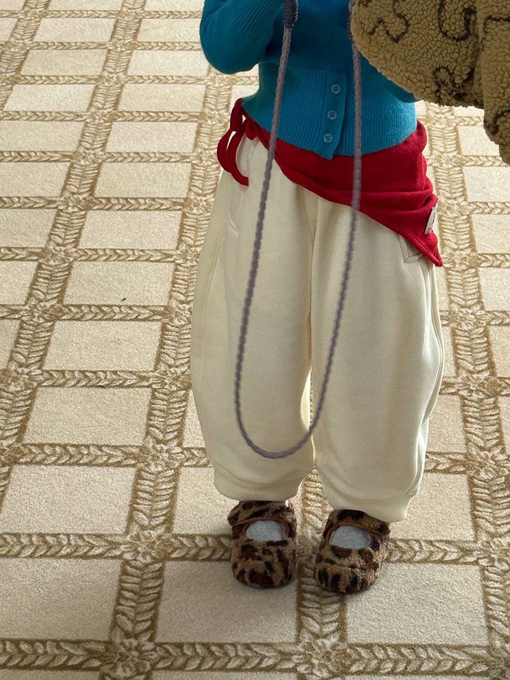 ゆったりとしたバルーンシルエットが魅力的なスウェットパンツは、デイリーに活躍する子ども服のボトムスです。肌触りの良い裏起毛素材を使用しているため、肌寒い日も暖かく快適に過ごせます。プリントされたカートゥーン柄が遊び心を添え、カジュアルながらもおしゃれなキッズスタイルを完成させるゆるワイドパンツです。