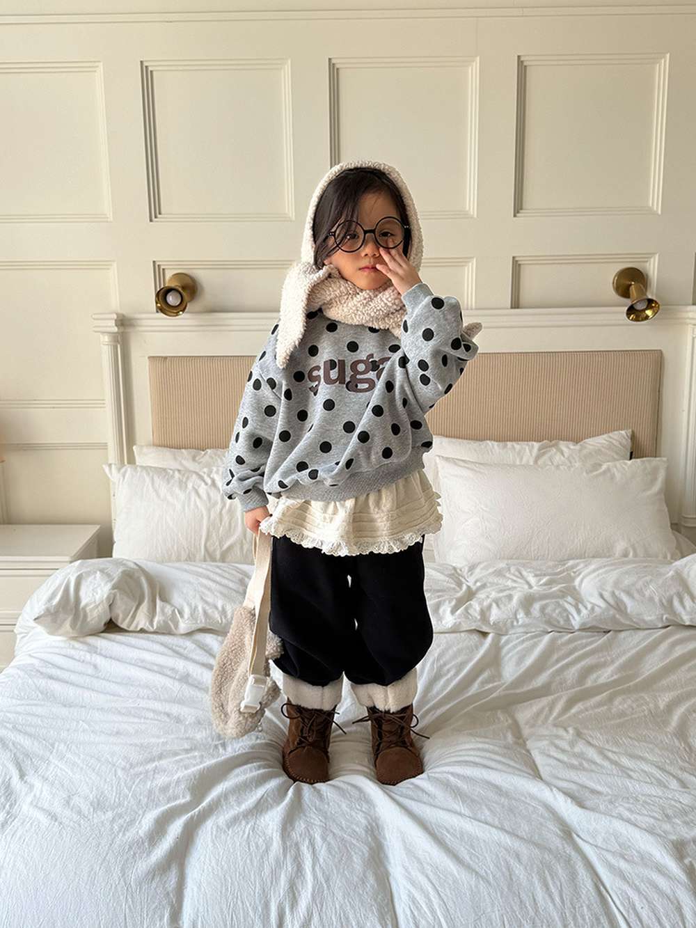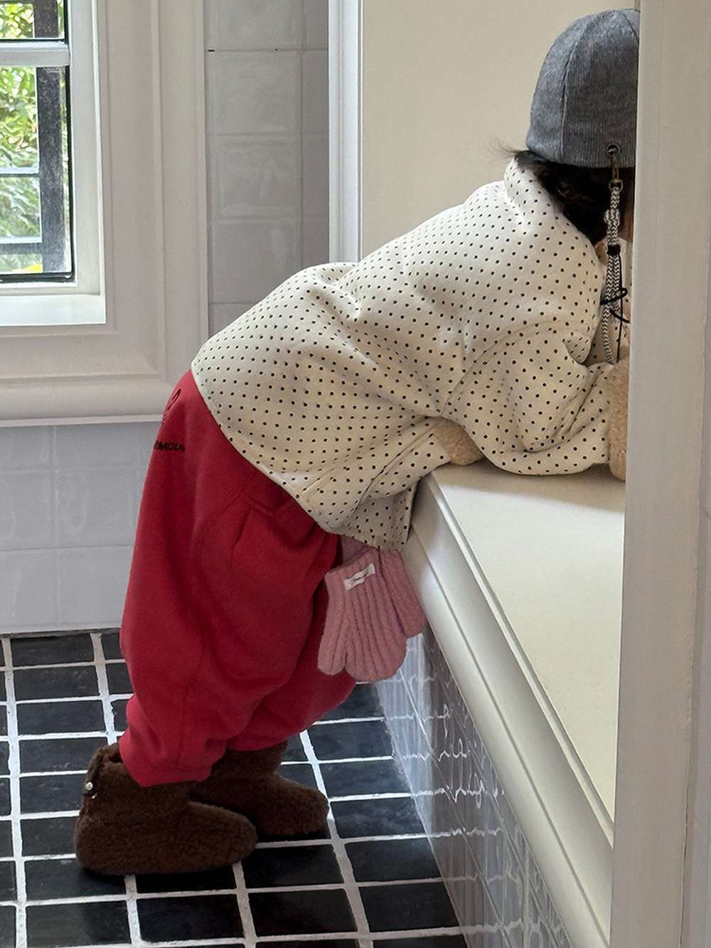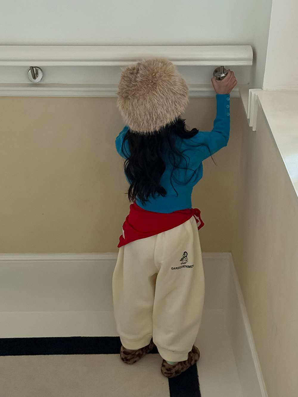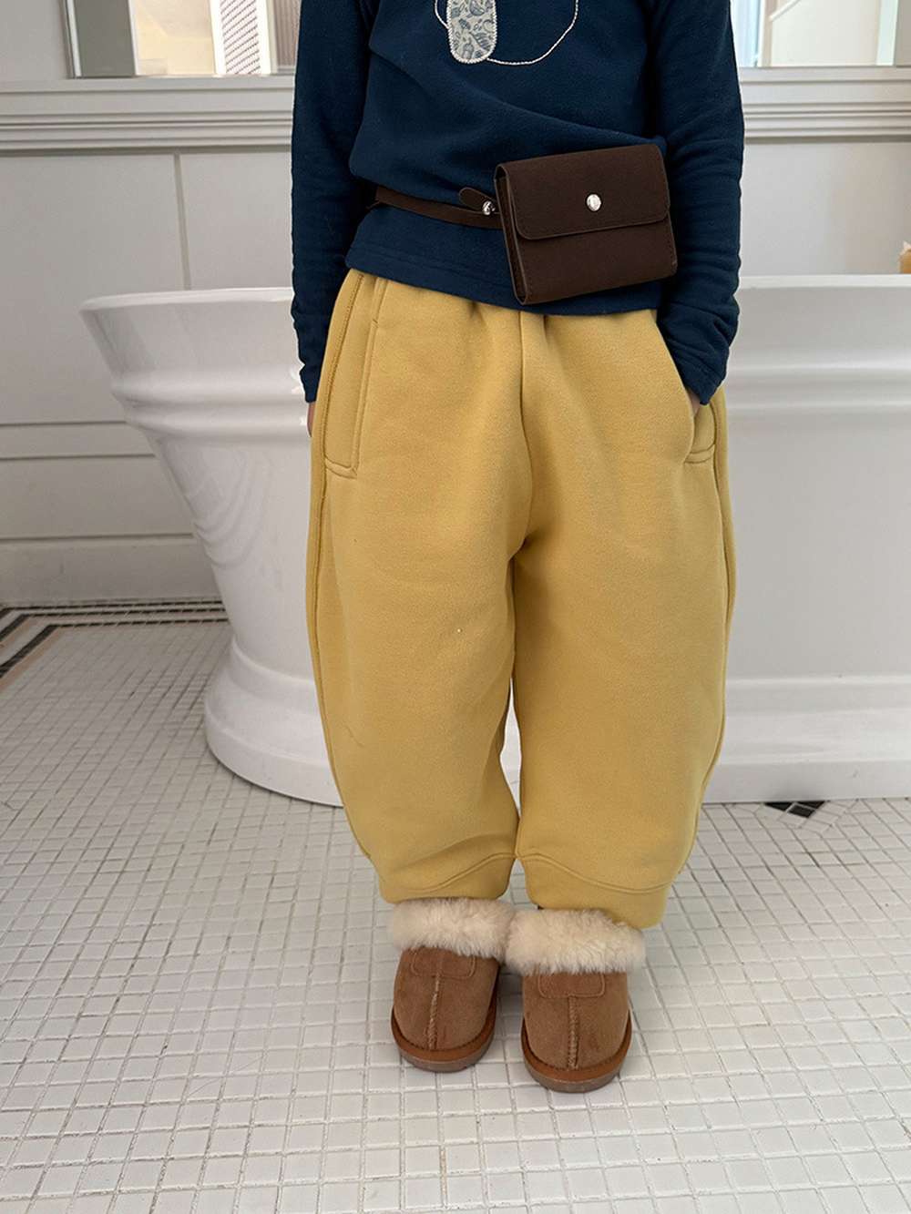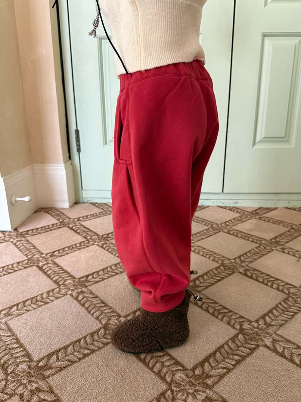 ゆったりとしたバルーンシルエットが魅力的なスウェットパンツは、デイリーに活躍する子ども服のボトムスです。肌触りの良い裏起毛素材を使用しているため、肌寒い日も暖かく快適に過ごせます。プリントされたカートゥーン柄が遊び心を添え、カジュアルながらもおしゃれなキッズスタイルを完成させるゆるワイドパンツです。