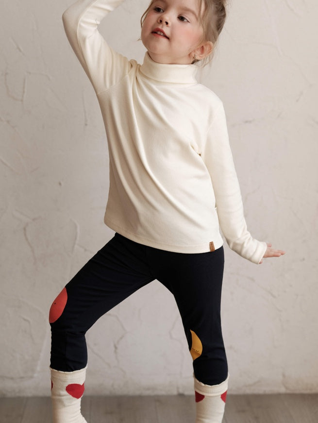 遊び心のある太陽と月のプリントが魅力的なキッズ用レギンスは、コーディネートの主役になるストレッチボトムスです。伸縮性に優れた生地が、元気いっぱいに動き回る子どもの動作を妨げず、快適な履き心地を提供します。カジュアルな子ども服として、ワンピースやチュニックとのレイヤードスタイルにもぴったりなアイテムです。