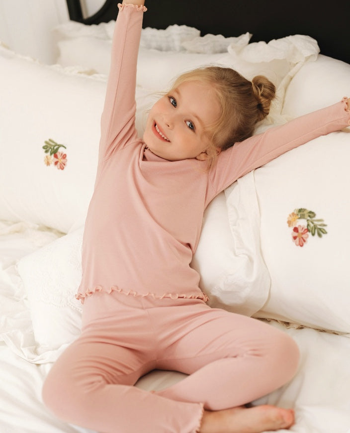 メリノウール キッズ パジャマ ラッフルカラー 長袖 トップス&パンツ くすみカラー【mh0011572】