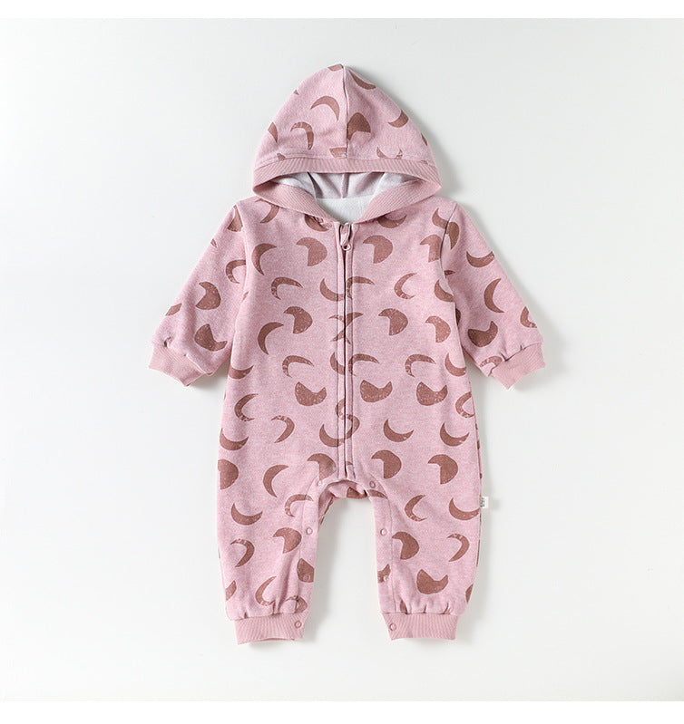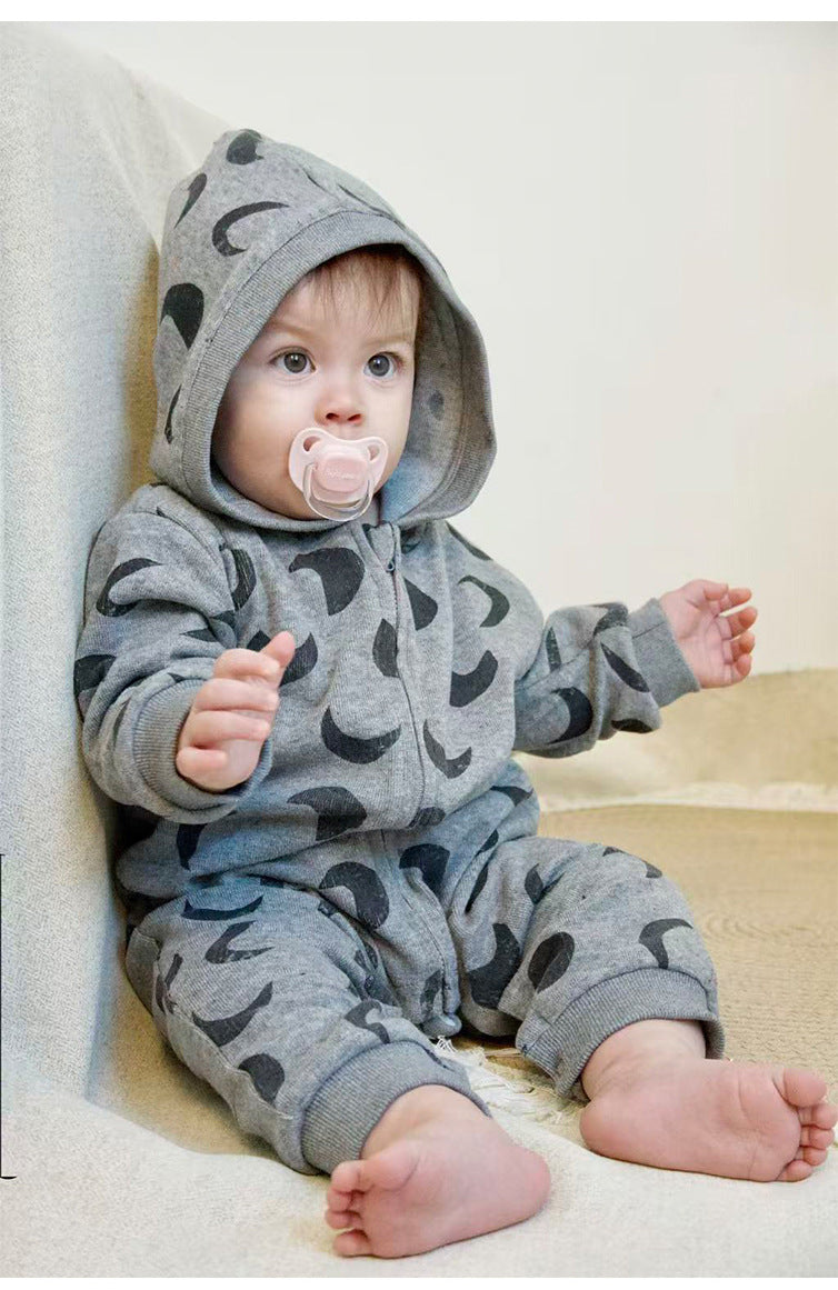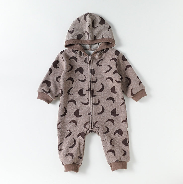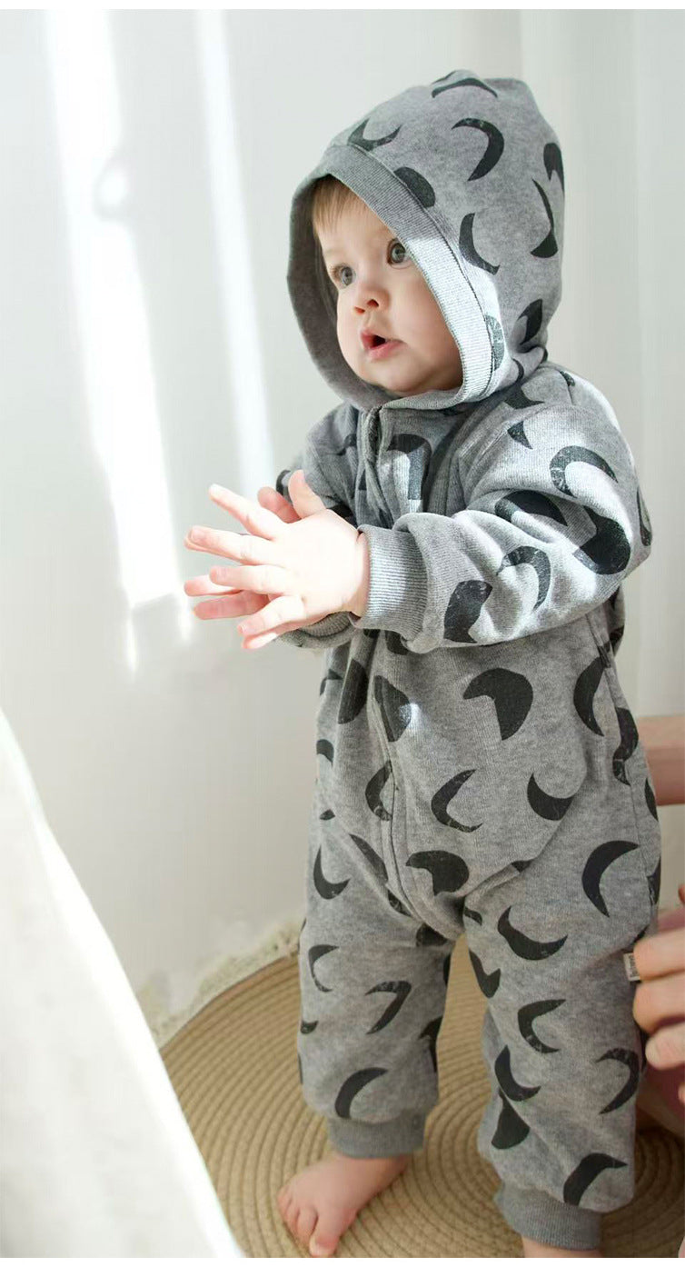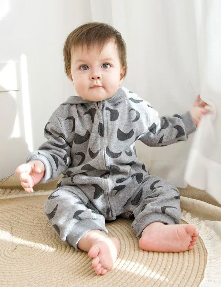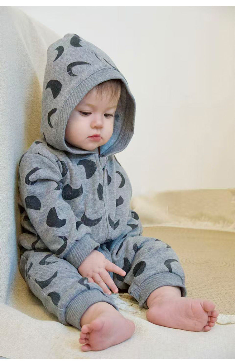 フード付きデザインがおしゃれな裏起毛のジャンプスーツ。薄手のベルベット素材がベビーを優しく包み込み、肌寒い季節のお出かけにぴったりな温かさを提供します。この長袖のロンパースは、北欧スタイルを取り入れたシンプルなデザインで、男の子にも女の子にも似合うベビー服。防寒着としても優秀なボディスーツは、ベビーの動きを妨げないクロールウェアとして、デイリーの装いに洗練された雰囲気をプラスします。