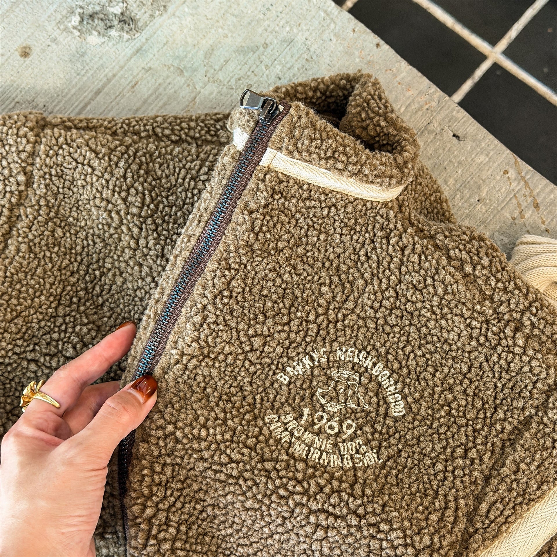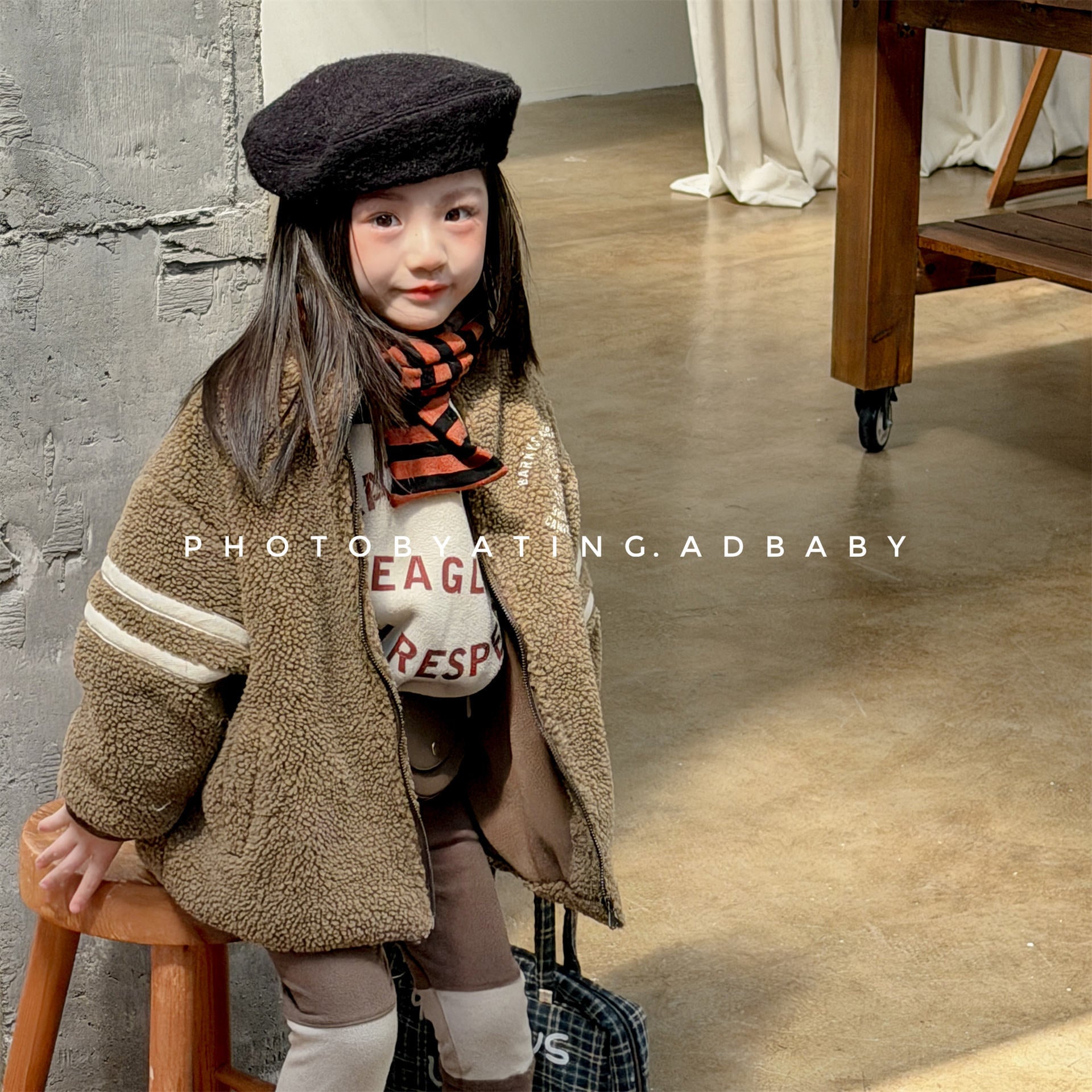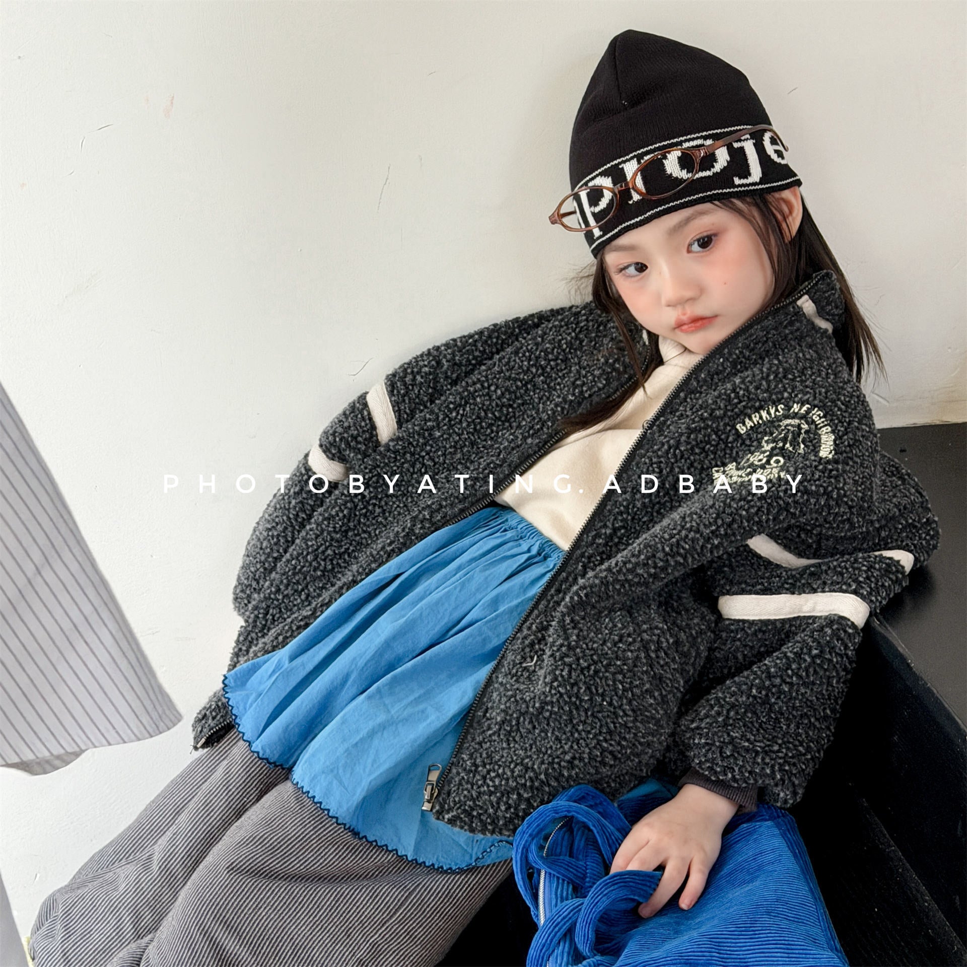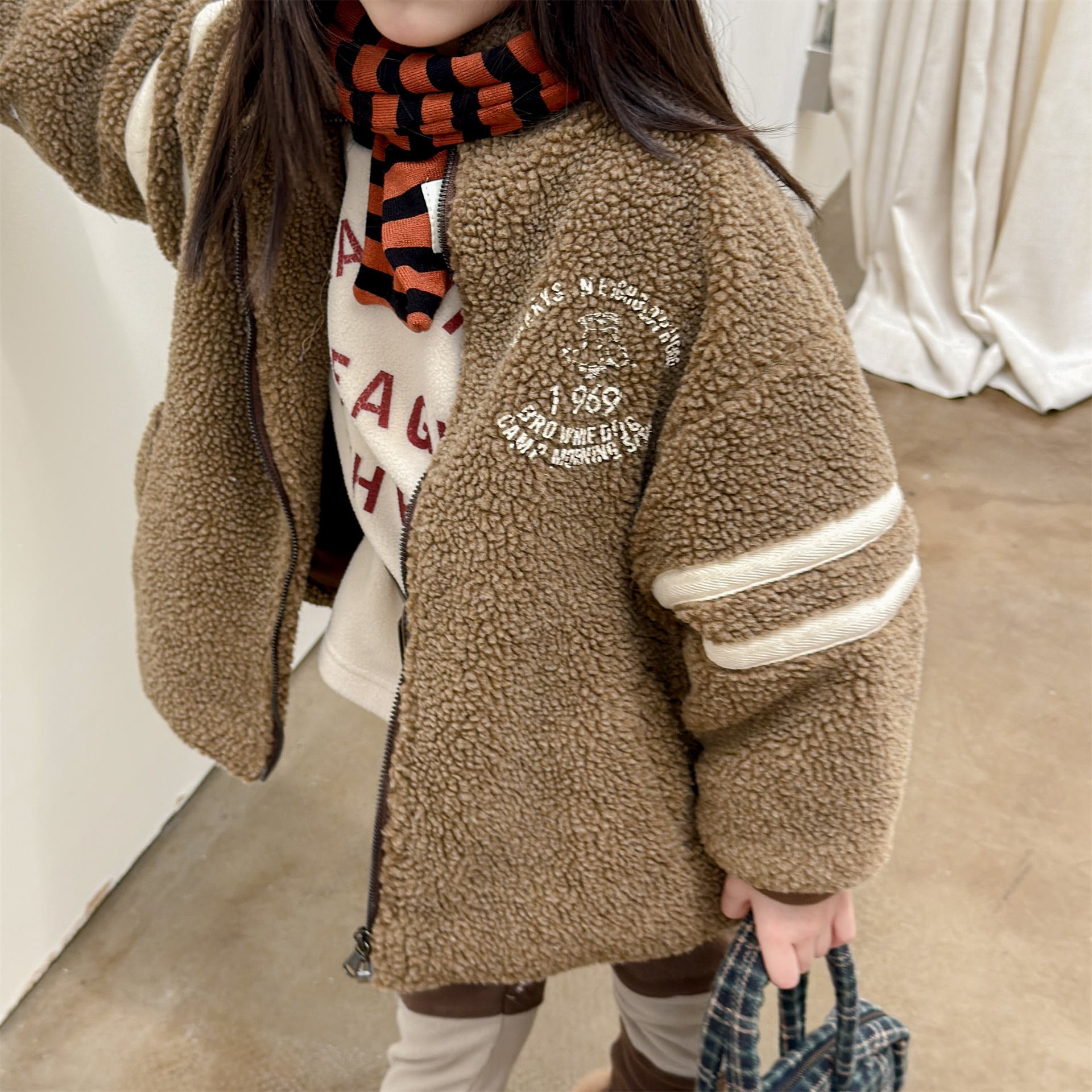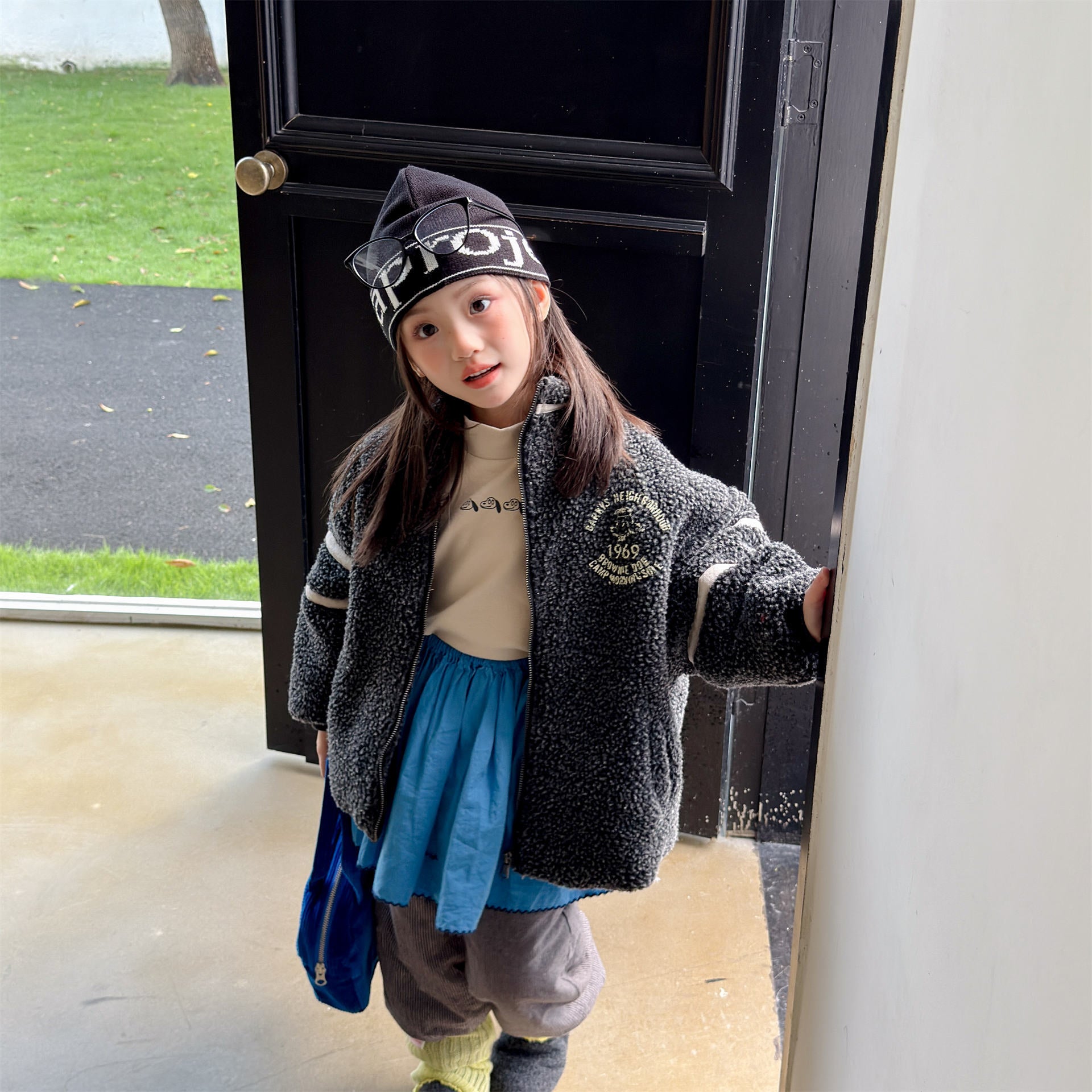 柔らかなラムフリース素材を贅沢に使用した、ジップアップ仕様のボアブルゾンです。袖にあしらわれたダブルラインのアクセントがスポーティーな印象を与え、しっかりとした厚みのあるボア生地が冬の冷たい空気からお子様を暖かく守ります。男の子にも女の子にも似合うユニセックスなデザインで、身頃には中綿を封入することでさらに保温性を高めており、日常の通学や屋外でのアクティブなシーンにも最適です。トレンド感のあるボリュームシルエットと実用的な防寒性を兼ね備えた、冬のワードローブに欠かせない一着です。