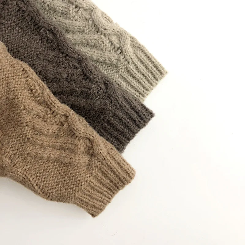 キッズセーター ニットトップス アランニット ケーブル編み ルーズプルオーバー ブラウン コーヒー ベージュ 3カラー ユニセックス 男の子 女の子 子供服