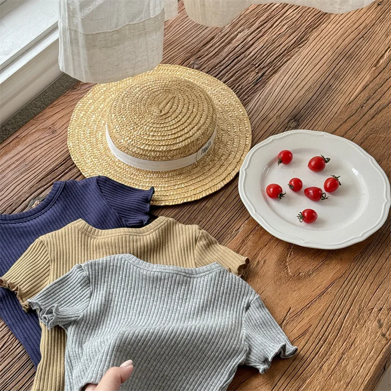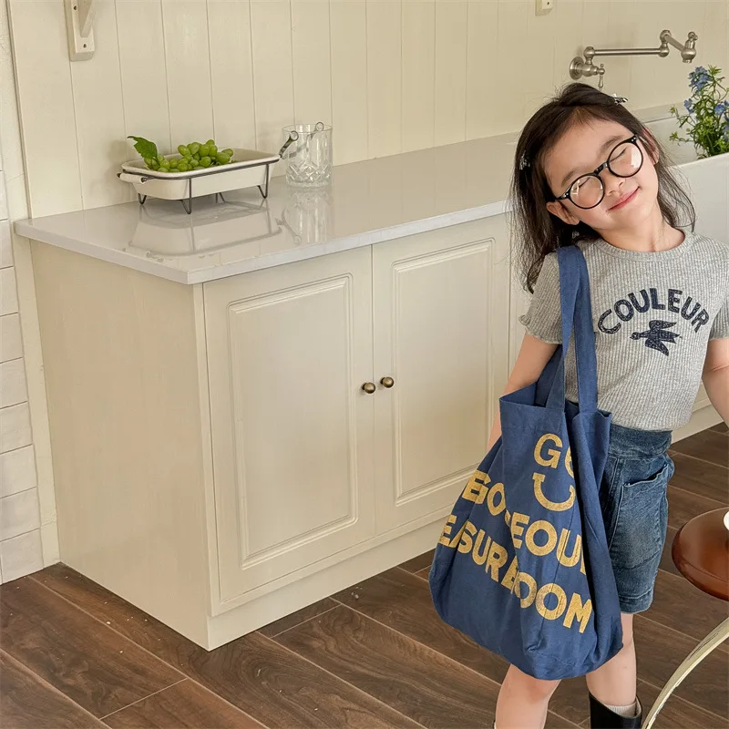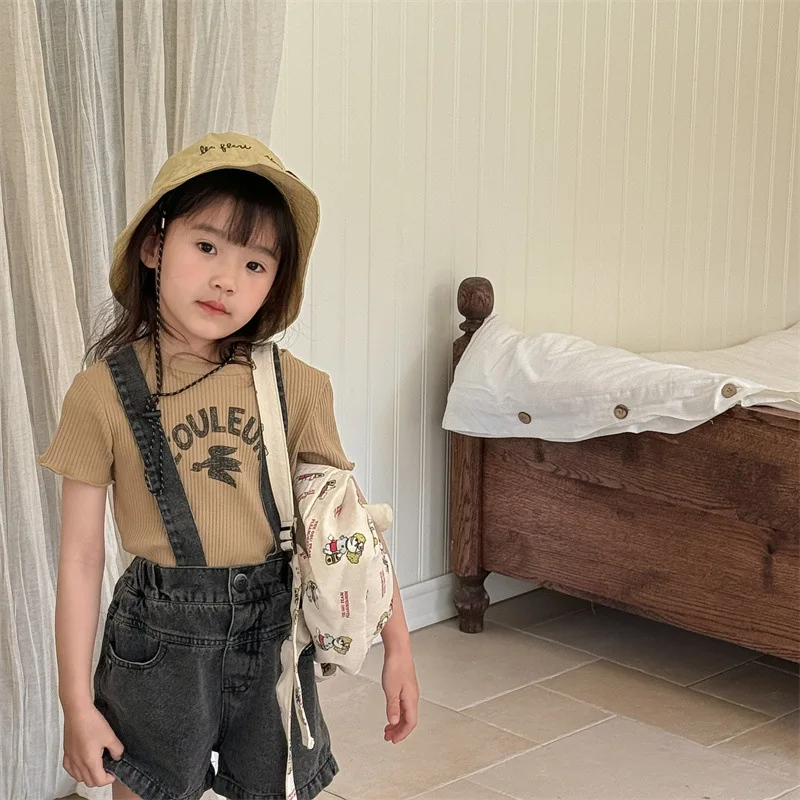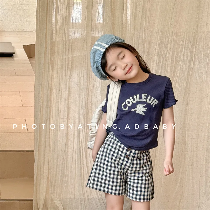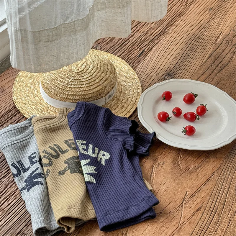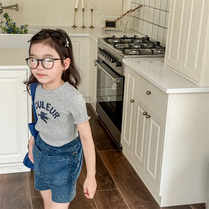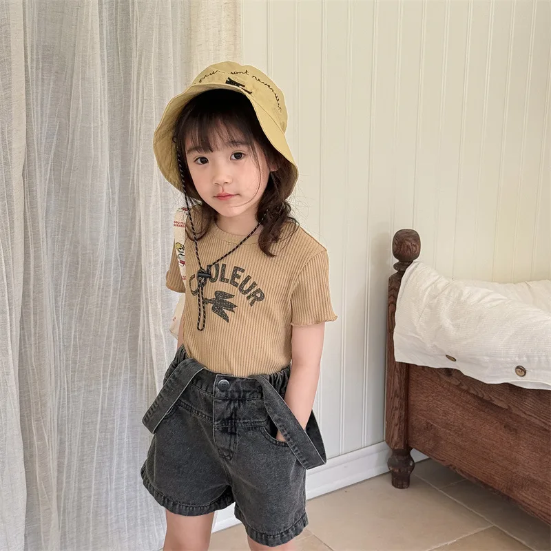 キッズトップス 半袖リブTシャツ レターロゴプリント 3カラー
