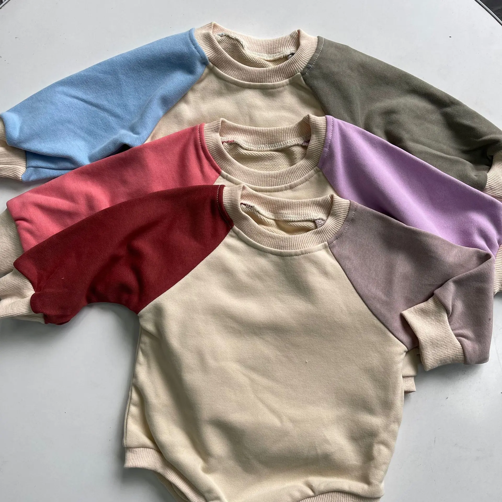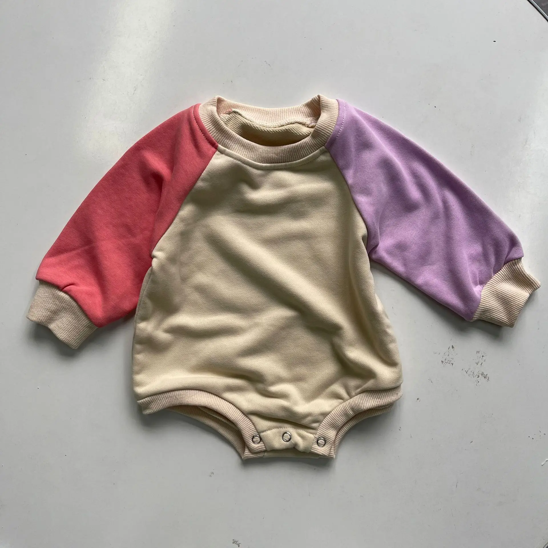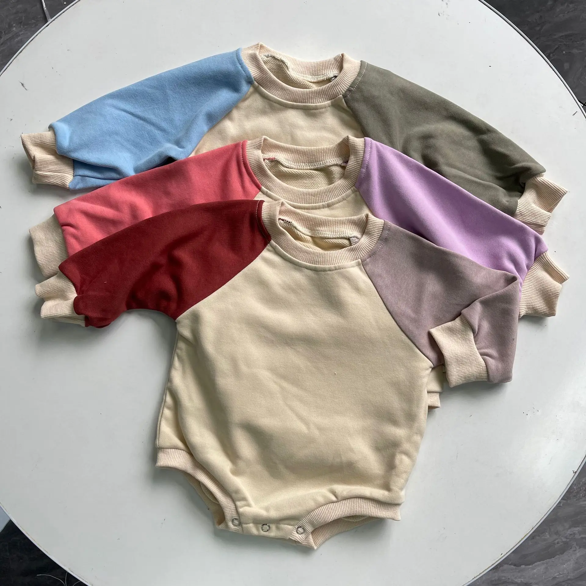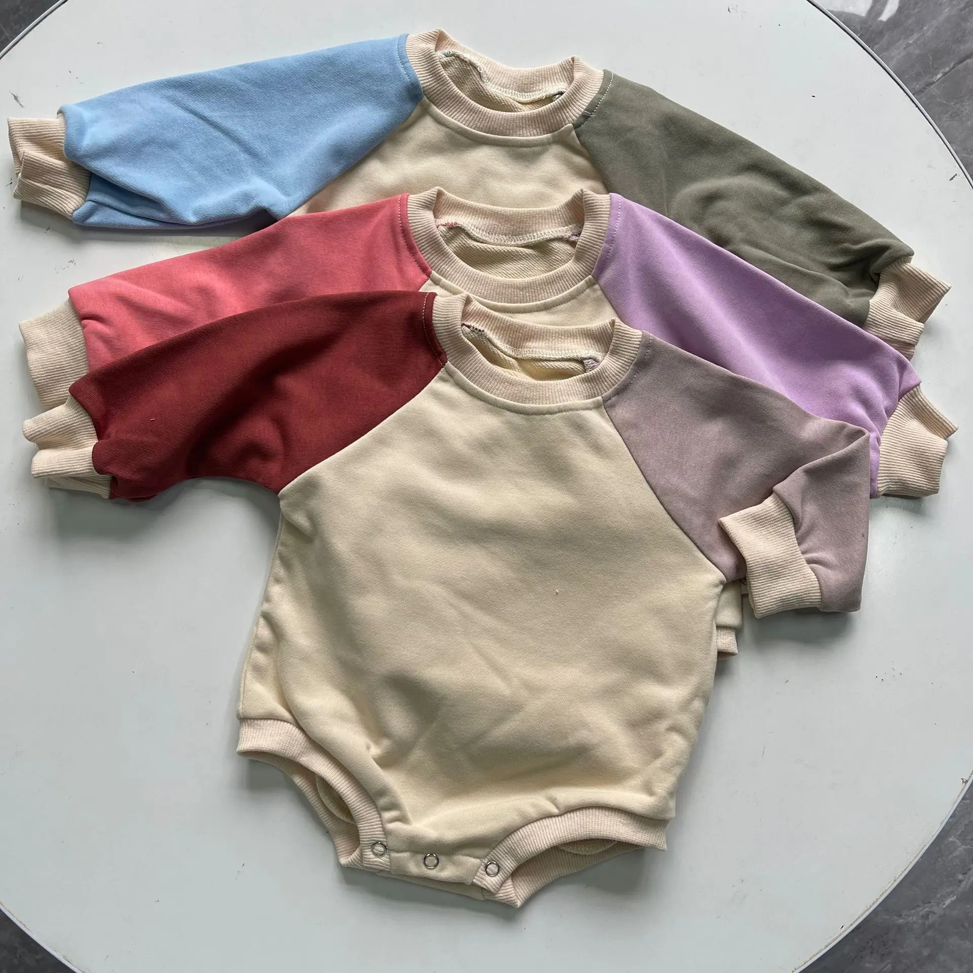 ベビーロンパース ラグランパッチワーク長袖ボディスーツ【mh-0008718】