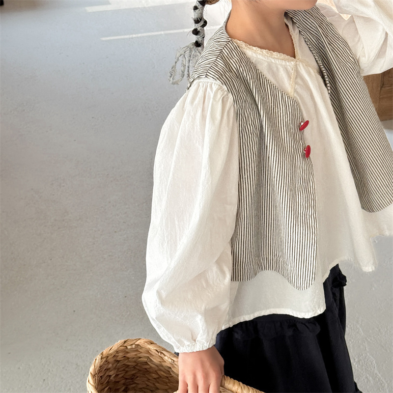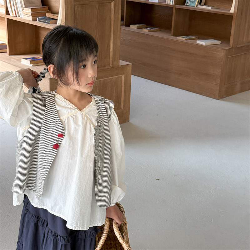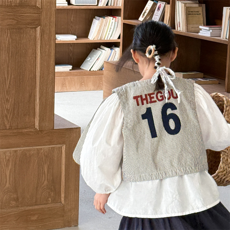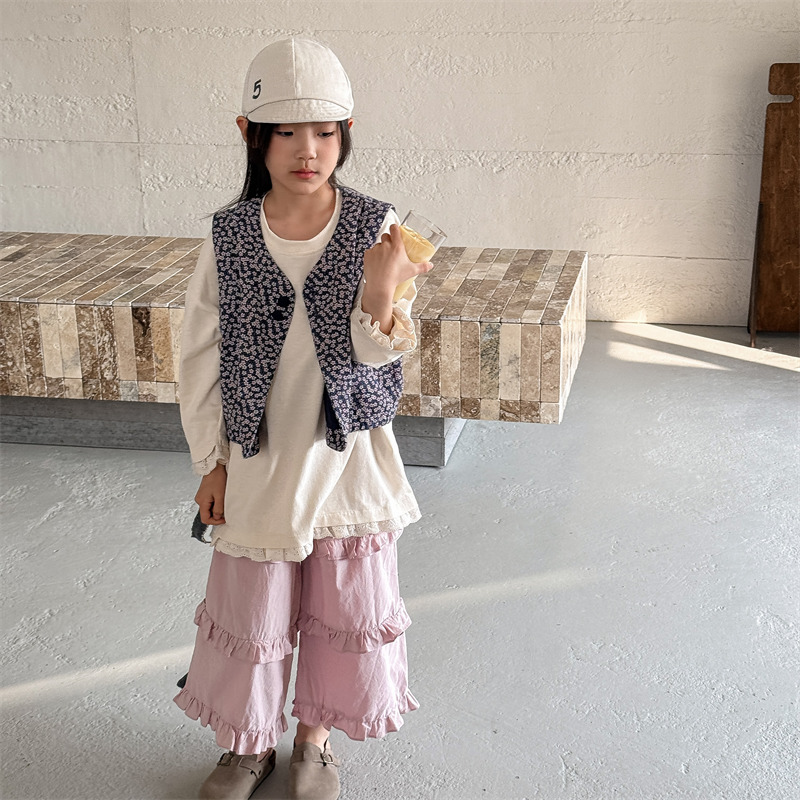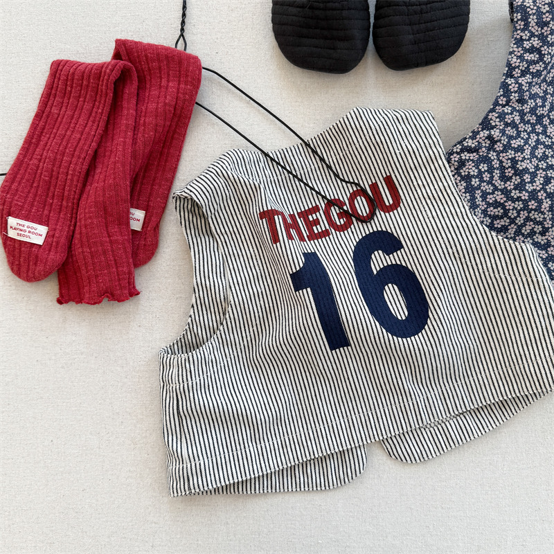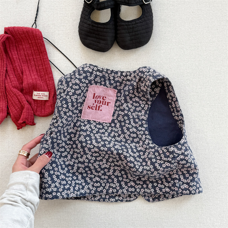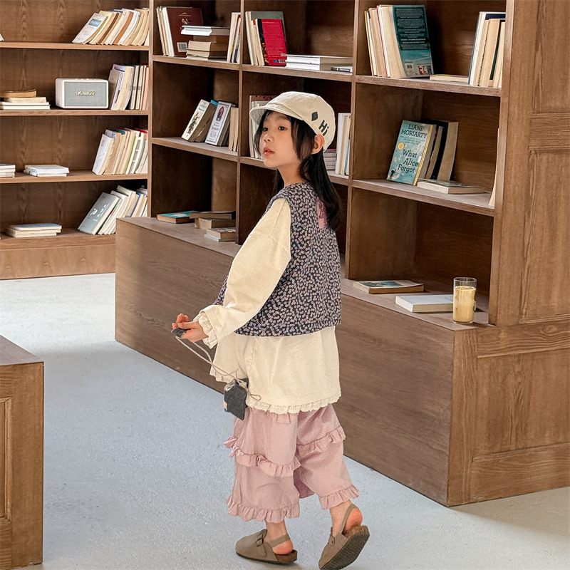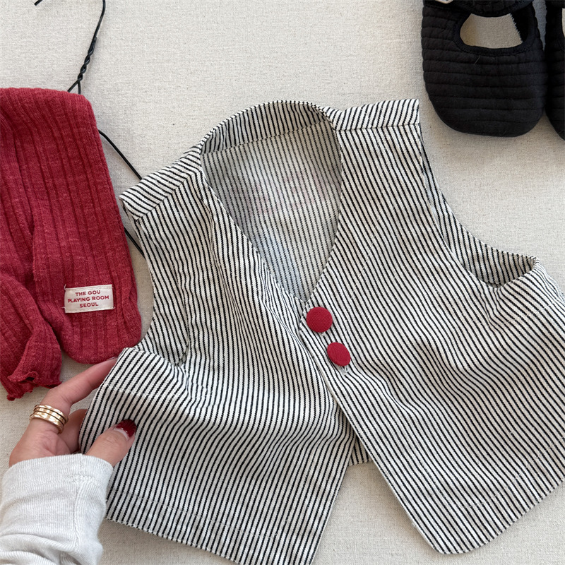 #キッズファッション #ジレベスト #レトロスタイル #ストライプ #フラワープリント #レイヤードコーデ