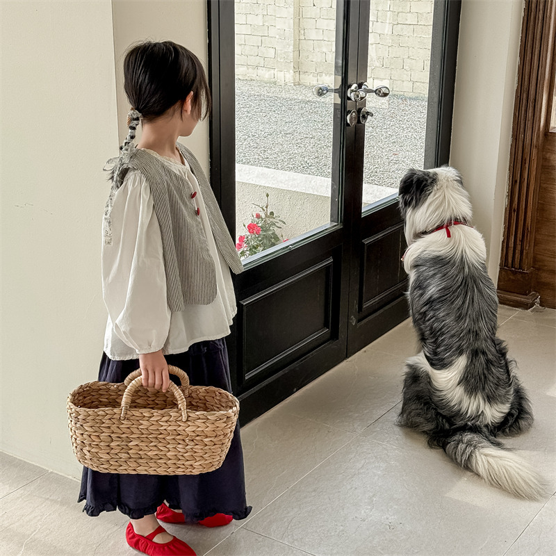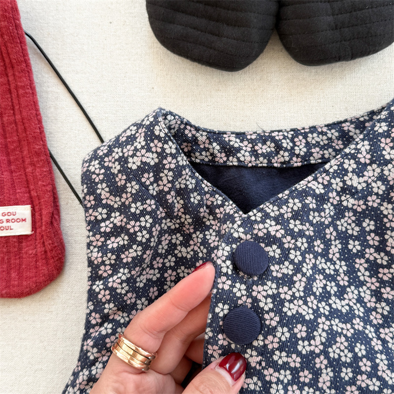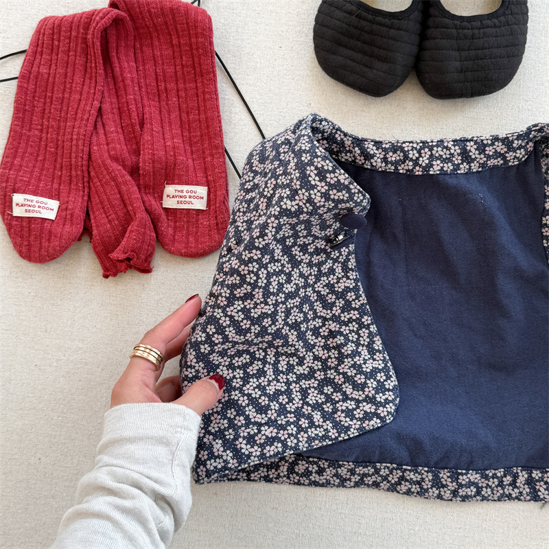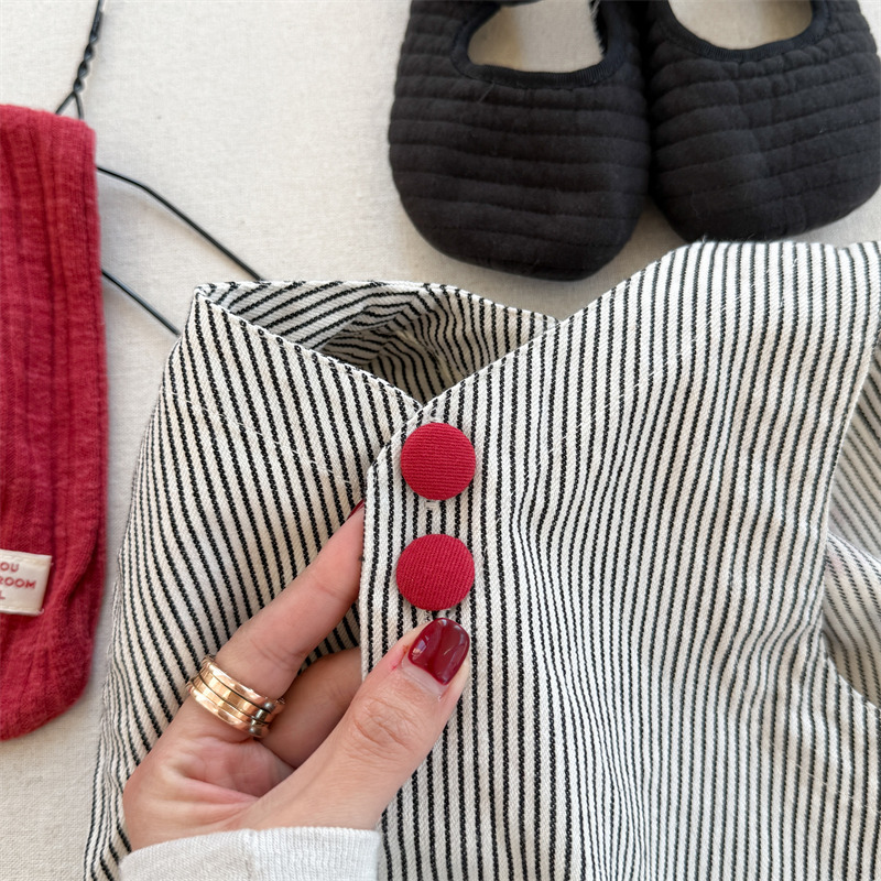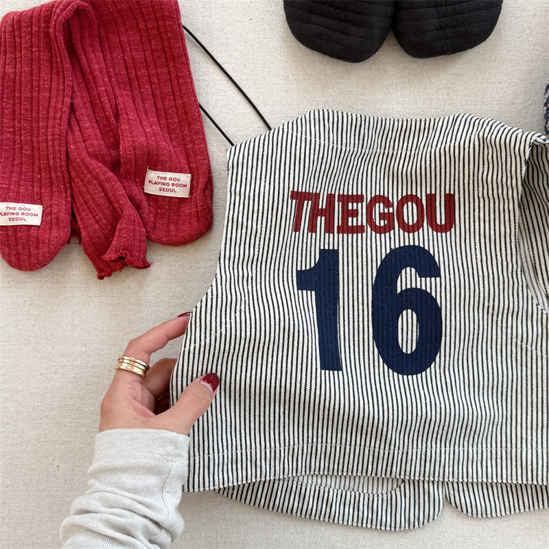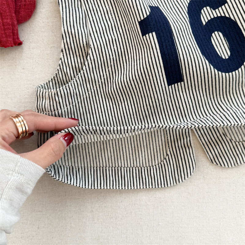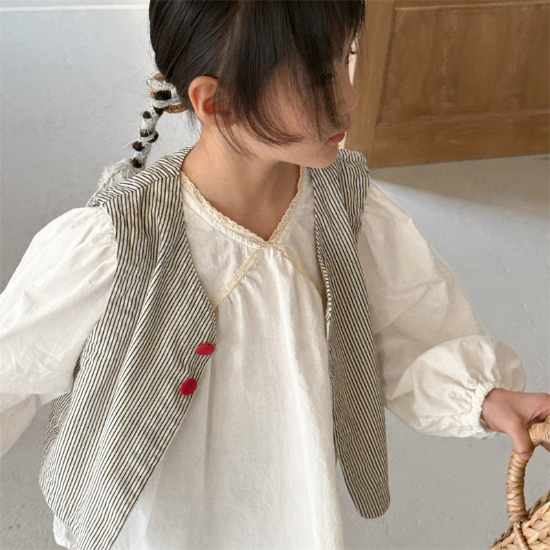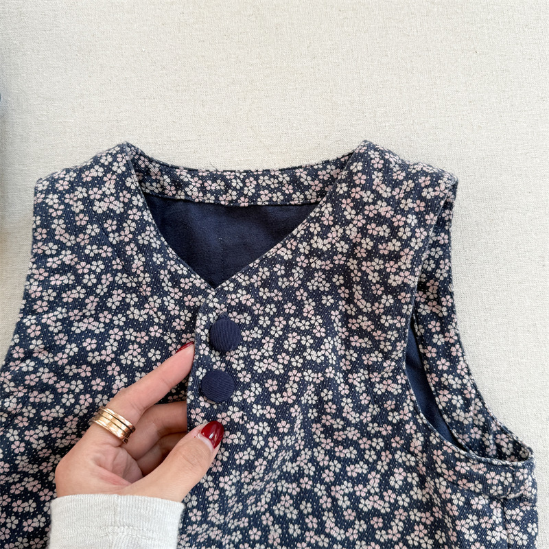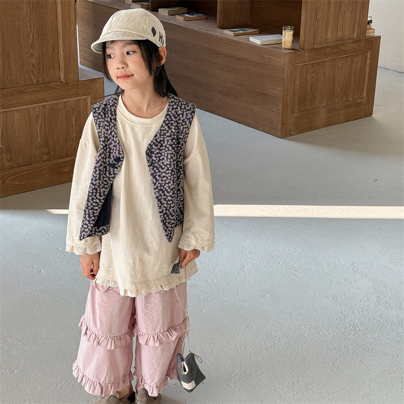 #キッズファッション #ジレベスト #レトロスタイル #ストライプ #フラワープリント #レイヤードコーデ
