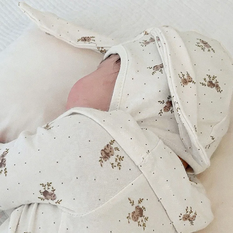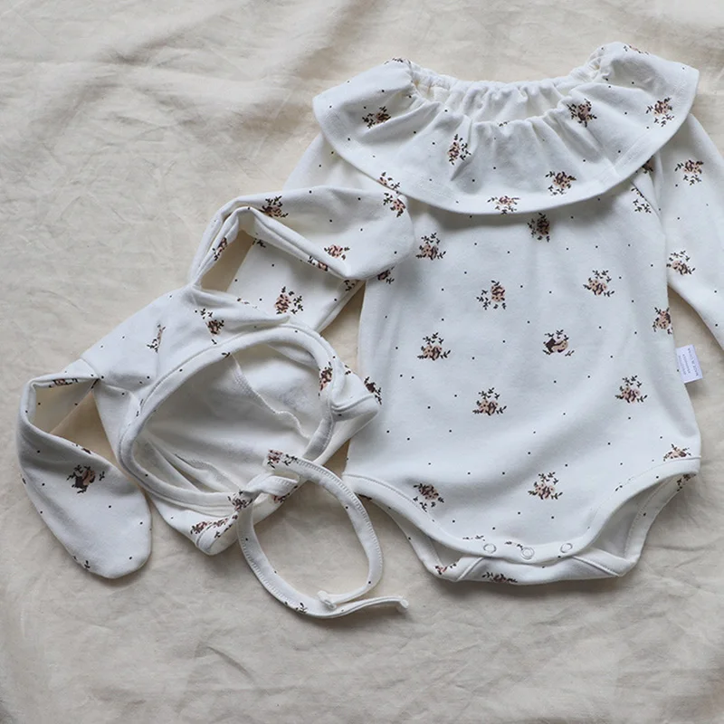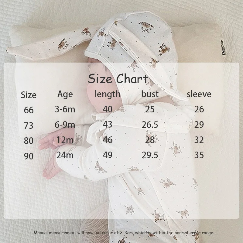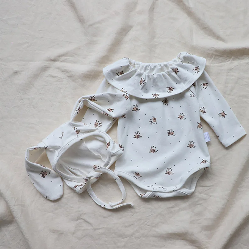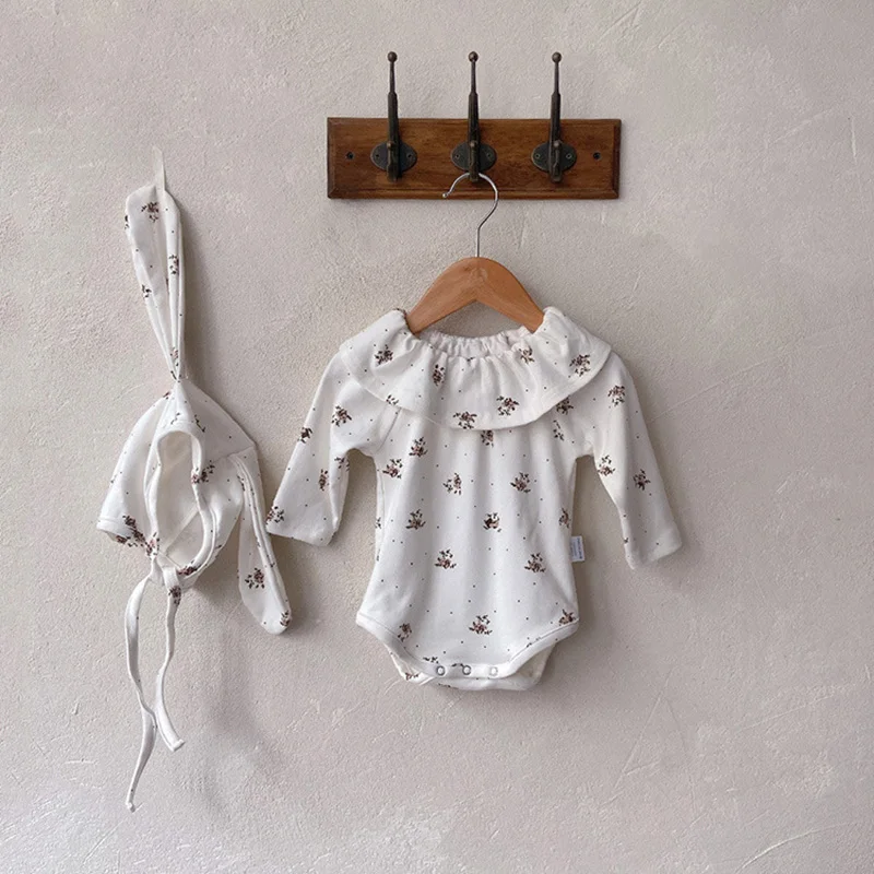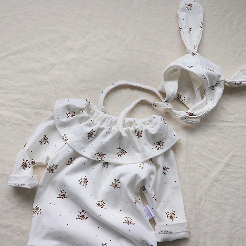 ベビー フラワー フリルカラー 長袖 ロンパース うさ耳 帽子 セット【mh0000954】