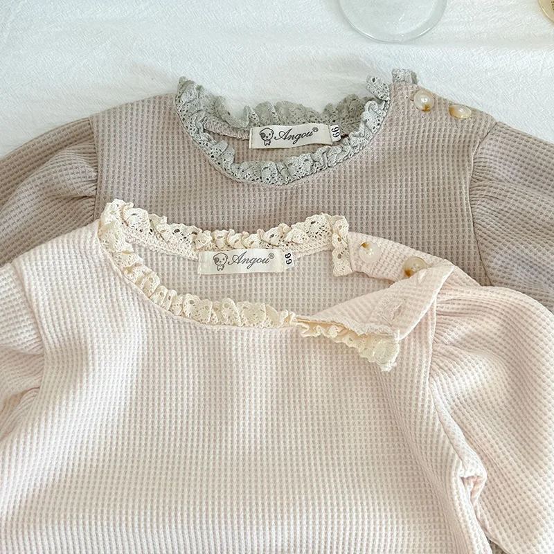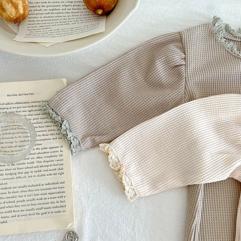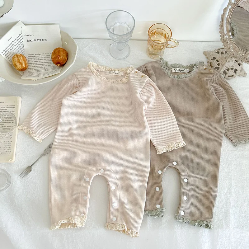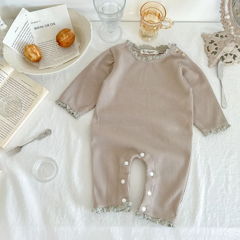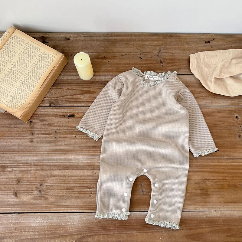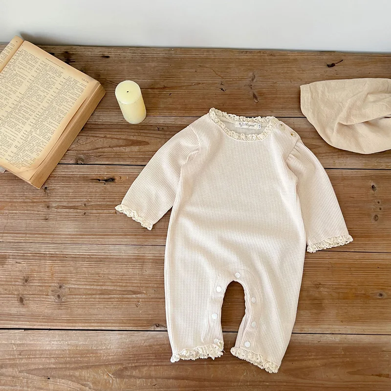 ベビー レース ワッフル 長袖 ロンパース ジャンプスーツ【mh0000962】