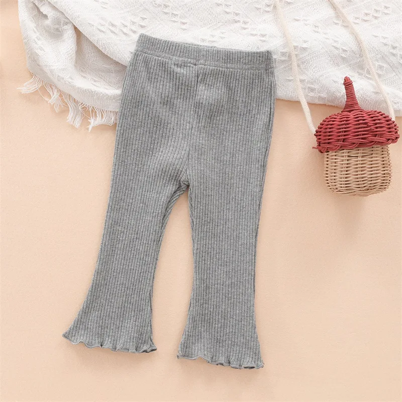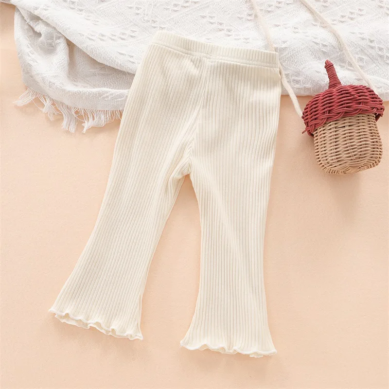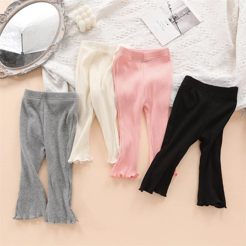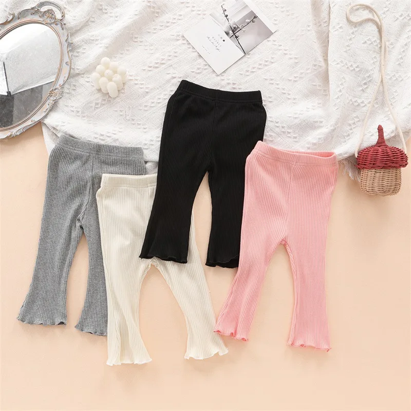 春の新しいファッション!女の子のための薄手のレギンスパンツ。リブ編みでしっかりとした弾力性があり、赤ちゃんの動きを妨げません。ベビーブーツカットとフレアデザインで、可愛らしさもバツグン。肌に優しいコットン素材で、快適に過ごせます。4つのカラーからお選びいただけます。
