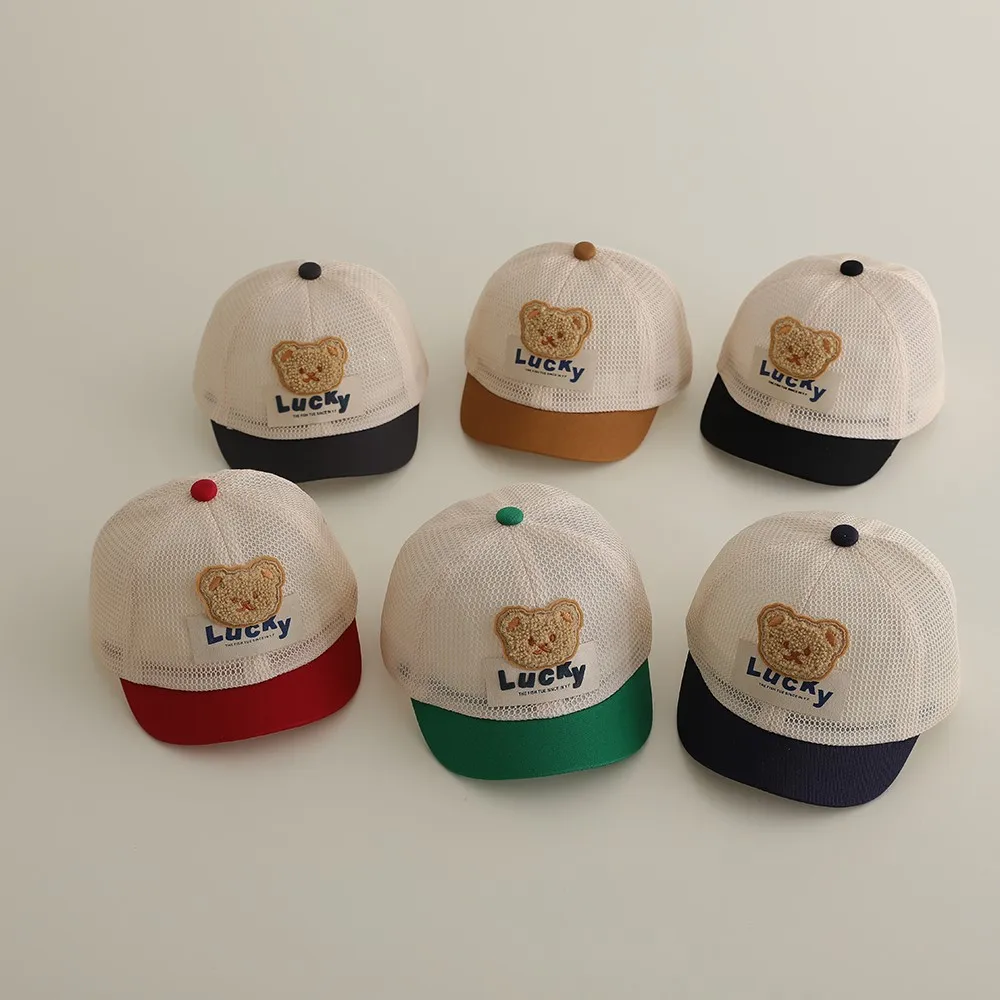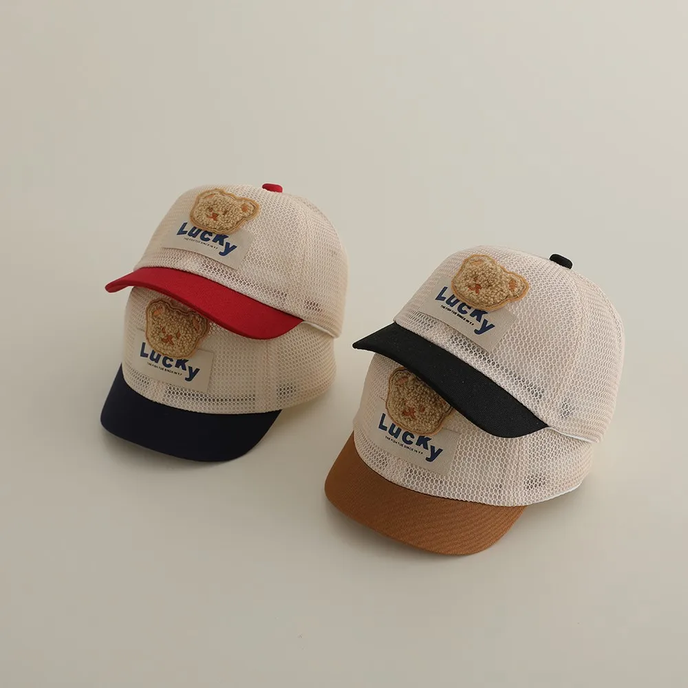 ベビー帽子 メッシュキャップ 野球帽 ベアくまワッペン サマーハット【mh0005589】